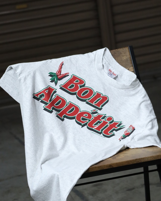 ▼Item / 1990s USA made TABASCO Bon Appétit print Tee ▽Design / s/s T-shirt ▽Detail / クルーネック、シングルステッチ ▽Print / Bon Appétit TABASCO ▼Color / heather gray 杢グレー ▼Size / L 肩幅 約48㎝ / 着丈 約69㎝ / 身幅 約52㎝ / 袖丈 約20.5㎝ ▼Brand / SOF Tee ▼Fabric 100% cotton ▼原産国 / USA ▼Condition やや使用感あり。 目立つ傷や汚れはございません。 ▼Caution ・記載内容をご確認の上、USED品であることをご理解頂ける方のみご検討ください。 ・古着特有の匂いがすることがございます。 ・慎重に検品しておりますが、稀に見落とし等がある場合がございます。 ・できるだけ実物に近い色味になるよう撮影しておりますが、お使いの機器によって見え方が異なる場合がございます。 ・古着に慣れていない方、新品同様のお品をお求めの方はご購入をお控えいただきますようお願いいたします。