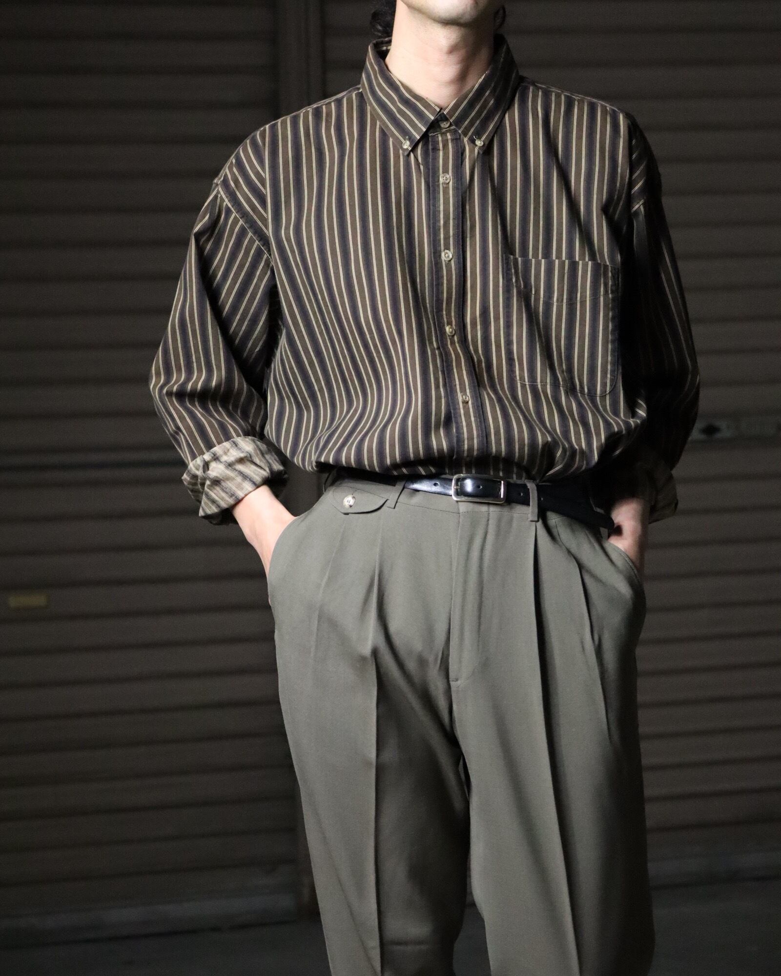 ▼Item / brown mix stripe button-down oversized cotton shirt