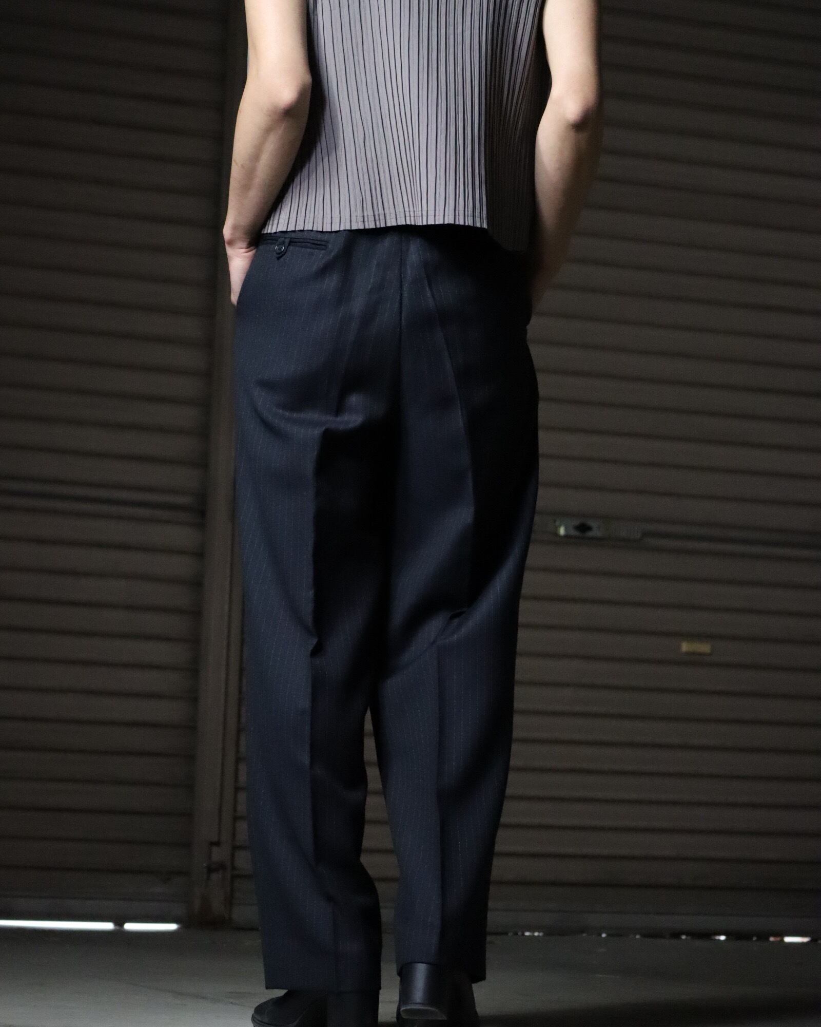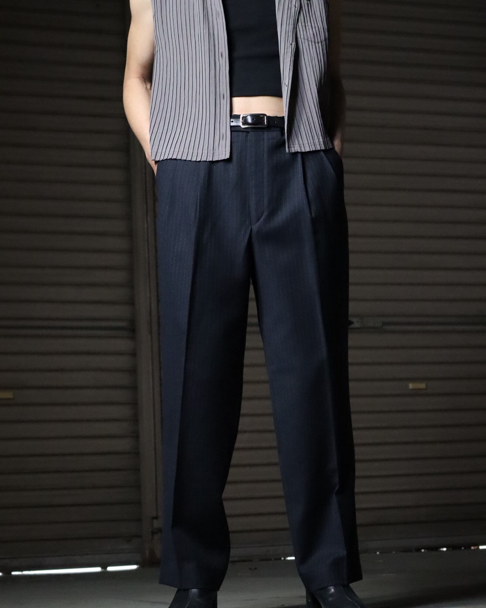 ▼Item / pencil stripe 2tuck wide-straight slacks navy