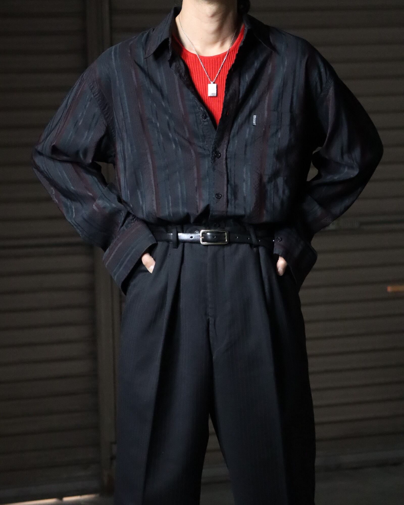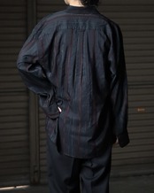 ▼Item / jacquard multi stripe oversized satin like l/s shirt