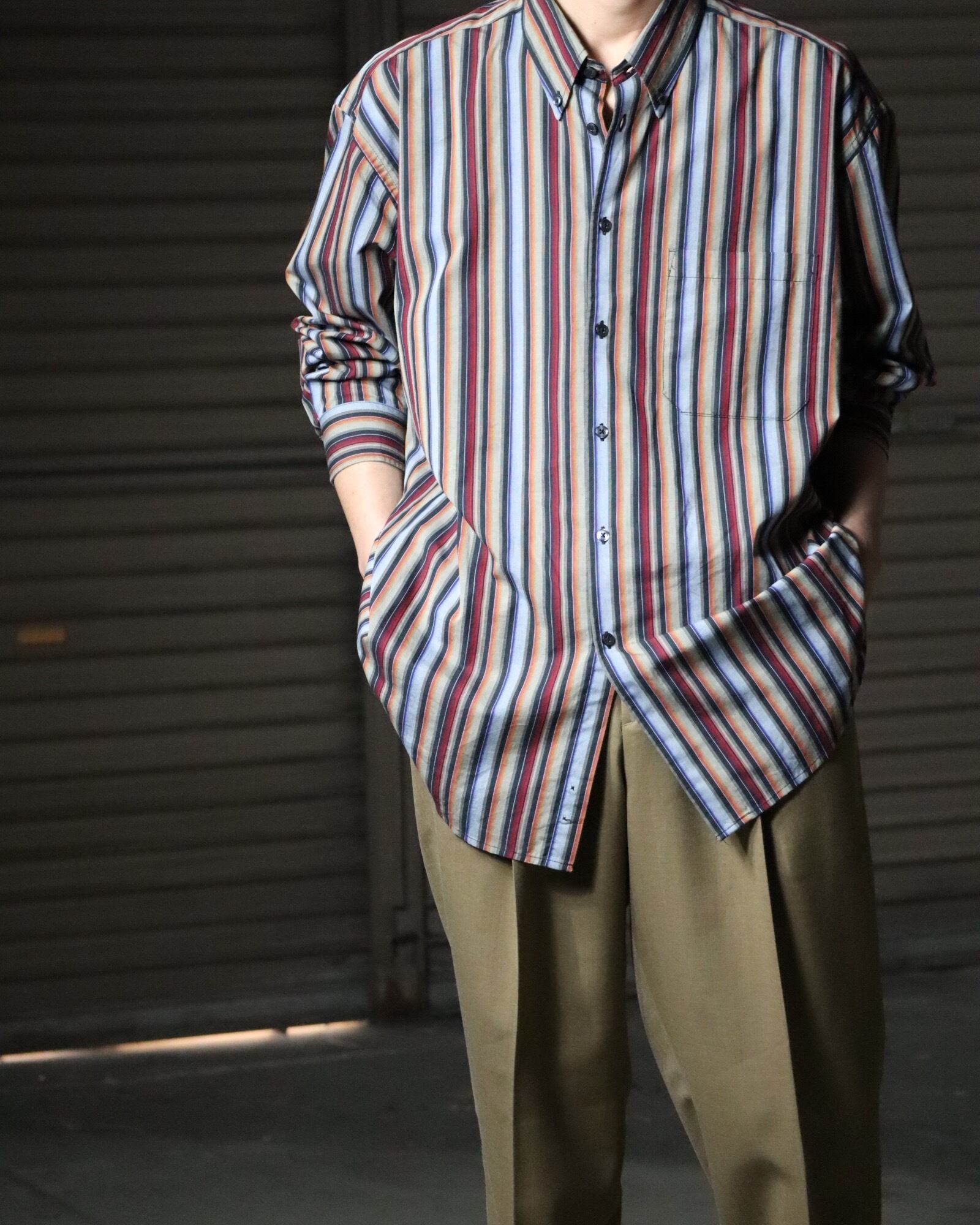 ▼Item / multi stripe button-down oversized cotton l/s shirt