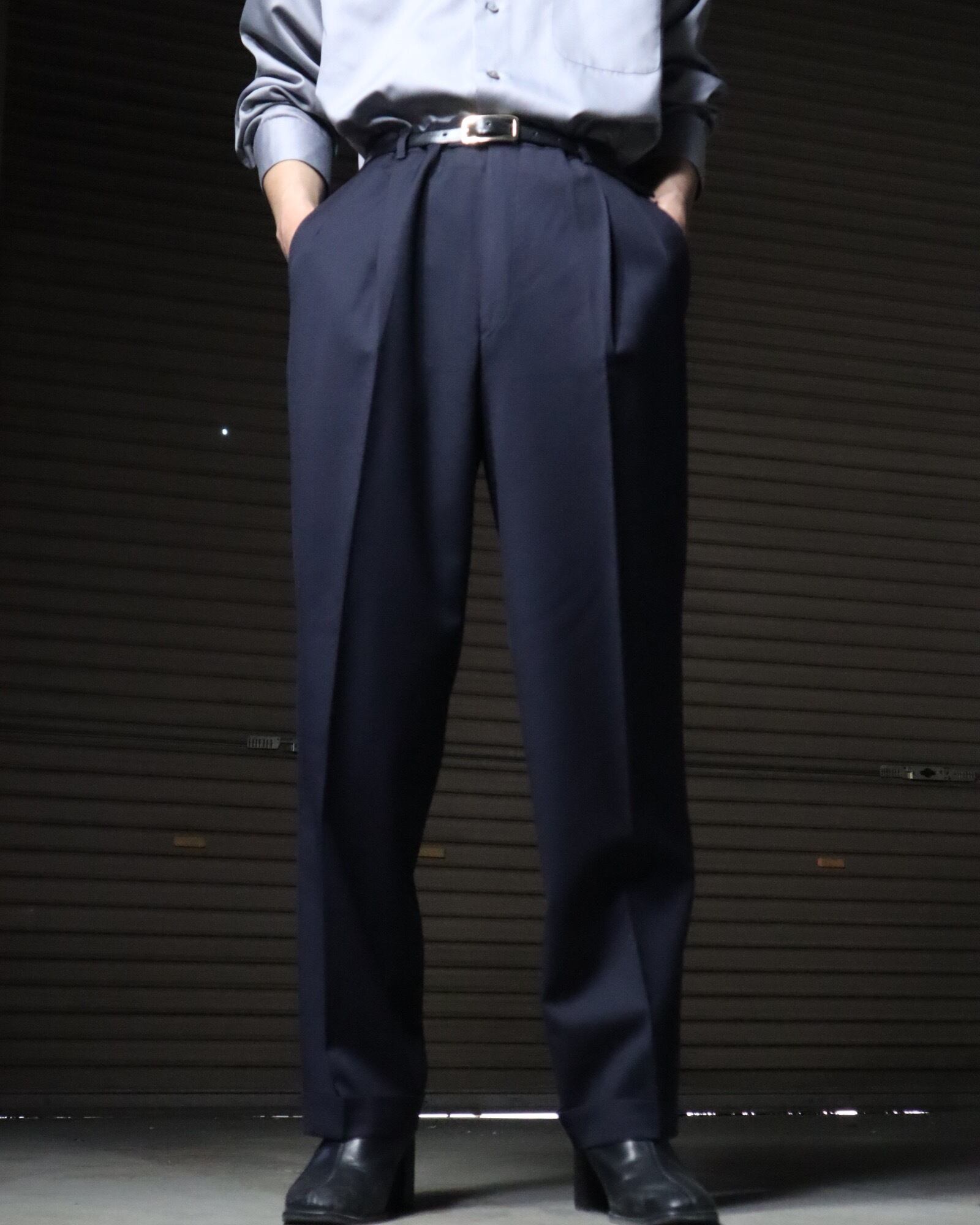 2tuck wide-straight toromi slacks navy