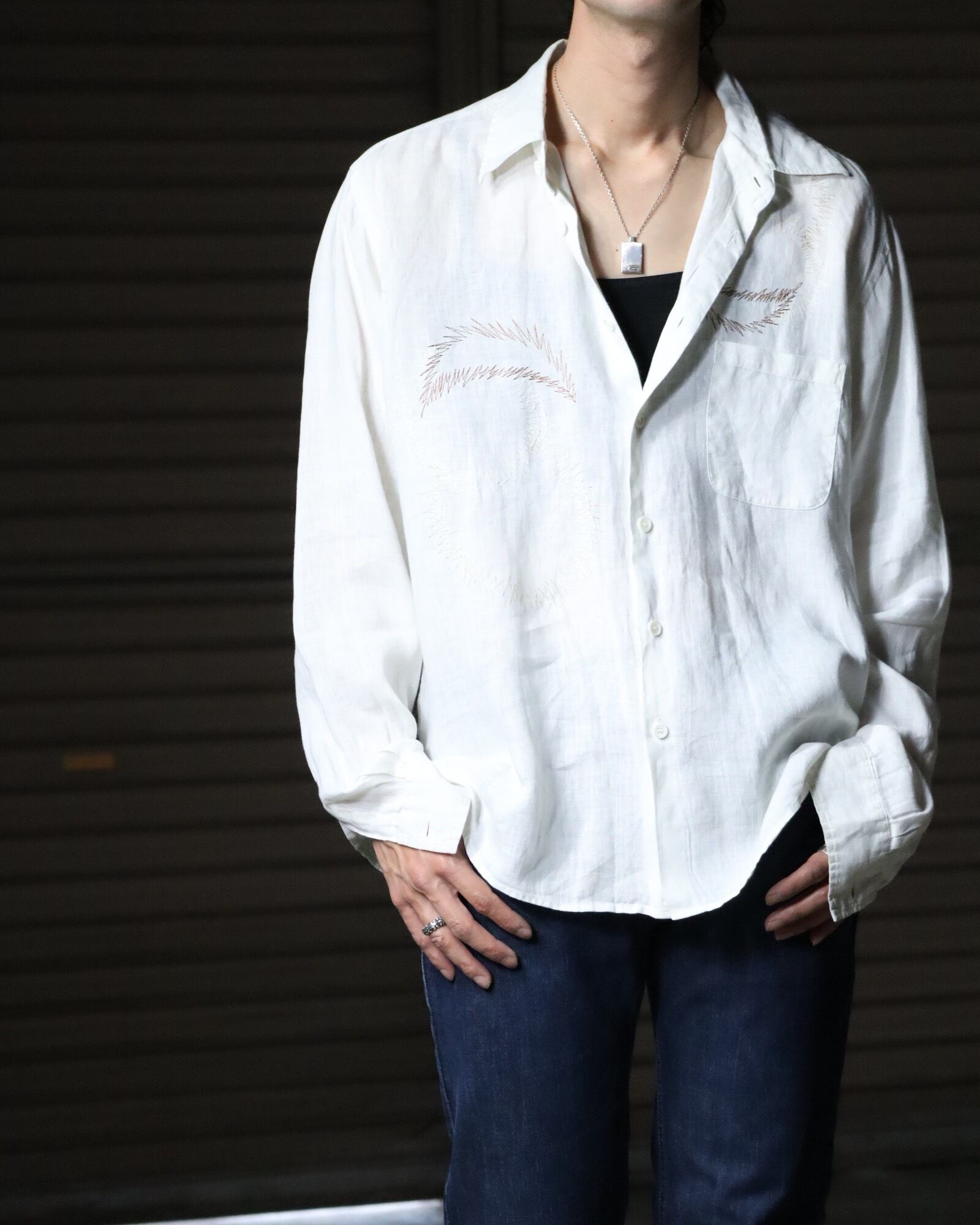 ▼Item / botanical embroidery linen oversized l/s shirt white