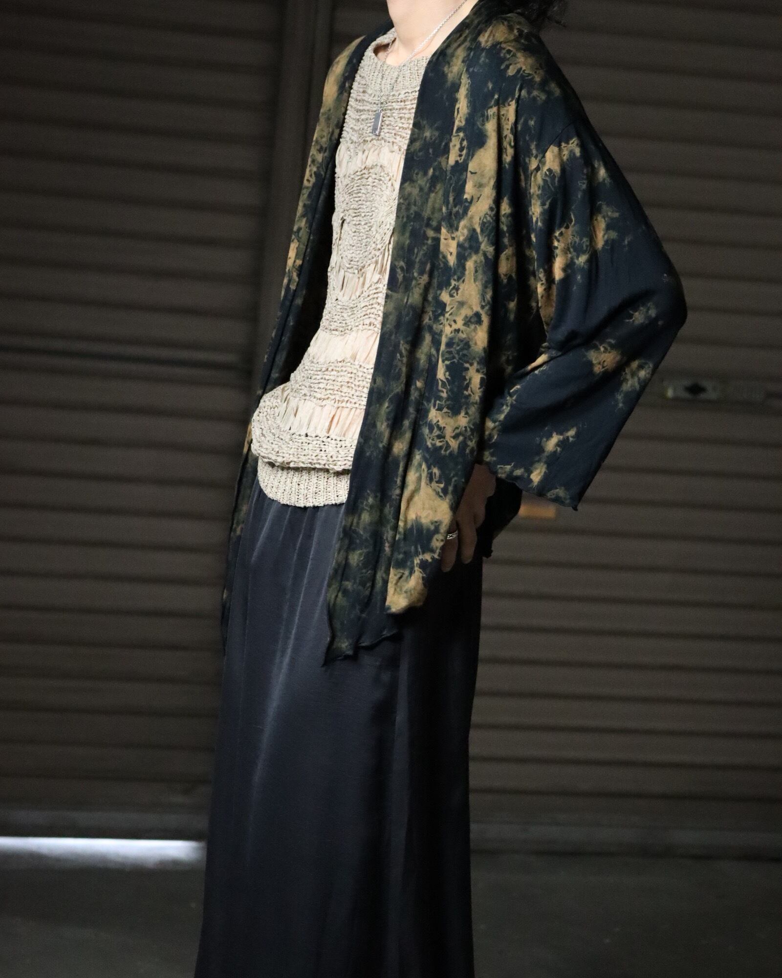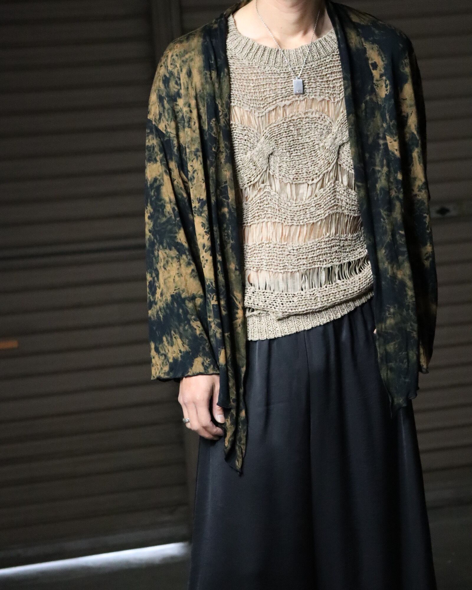 ▼Item / bicolor marble toromi drape cardigan black × brown