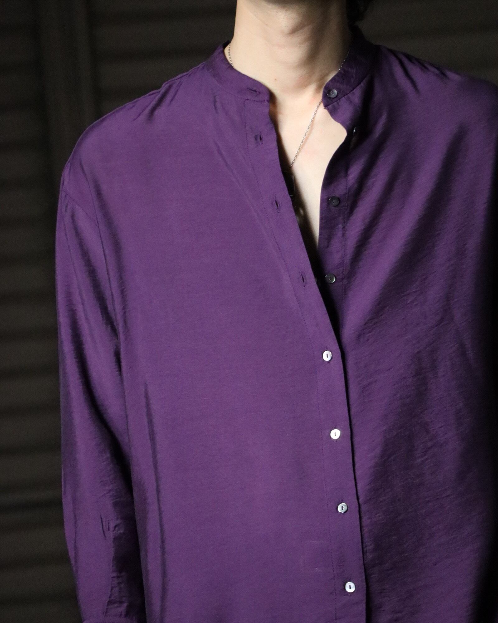 ▼Item / band collar toromi l/s shirt purple