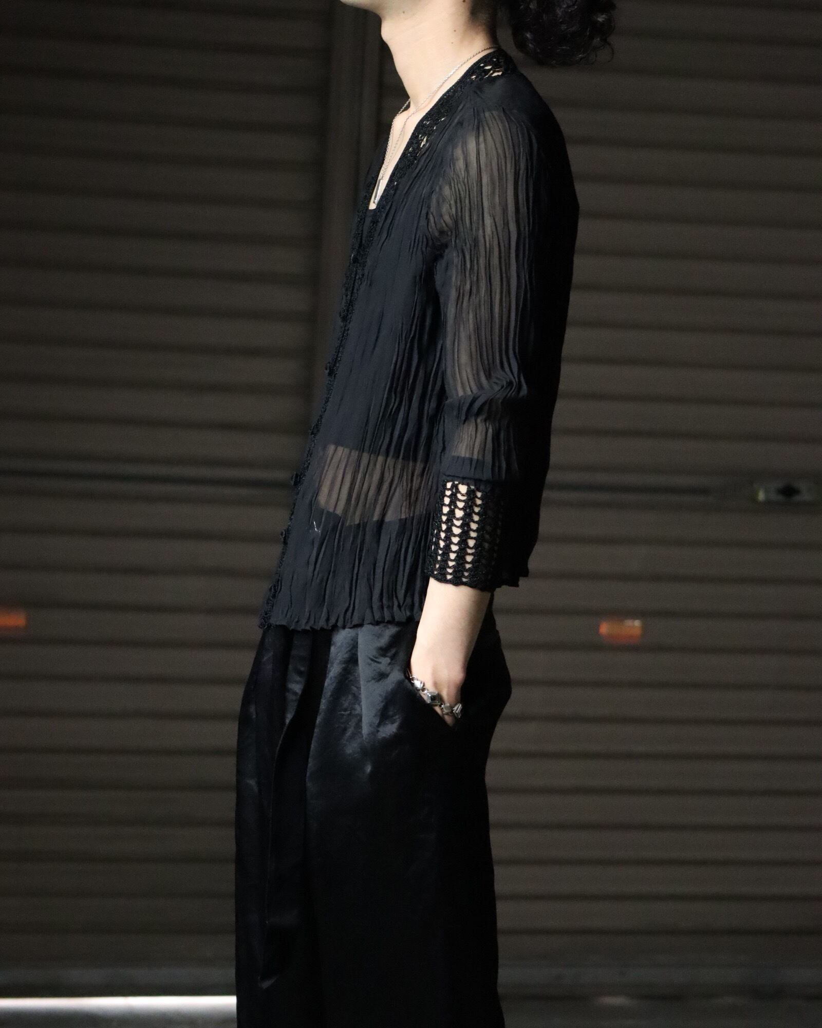 ▽Detail / クロシェ編み、ランダムプリーツ、ノーカラー
