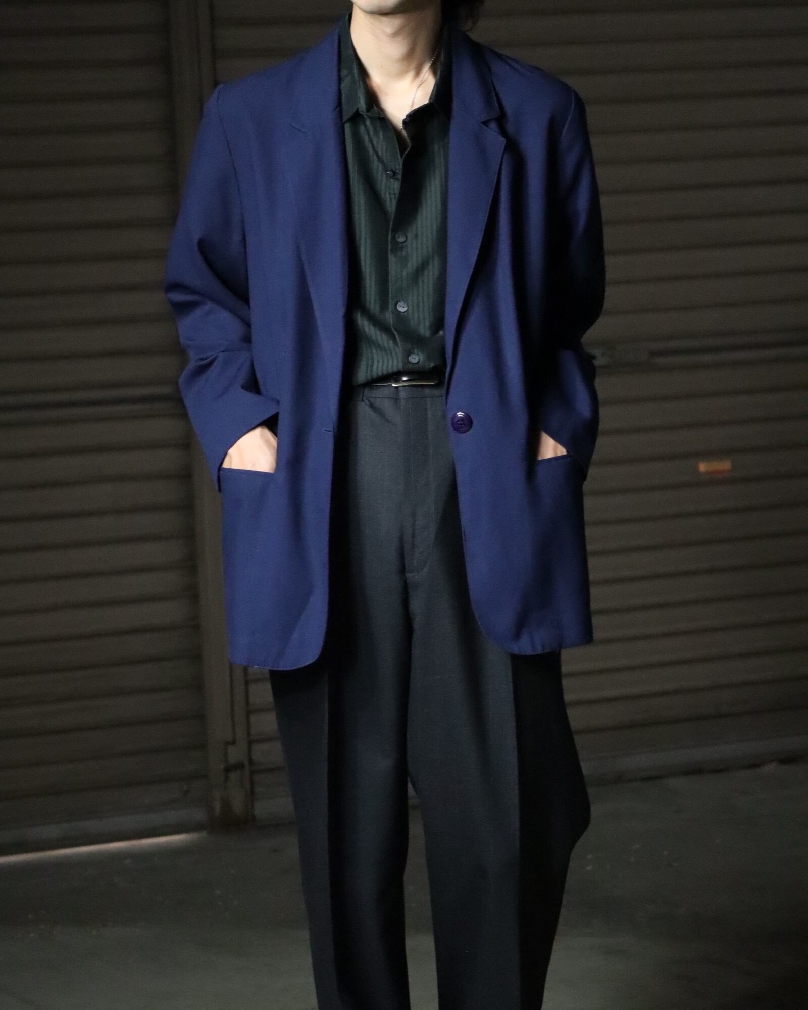 ▼Item / 1990s- single breasted padless tailored jacket dark blue