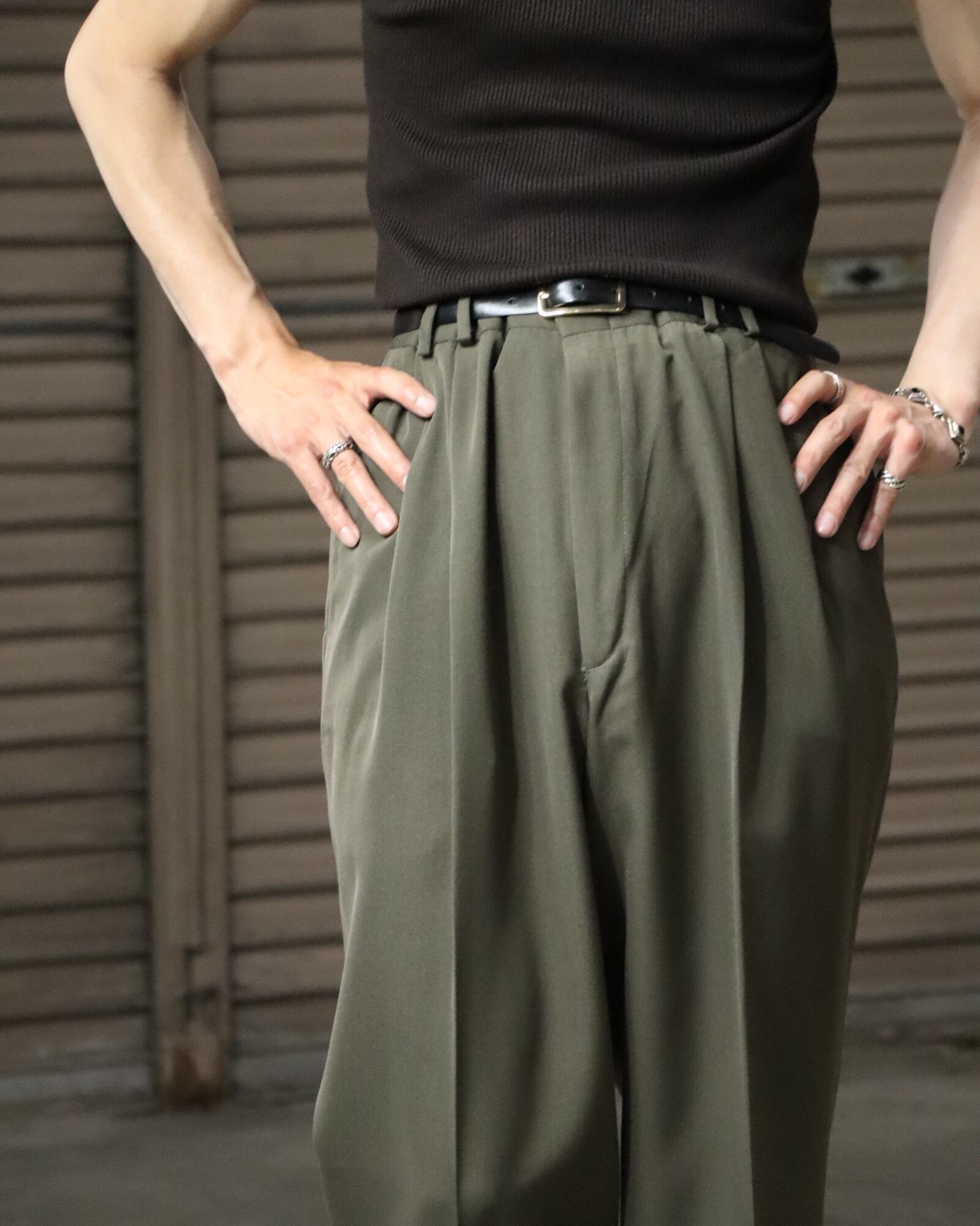 ▼ Item / worsted wool blend 2tuck wide-straight slacks khaki