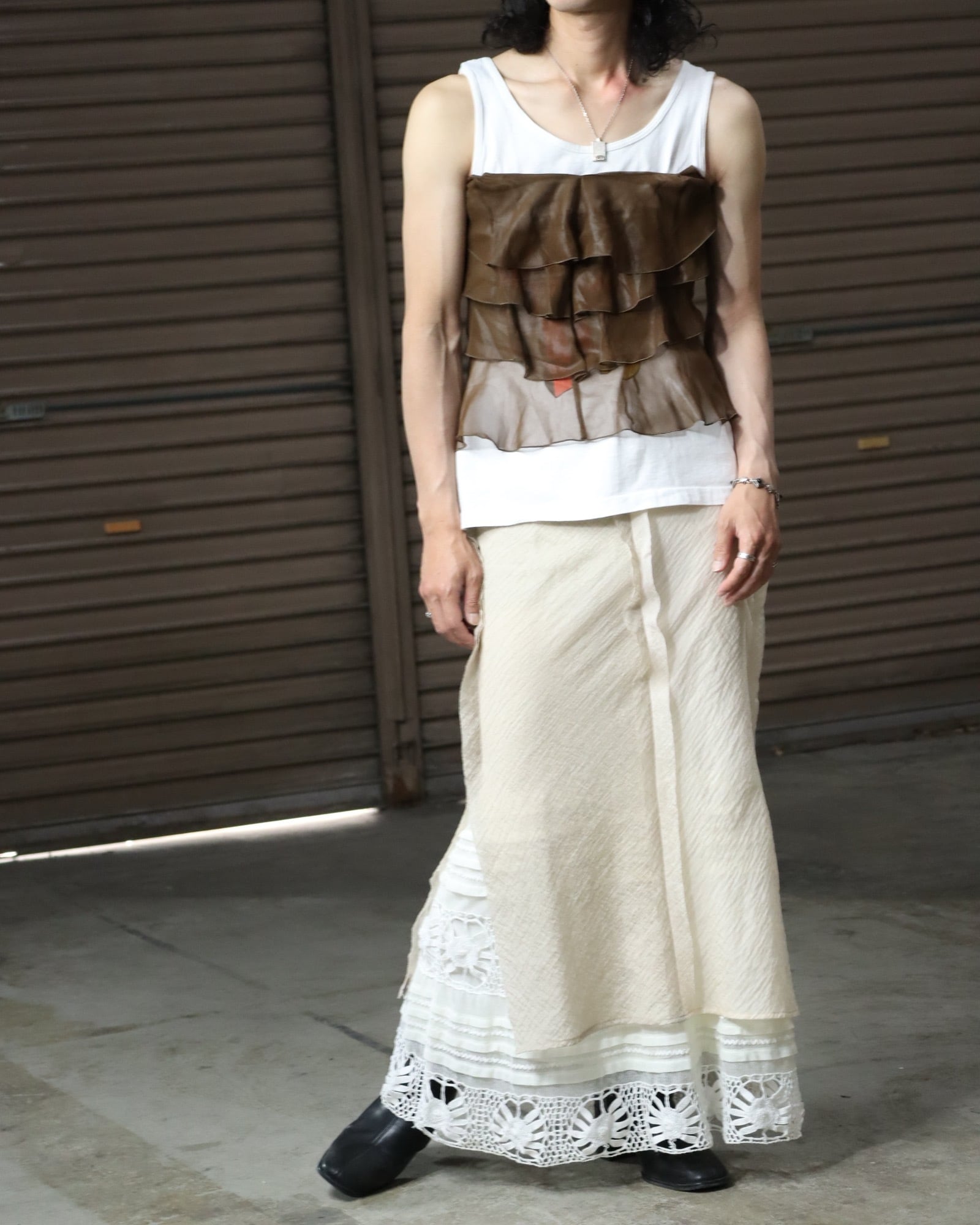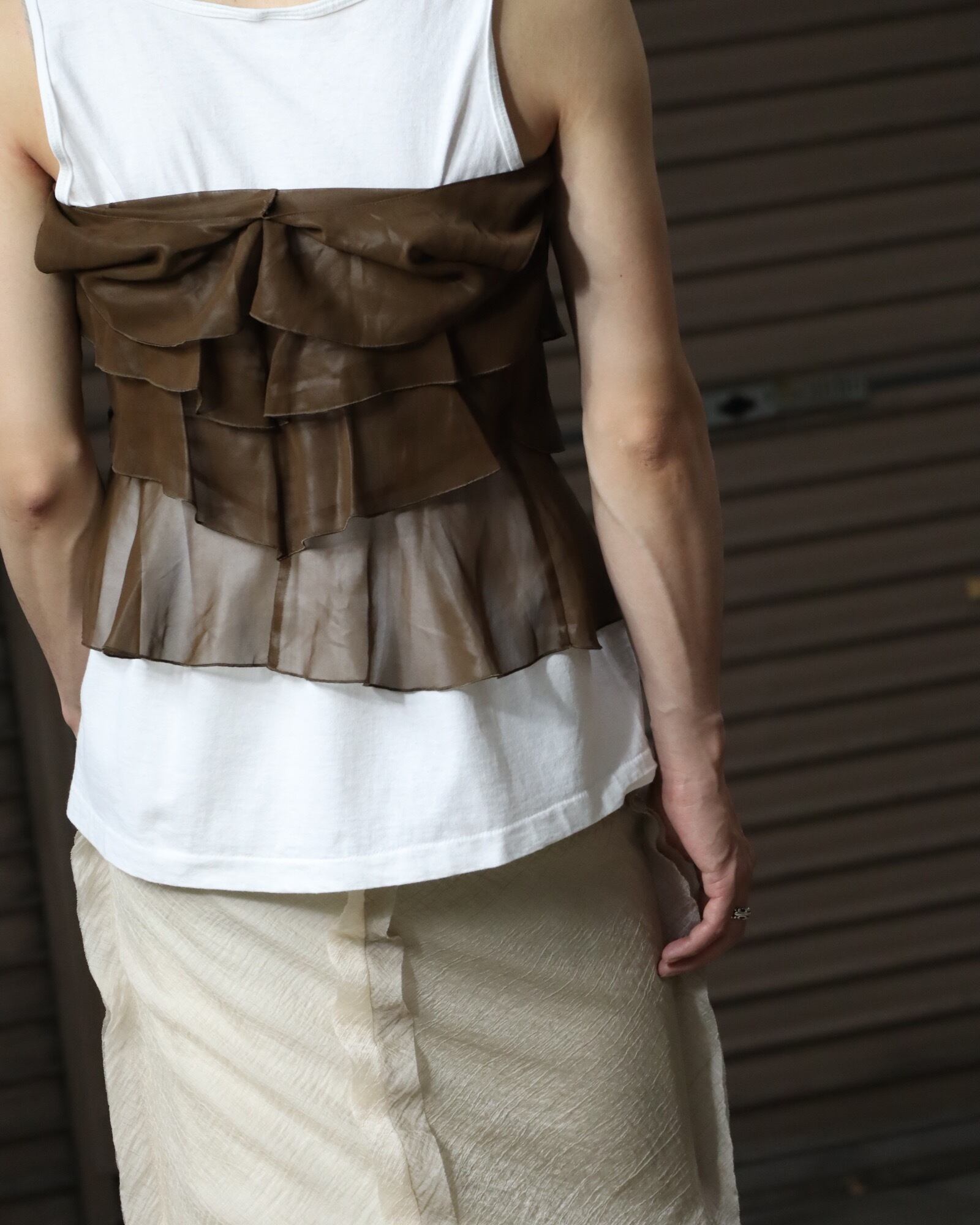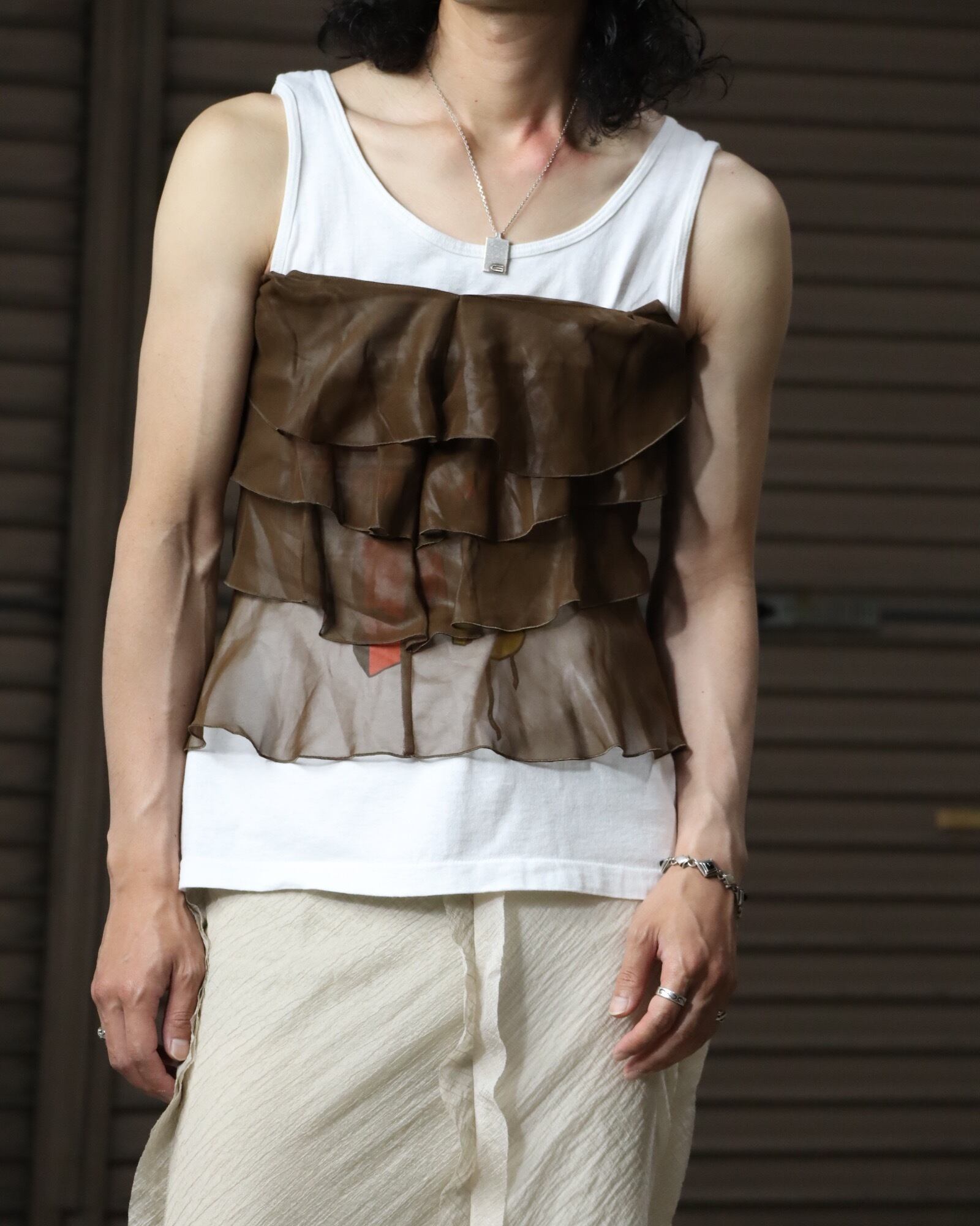 ▽Design / シアーフリルシフォン ノースリーブ トップス
