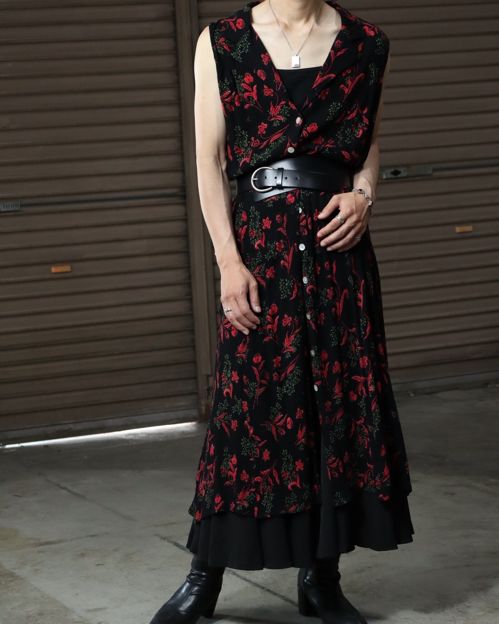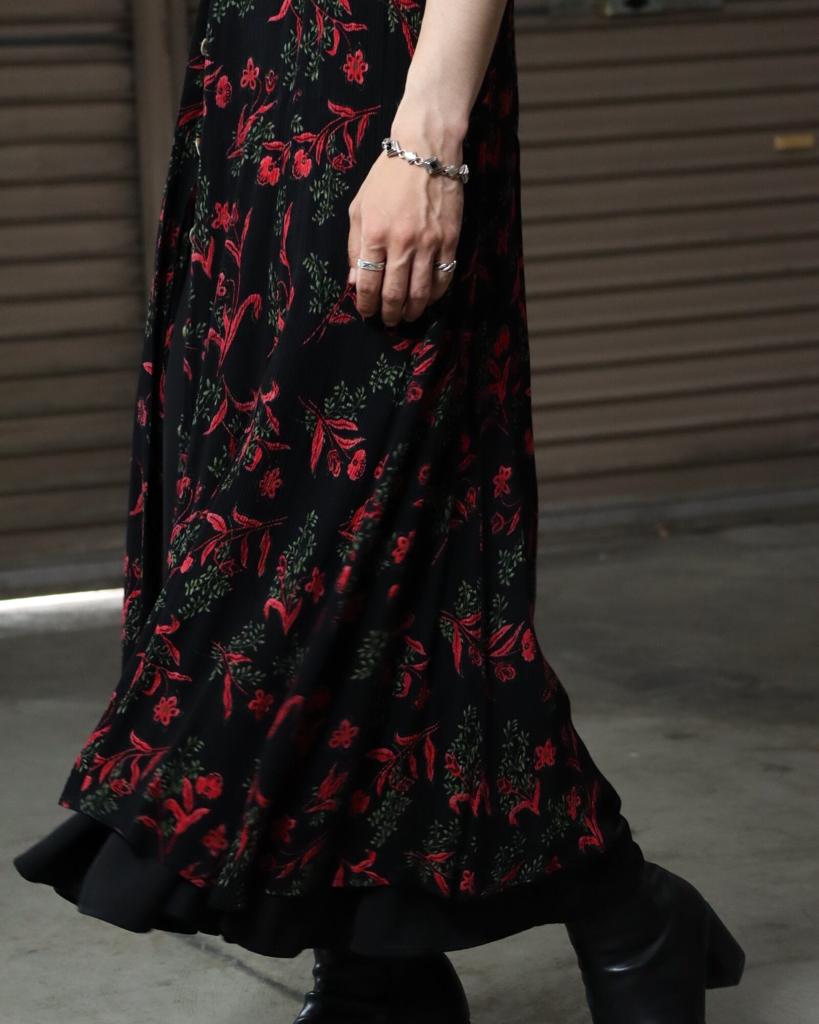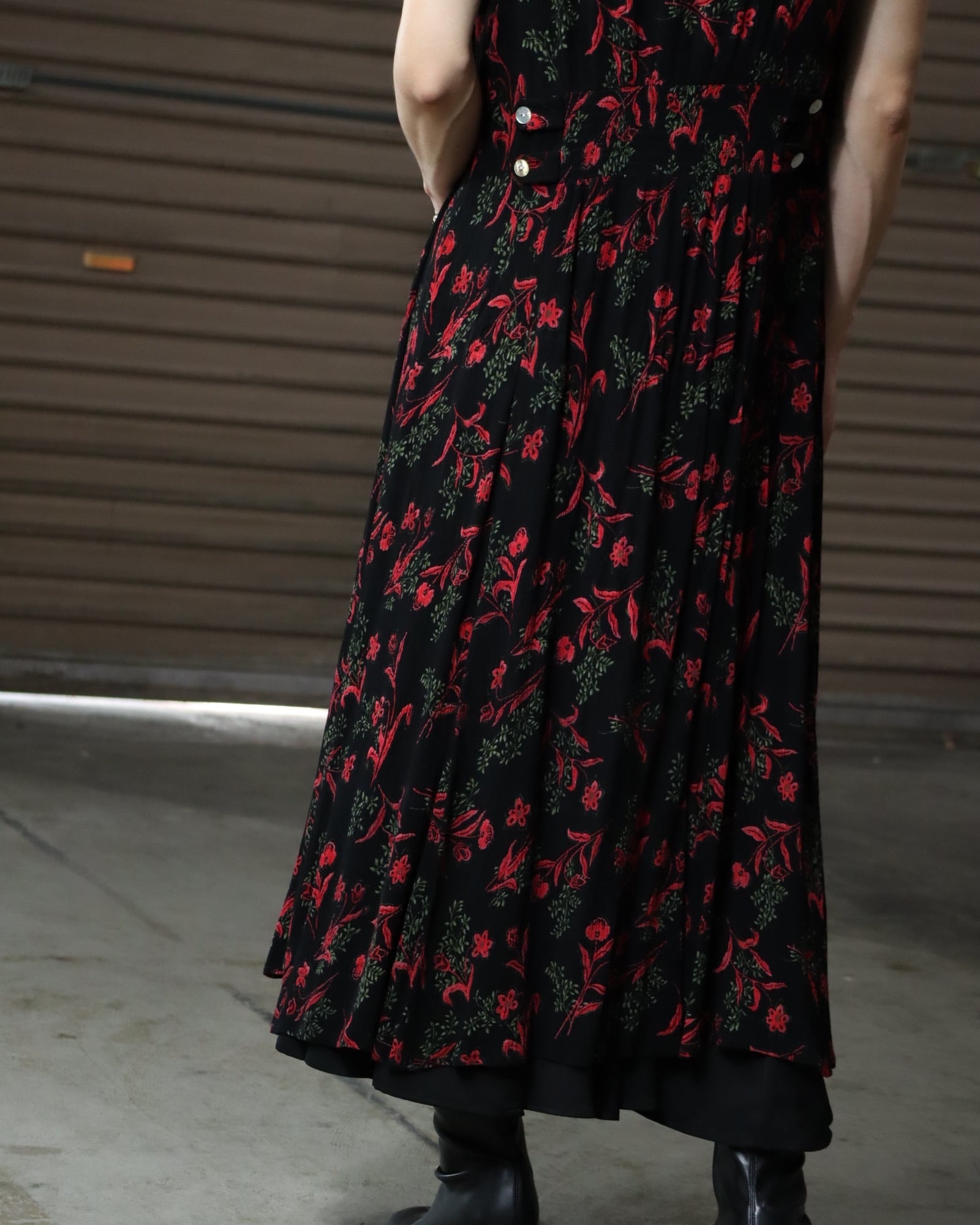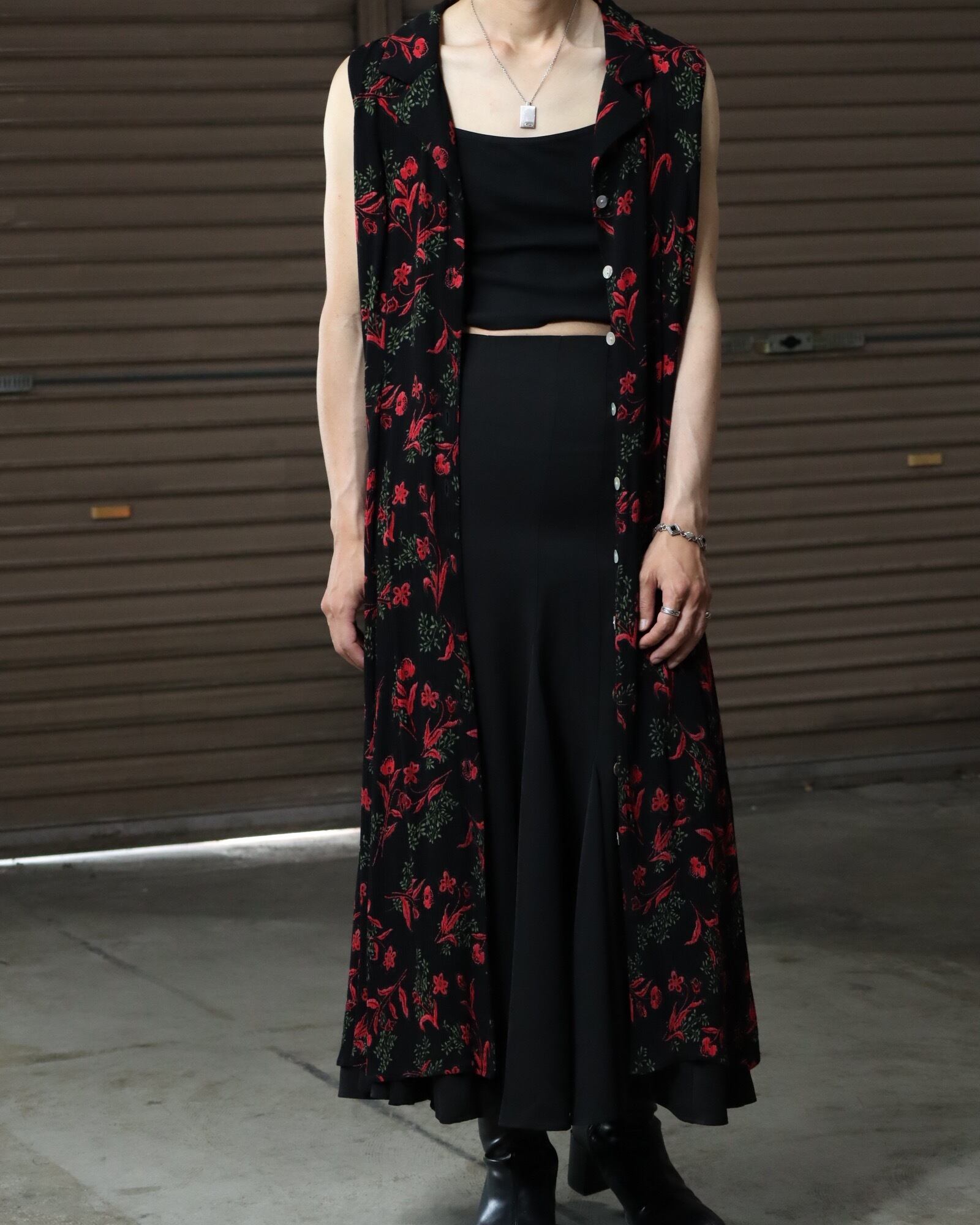 ▼Item / flower art maxi length washer gilet one-piece dress