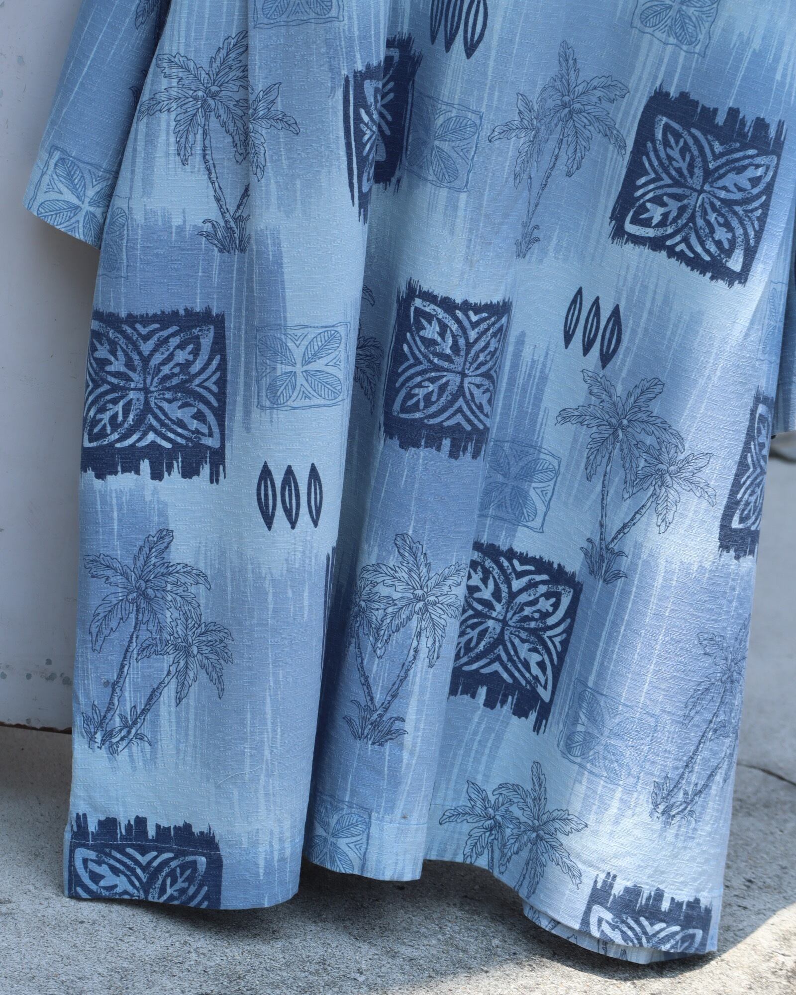 ▼Item / hawaiian quilt art cold tone silk hawaiian shirt oversized