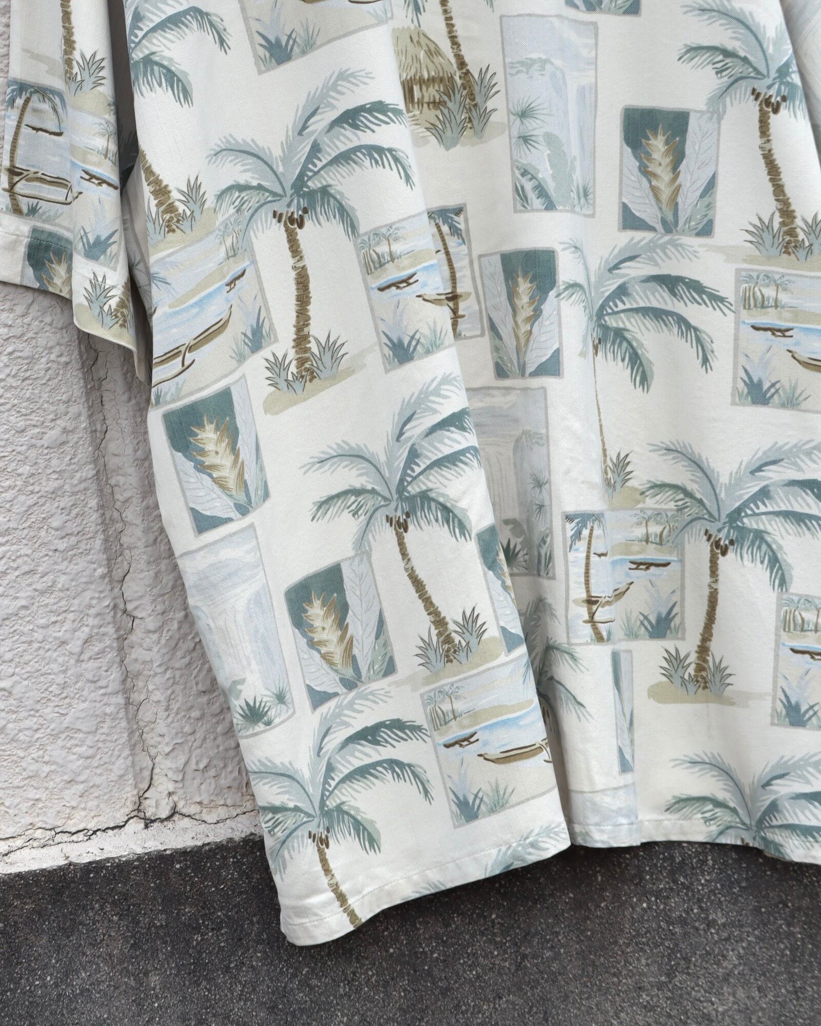▼Item / palm trees art jacquard stripe silk hawaiian shirt