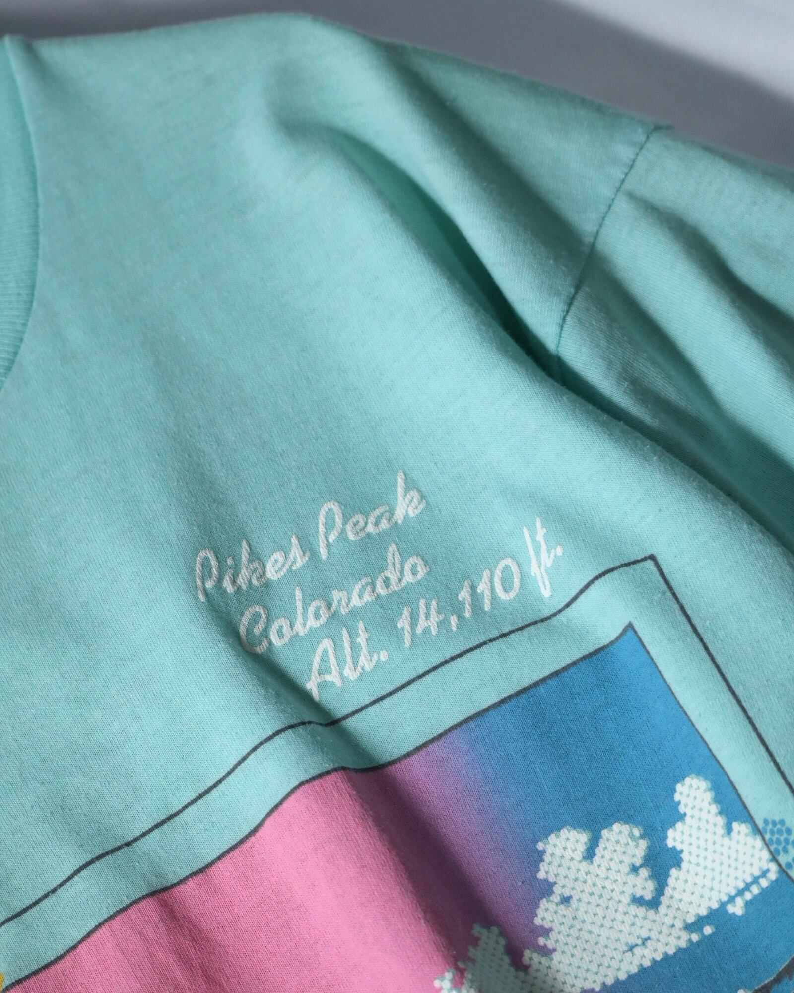 1990s 'Pikes Peak' art pale tone Tee made in USA