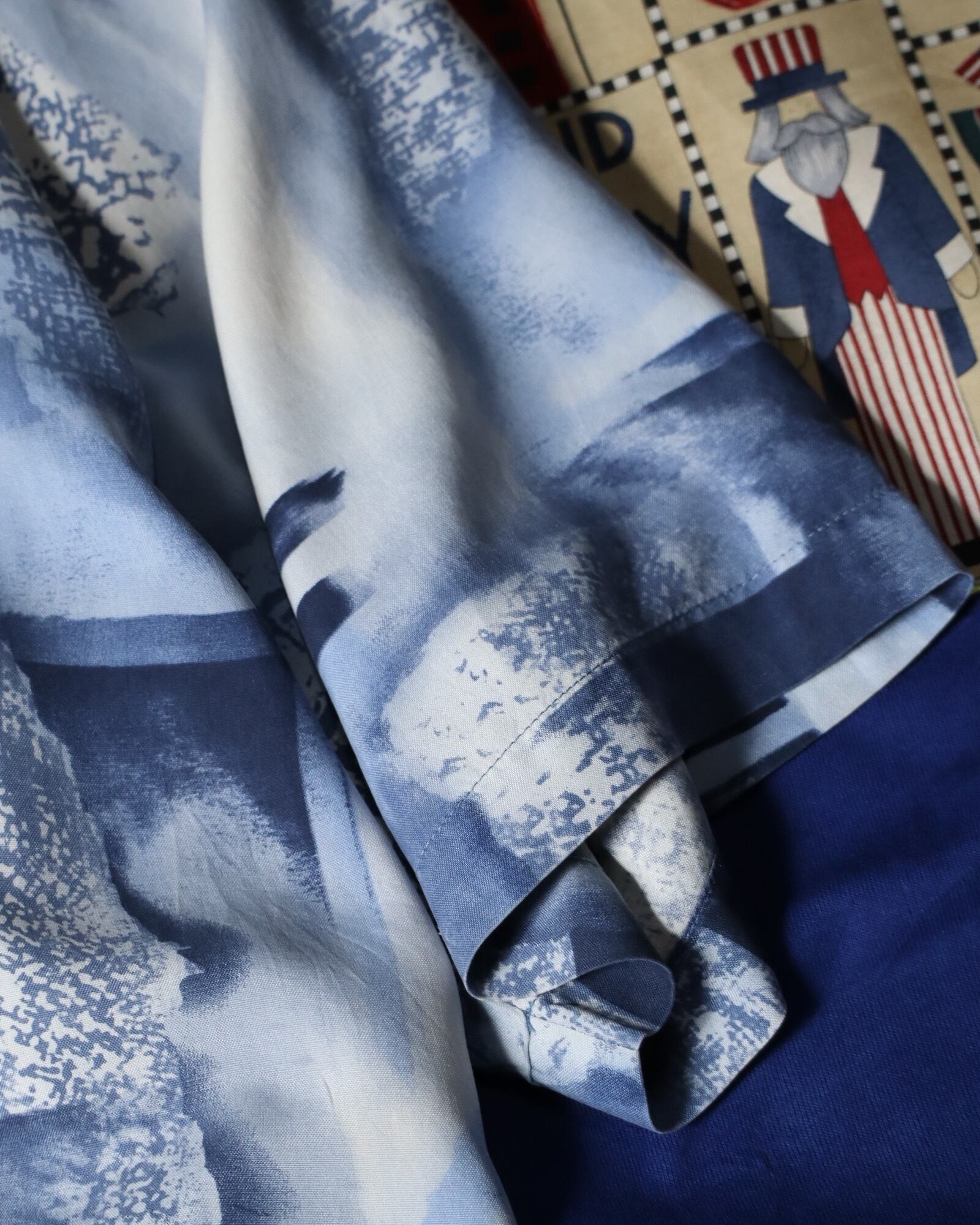▼Item / blur × atomic art blue gradation silk s/s shirt