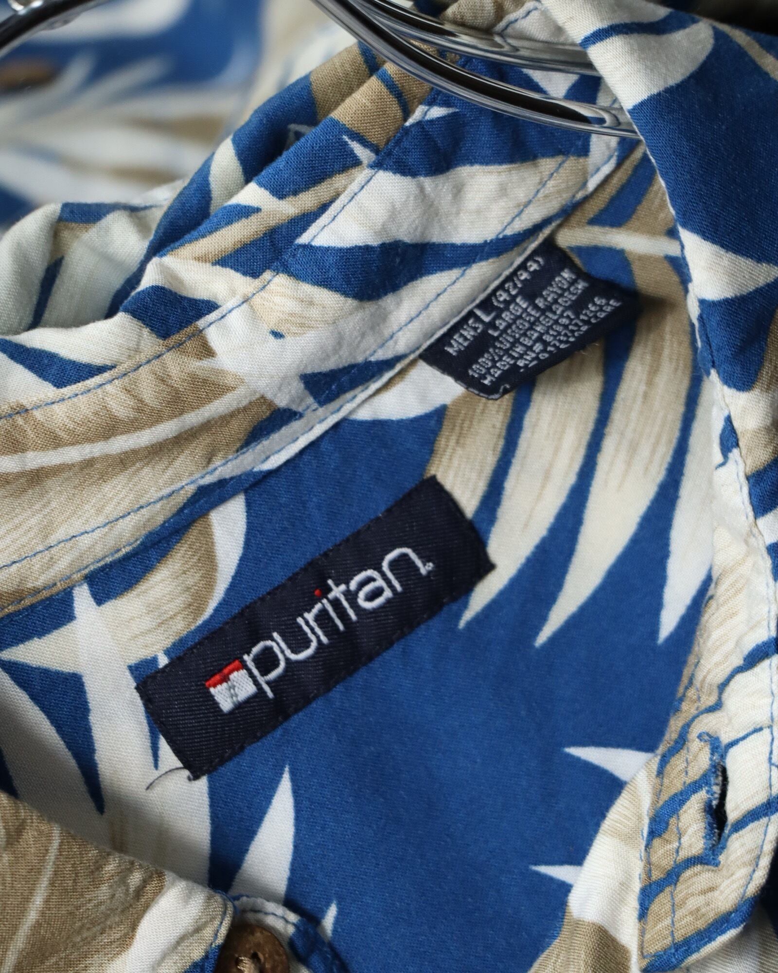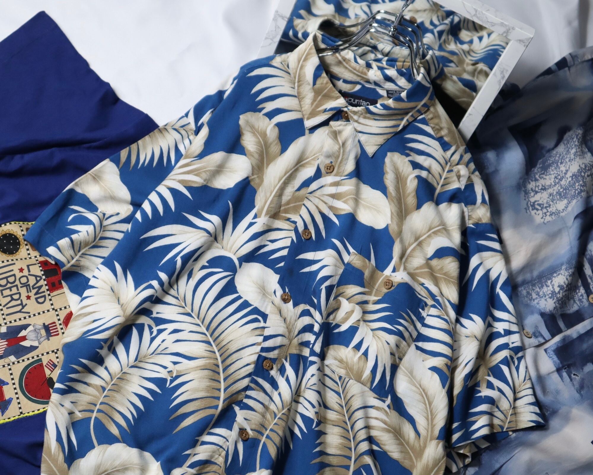 ▼Item / 1990s puritan botanical art marine blue s/s shirt