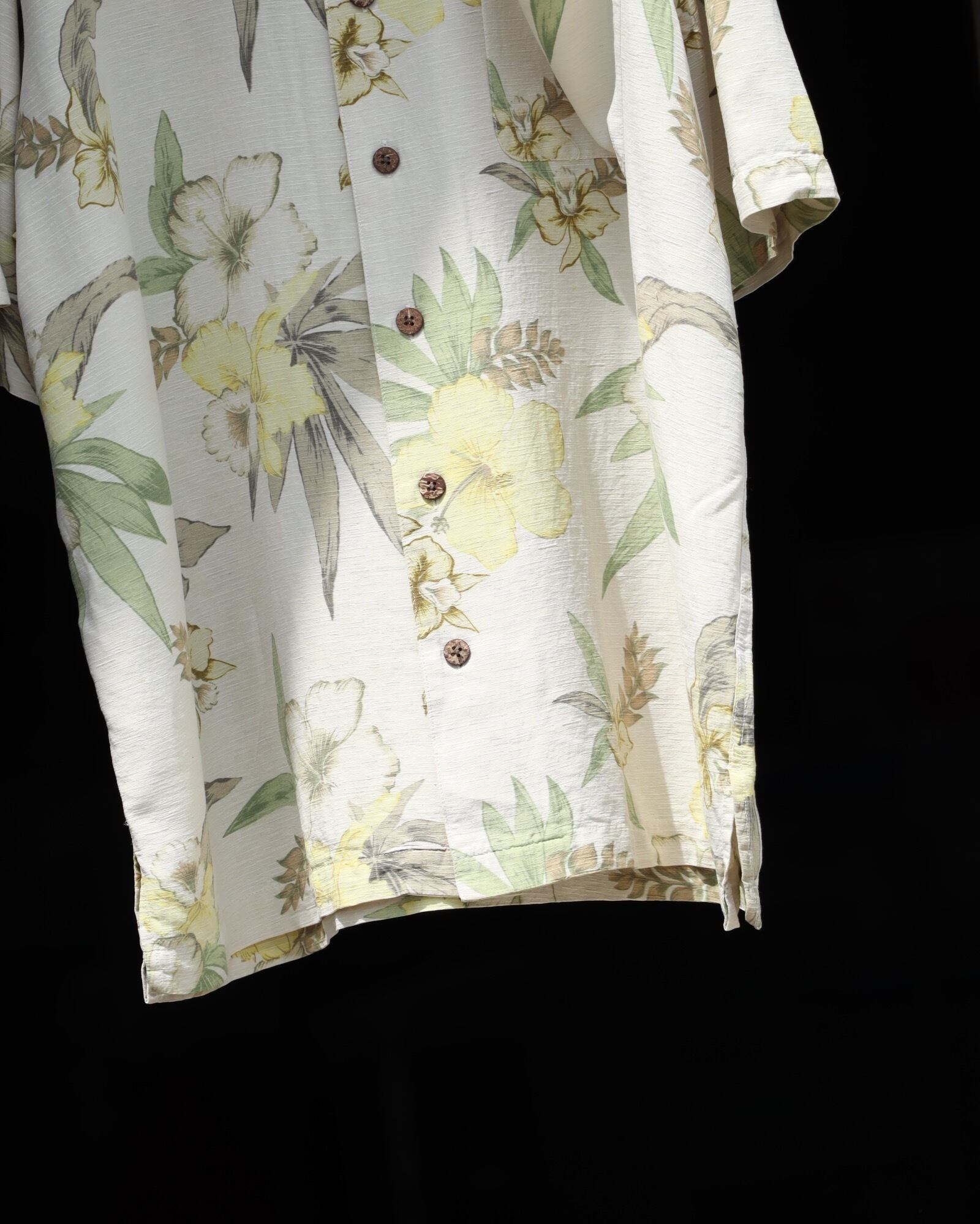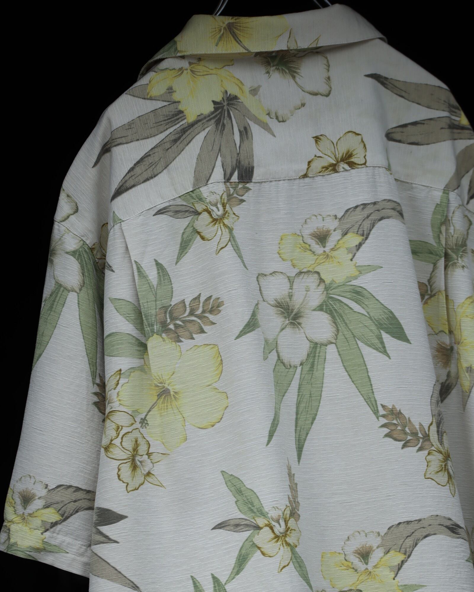 ▼Item / pale tone hibiscus art silk hawaiian shirt oversized