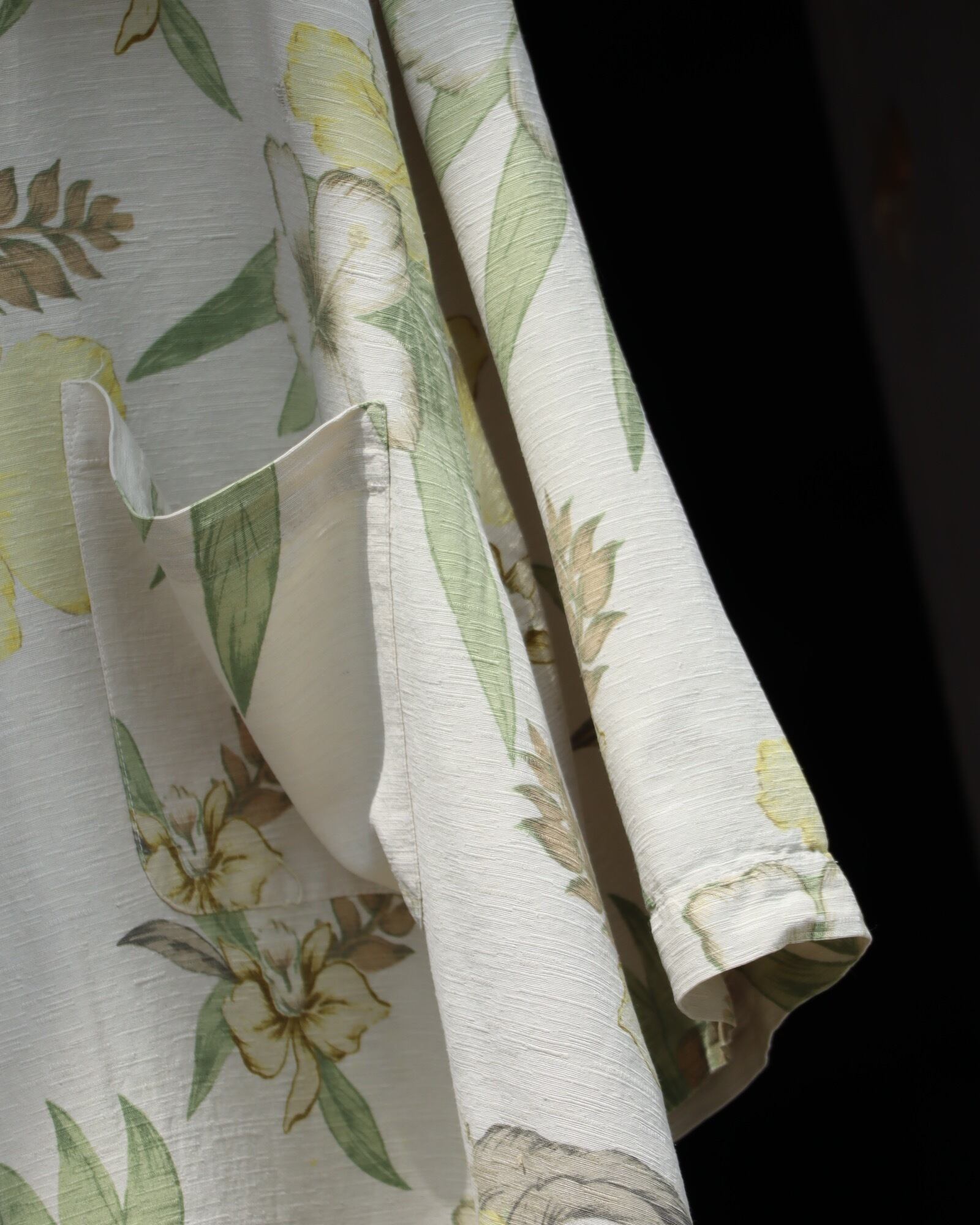 ▽Detail / オープンカラー、ココナッツボタン、パッチポケット