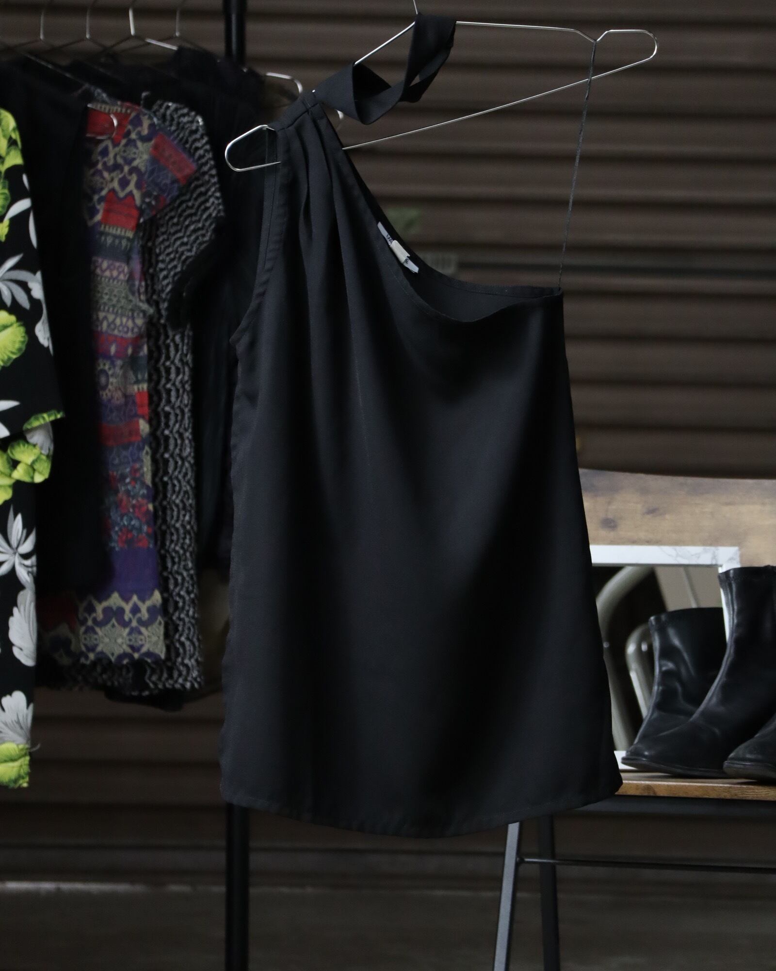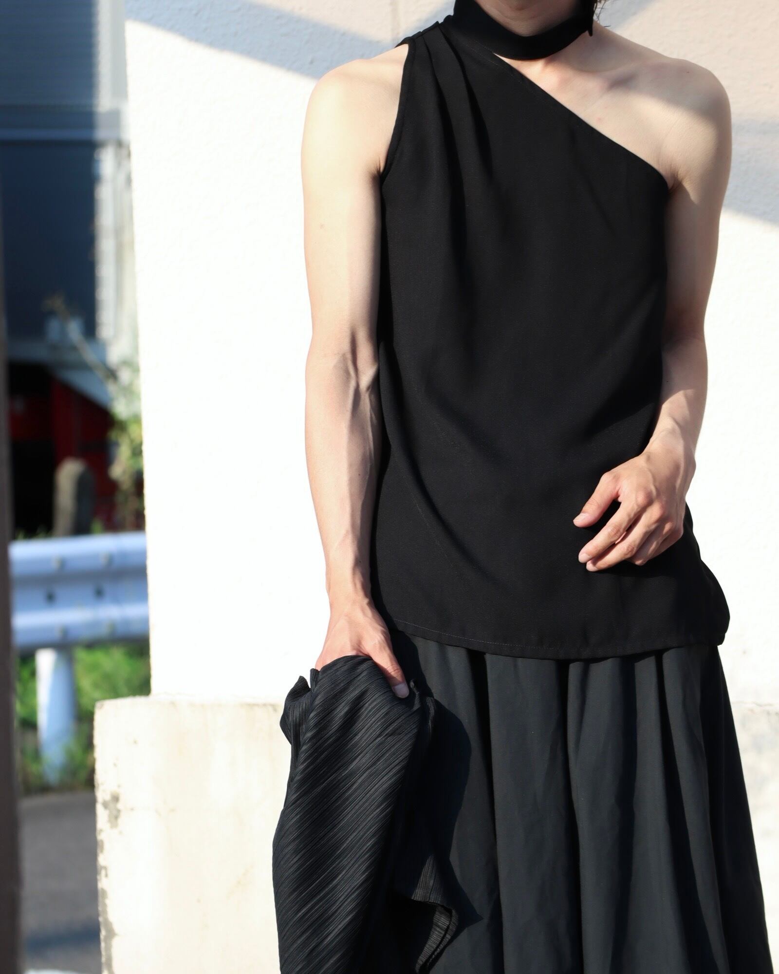 ▽Design / チョーカーネック ワンショルダー ノースリーブトップ