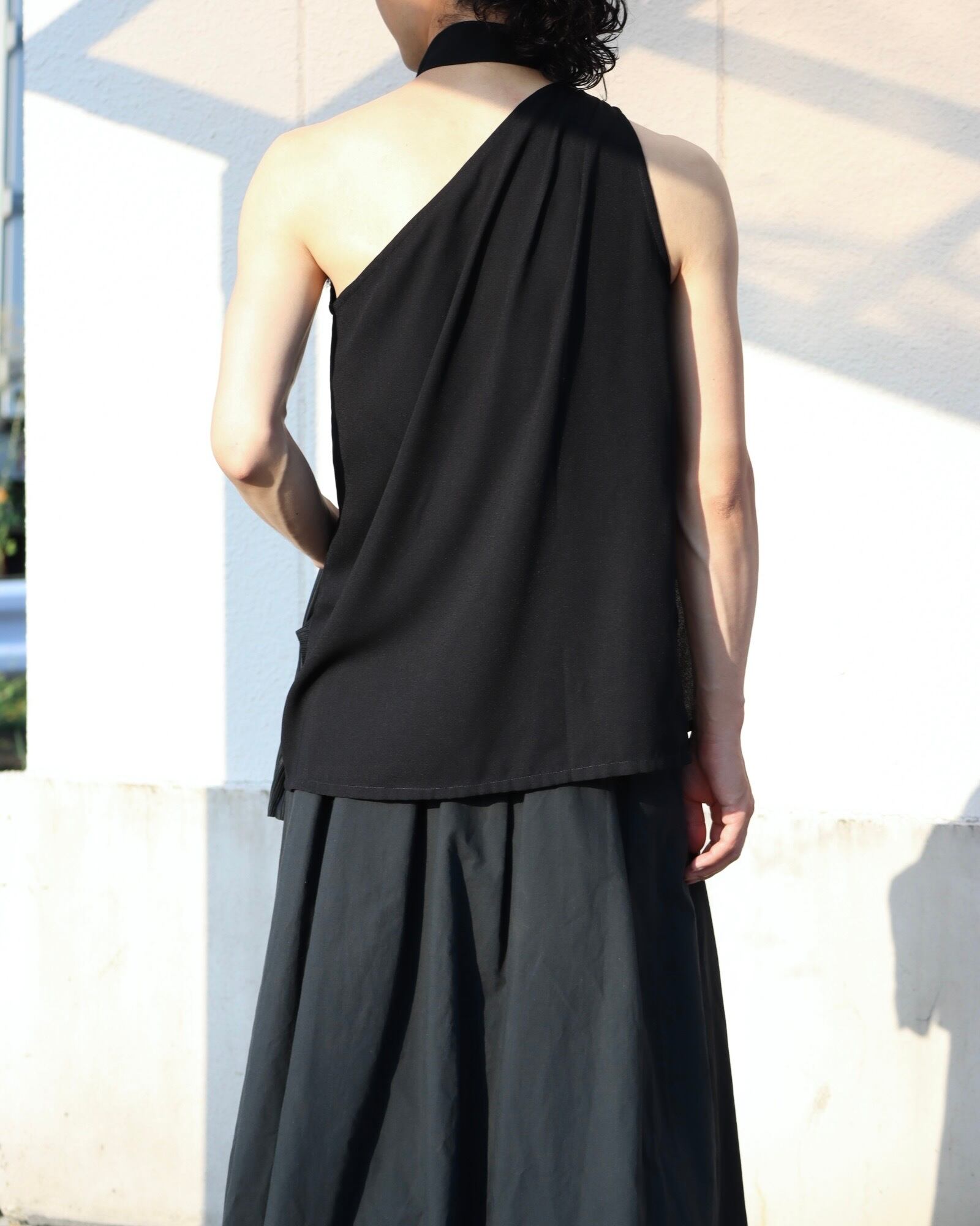 ▼Item / one shoulder × choker neck tuck drape sleeveless top