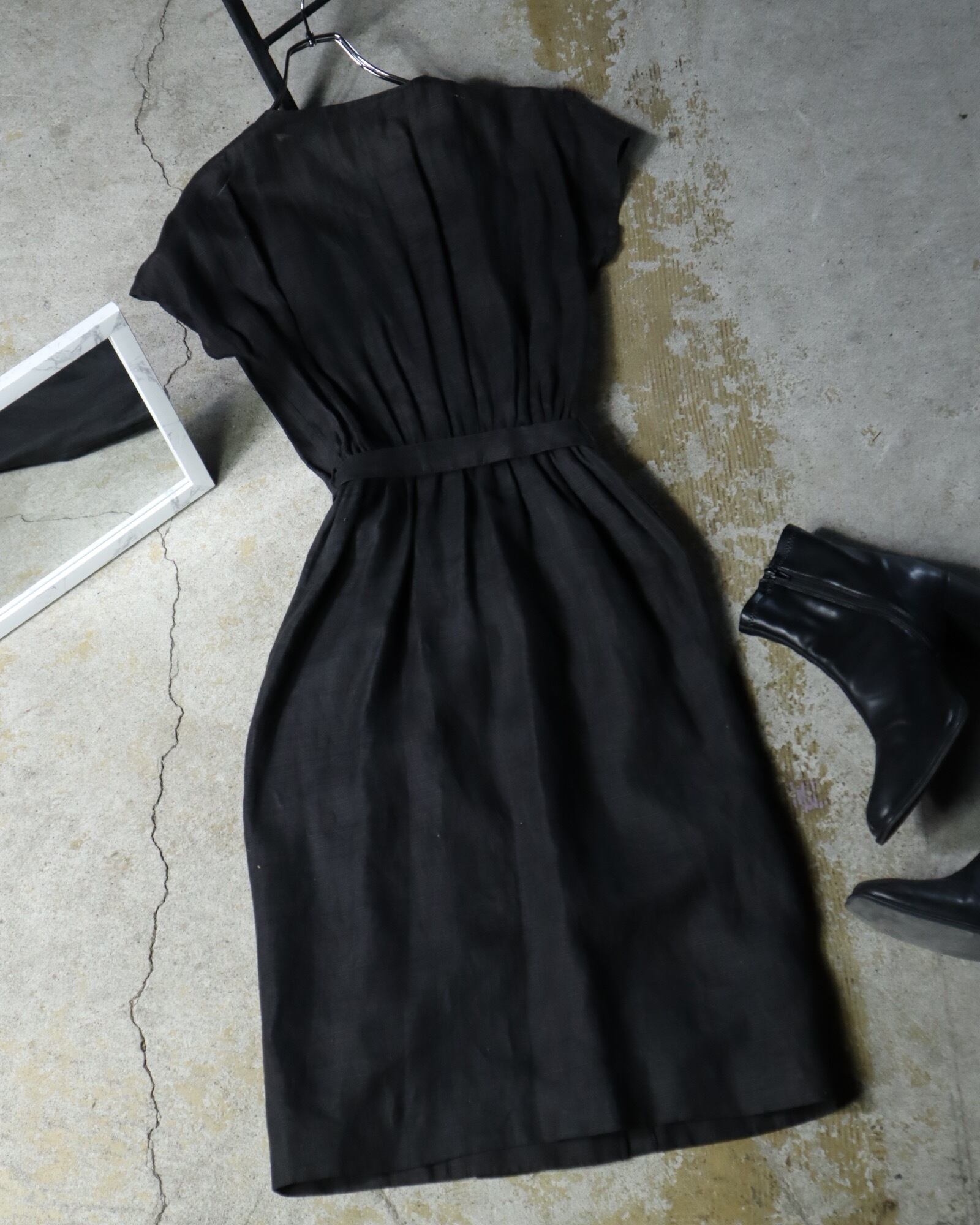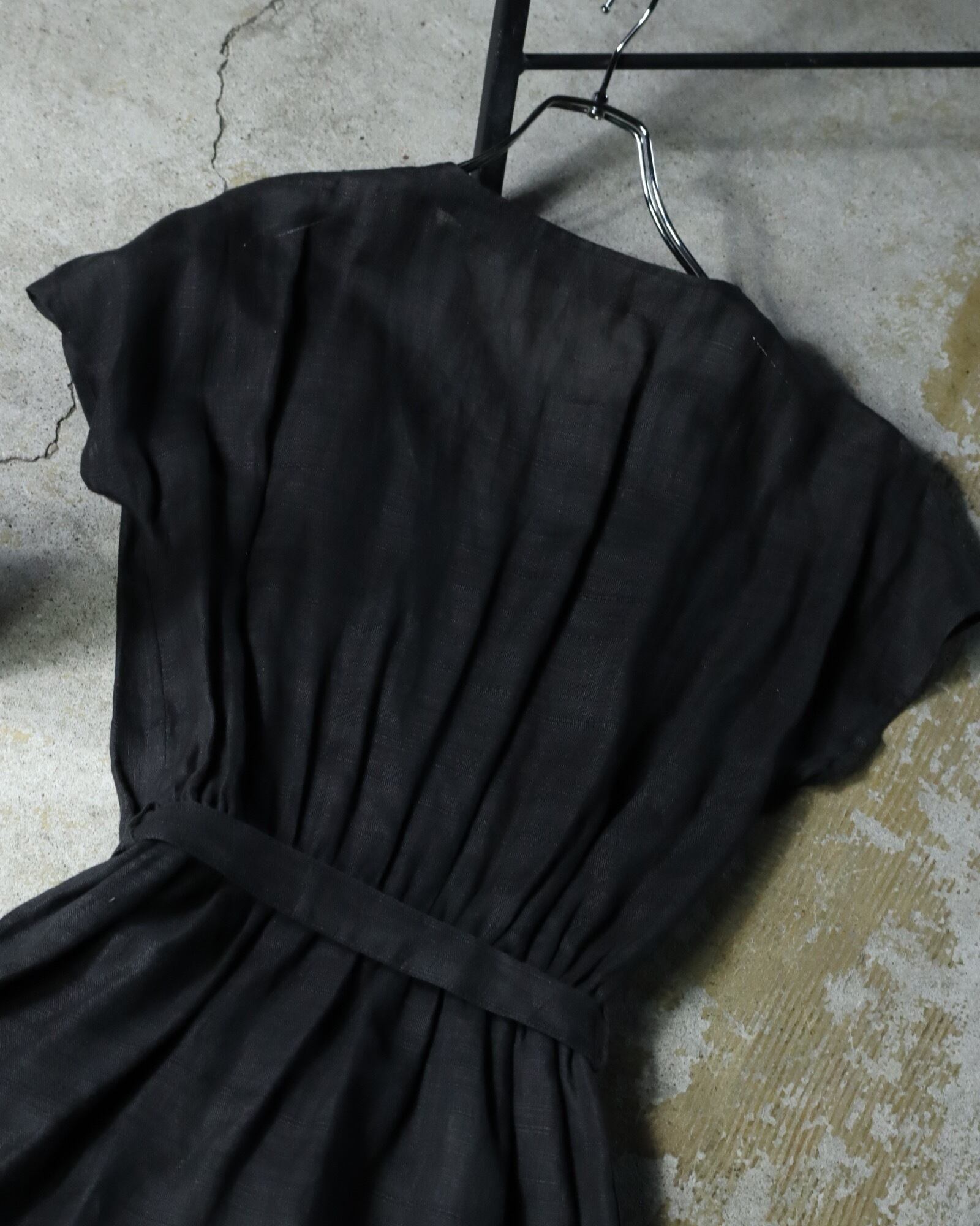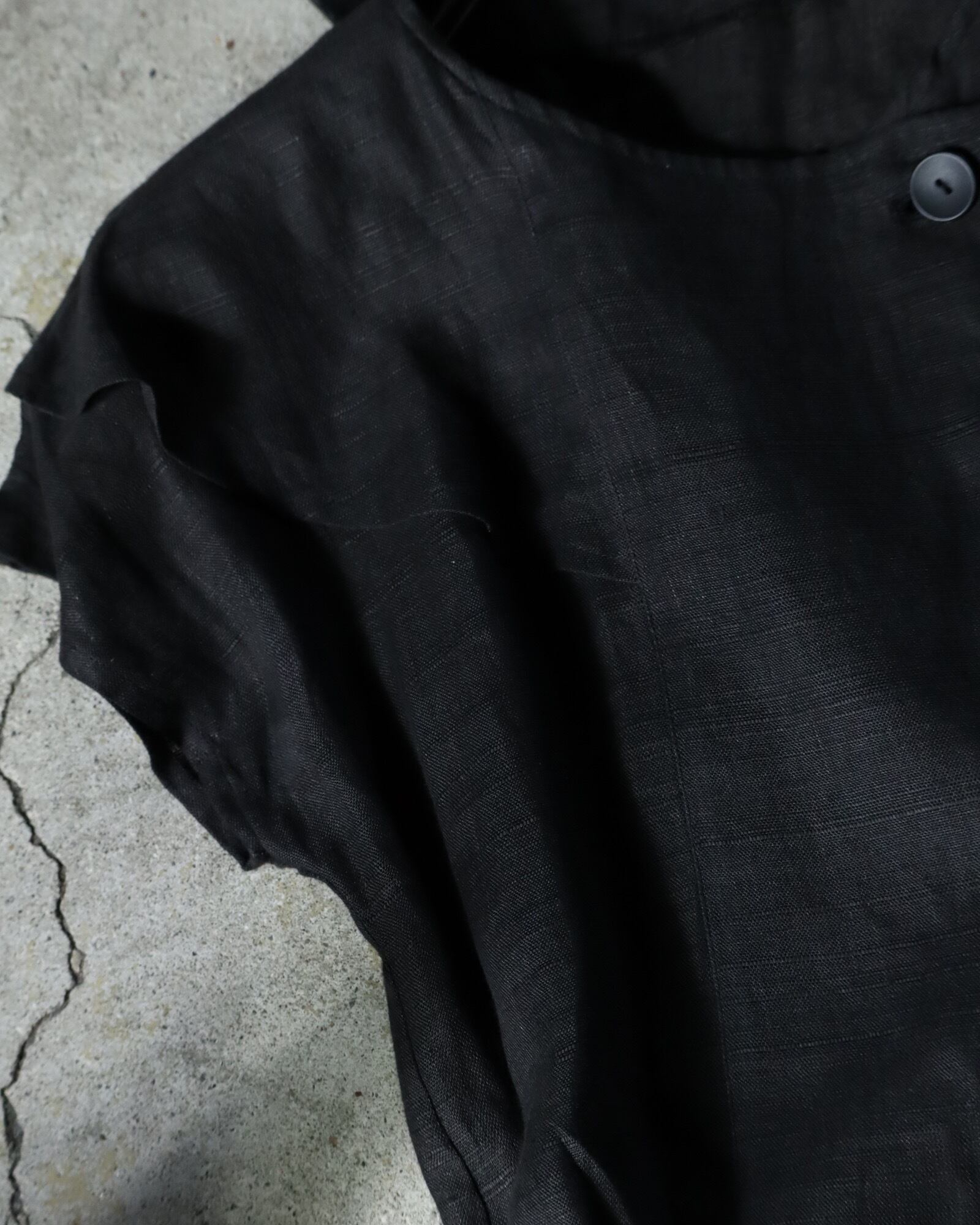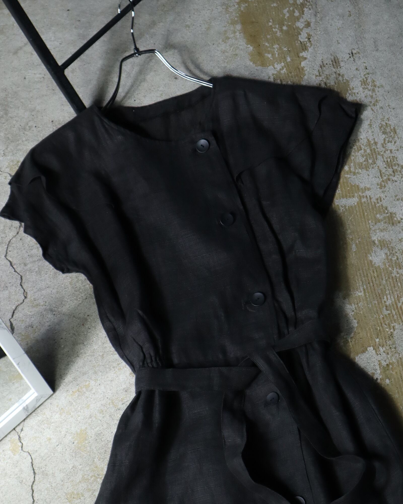 ▼Item / french sleeve × asymmetry button linen shirt one-piece maxi length