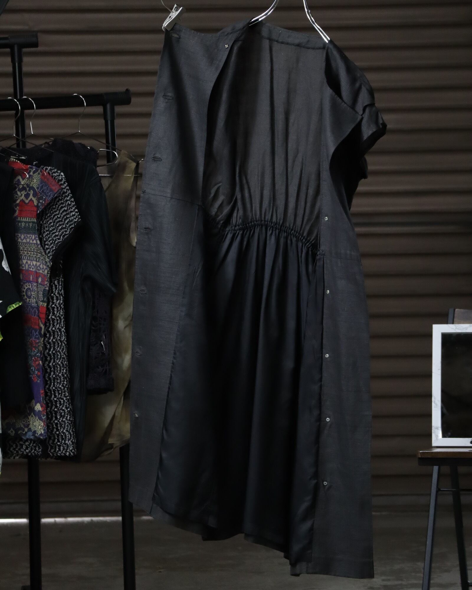 french sleeve × asymmetry button linen shirt one-piece maxi length
