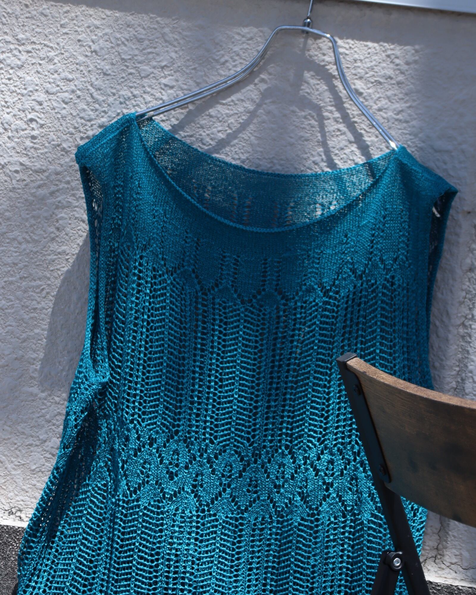 ▼Item / turquoise color zakkuri crochet mesh sleeveless top