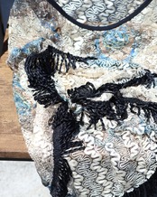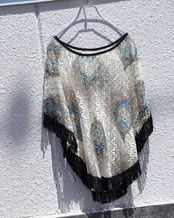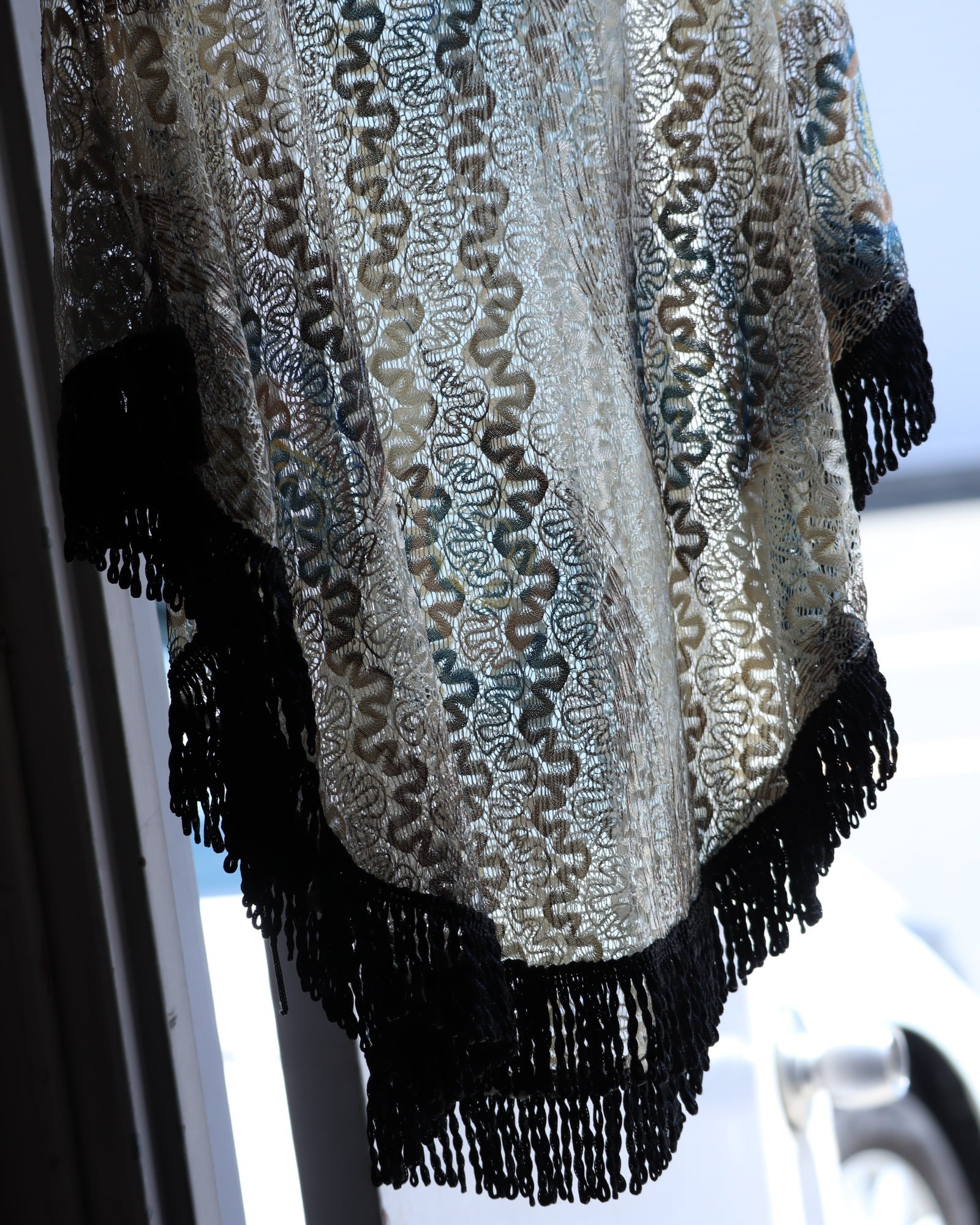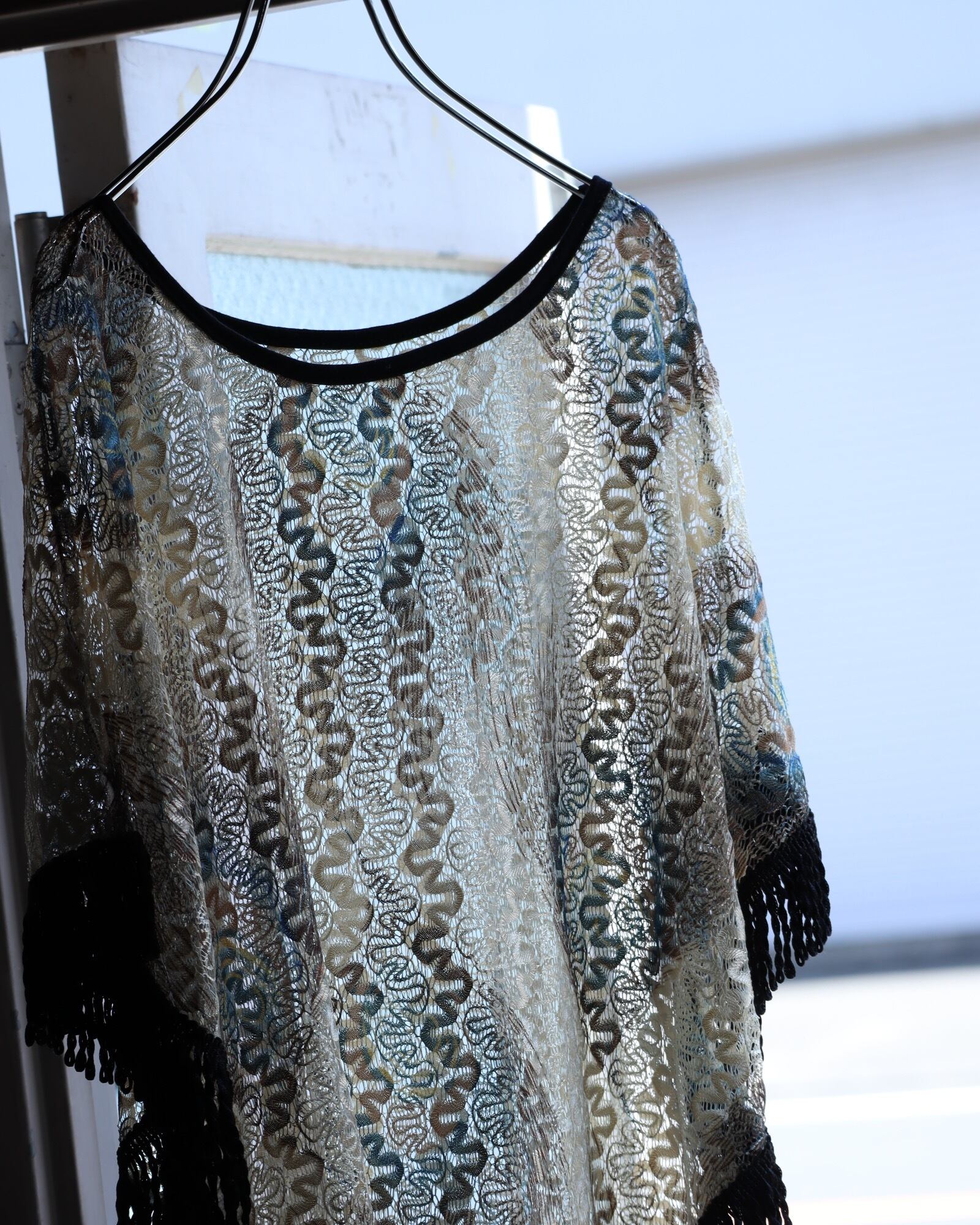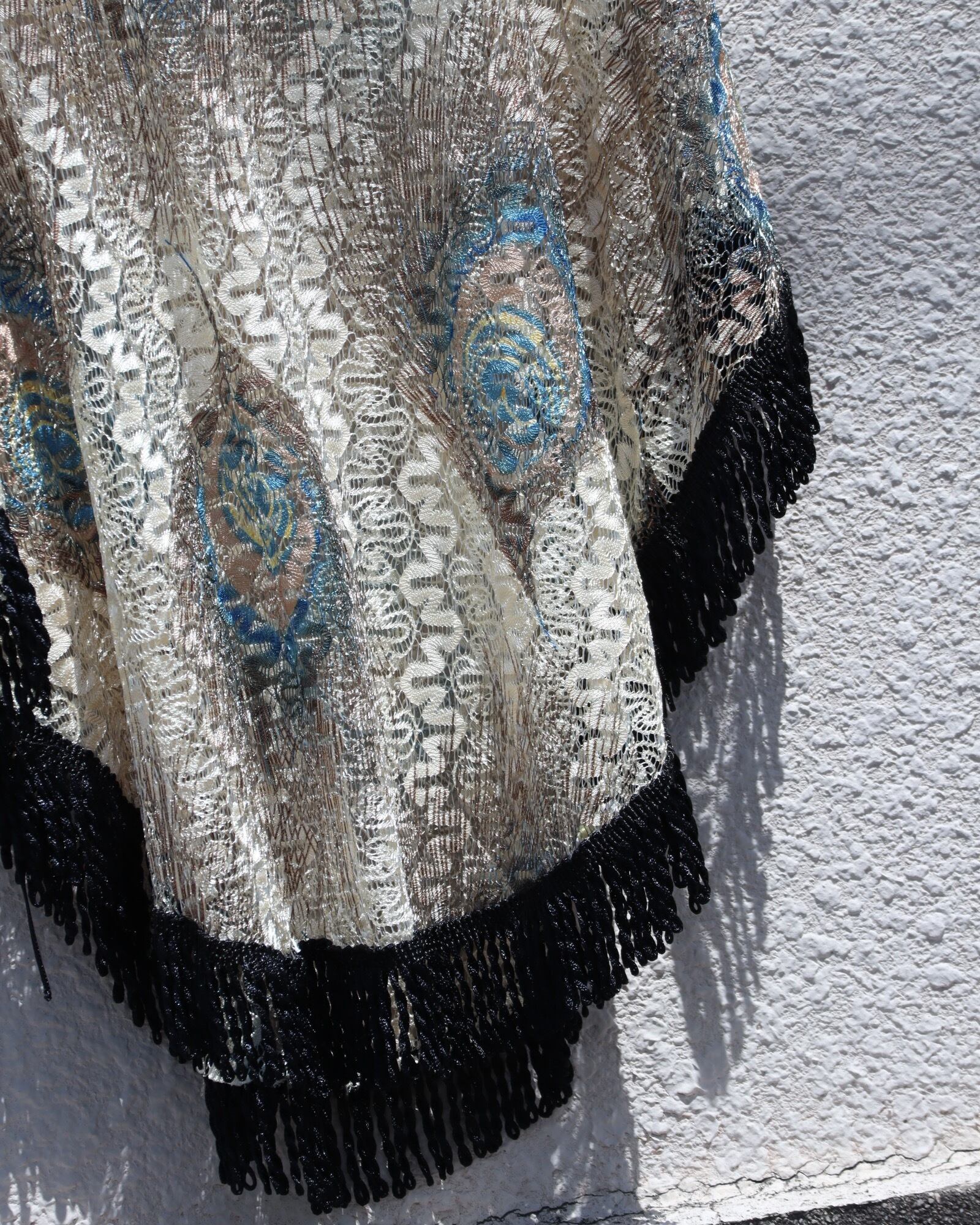 ▼Item / peacock jacquard sheer lace mesh × fringe poncho