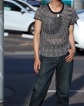 jagged radial jacquard mesh s/s summer knit