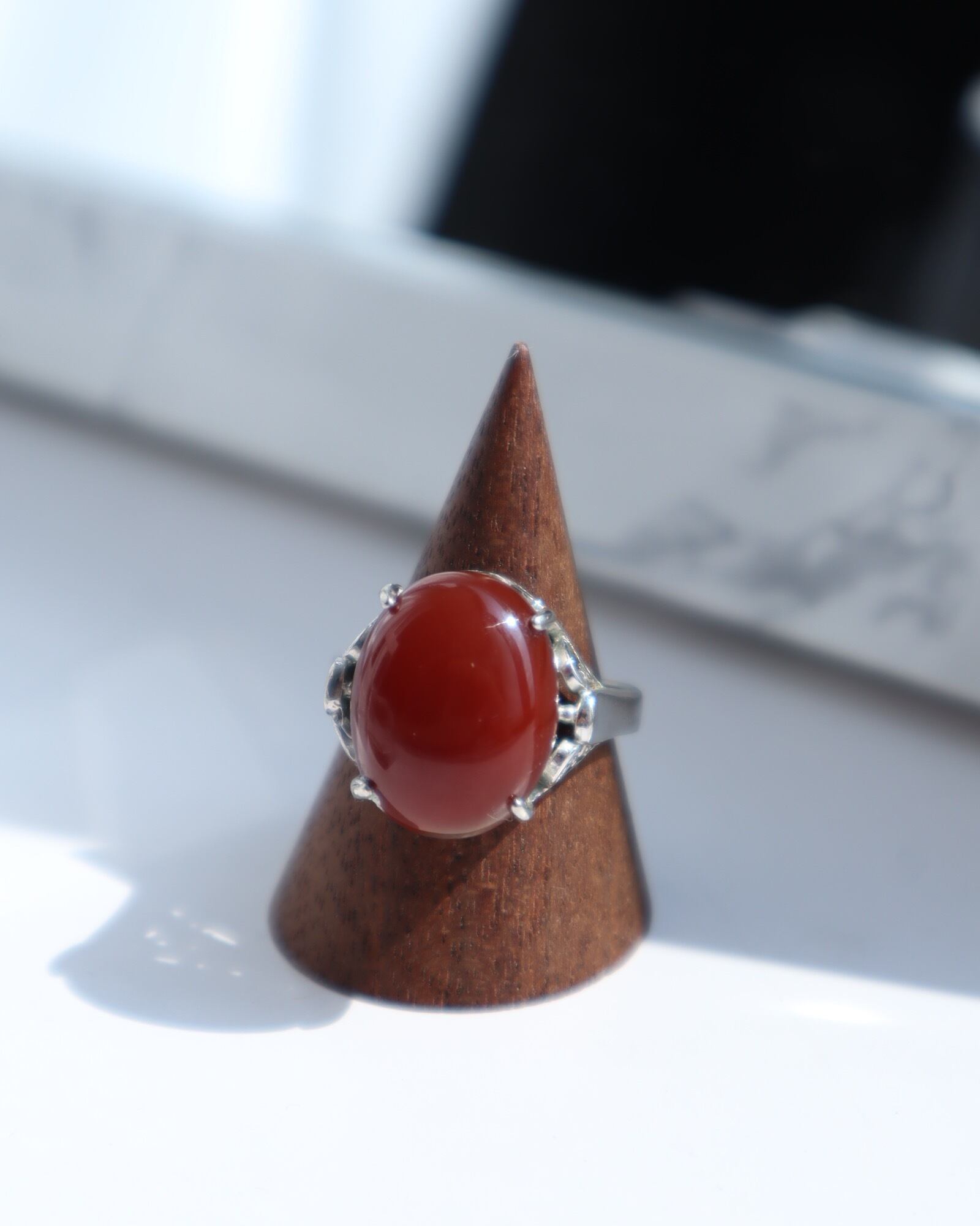 deep red oval shape chunky charm vintage ring