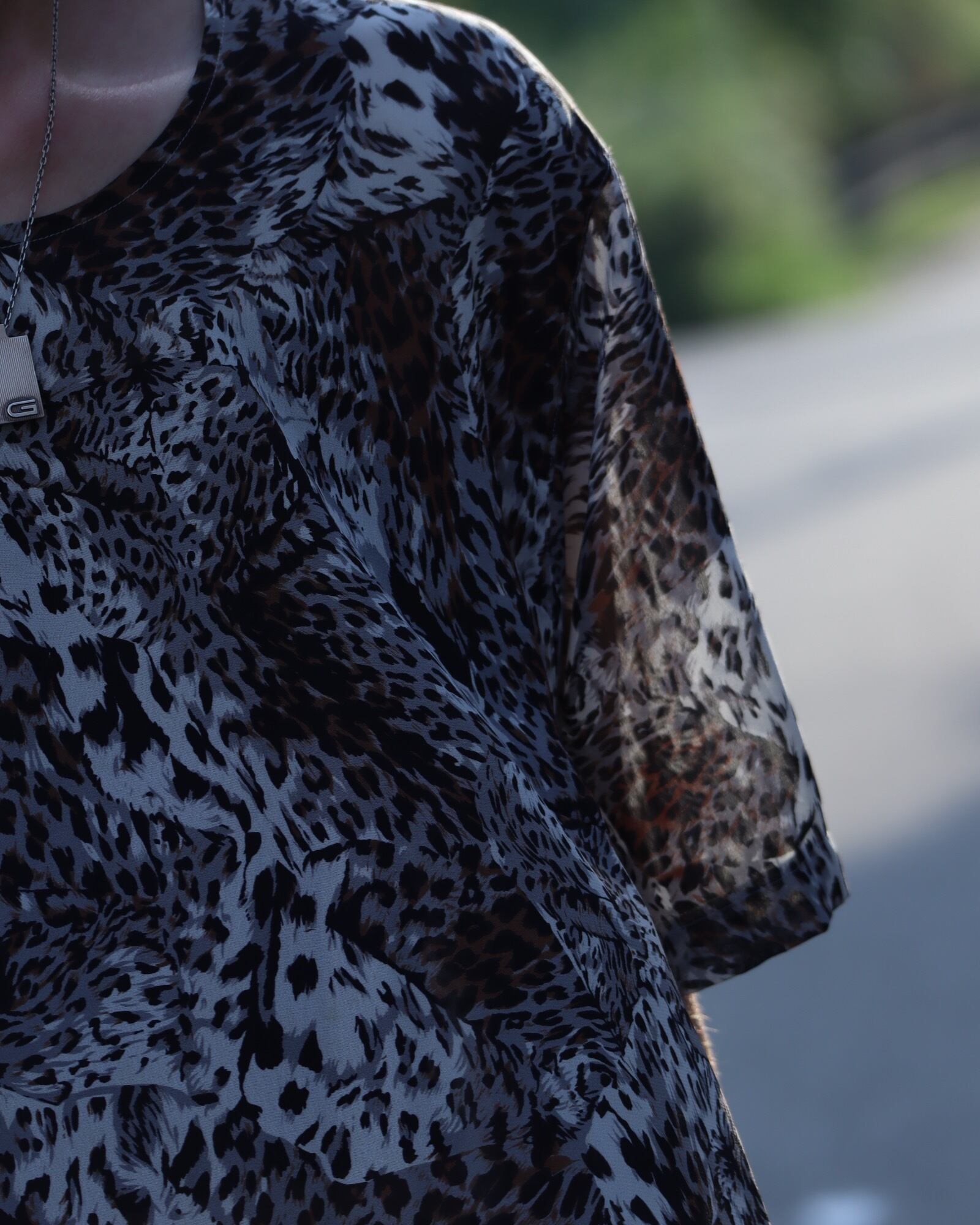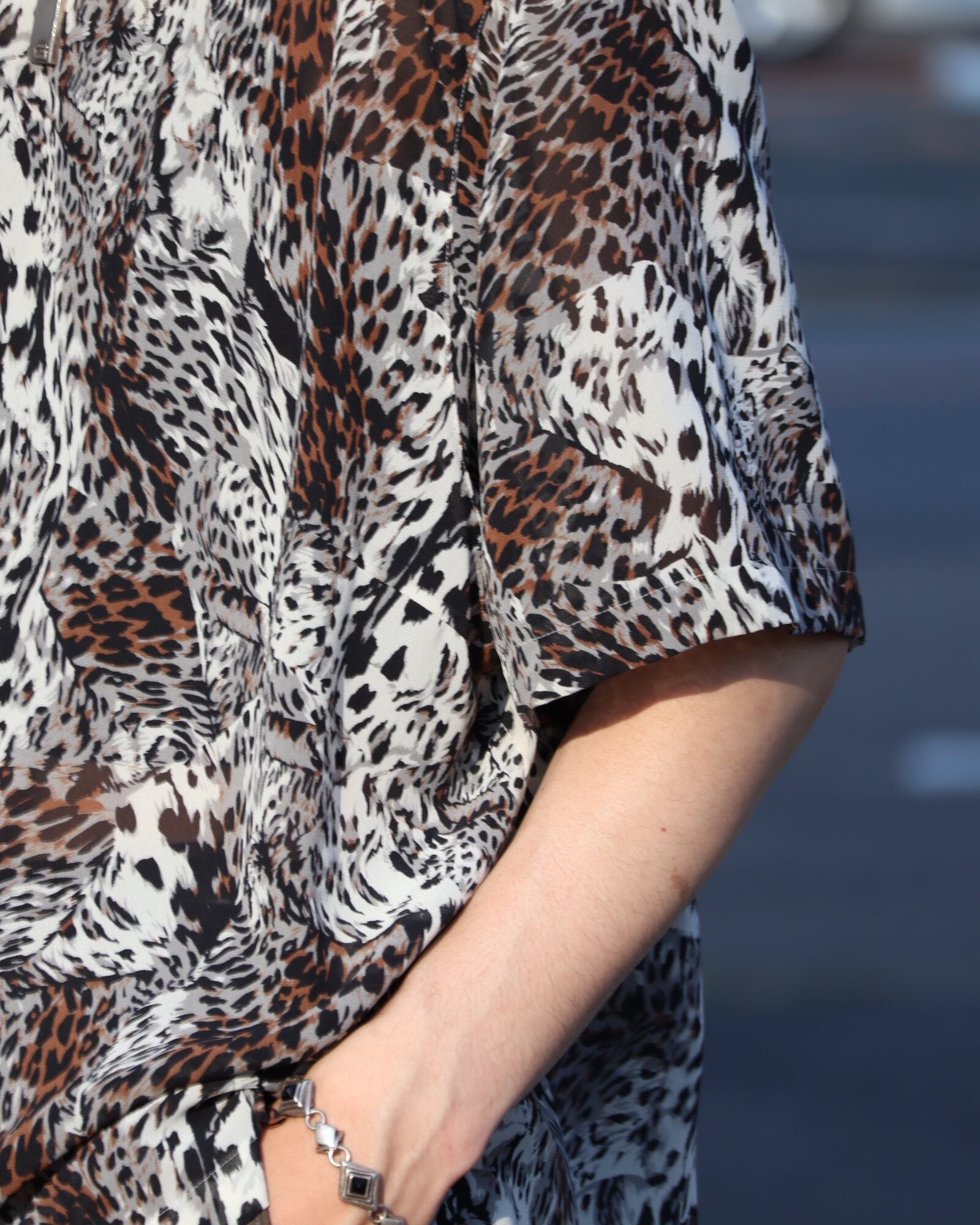 leopard print sheer s/s pullover shirt