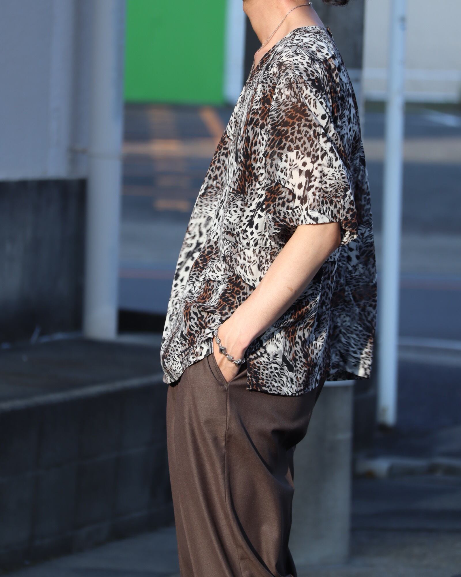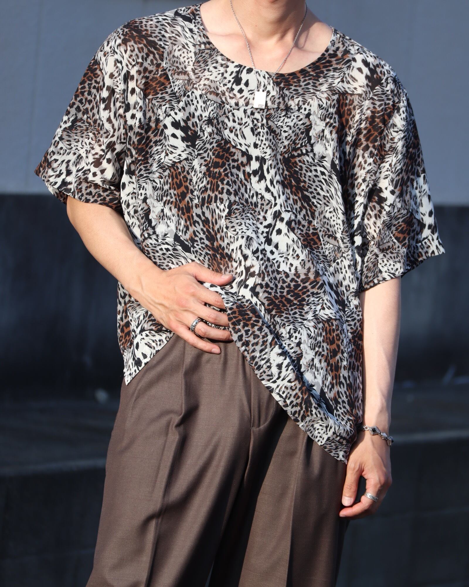 ▼Item / leopard print sheer s/s pullover shirt