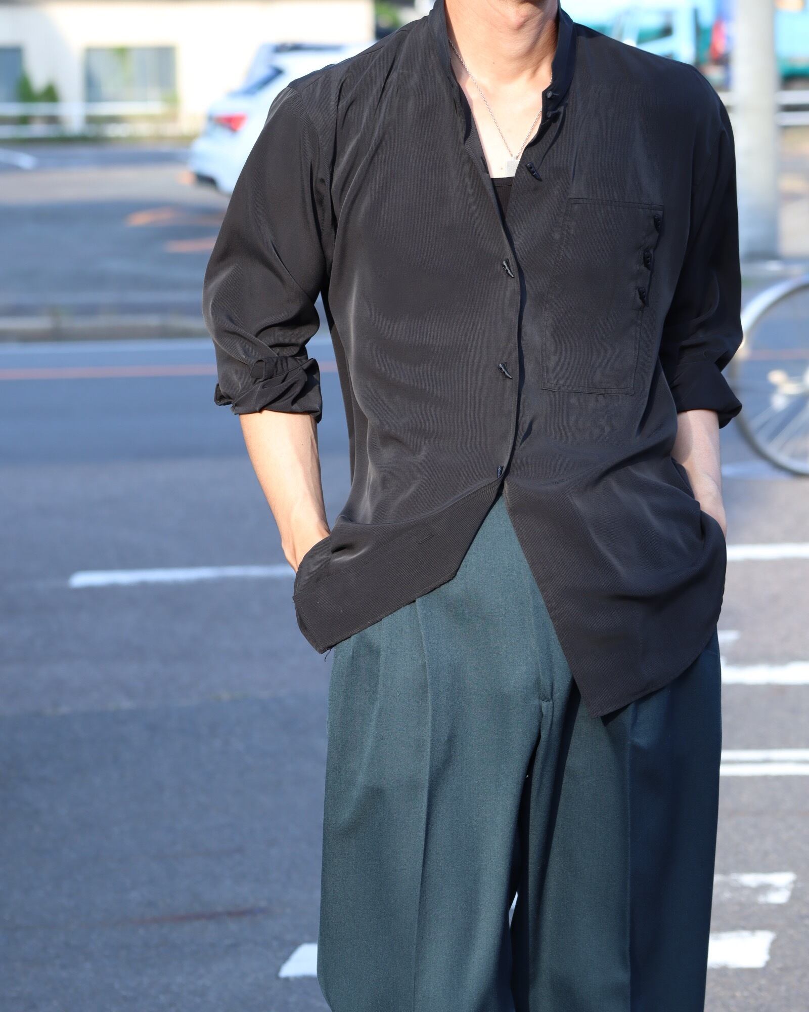 ▼Item / mao collar toromi kersey l/s shirt black