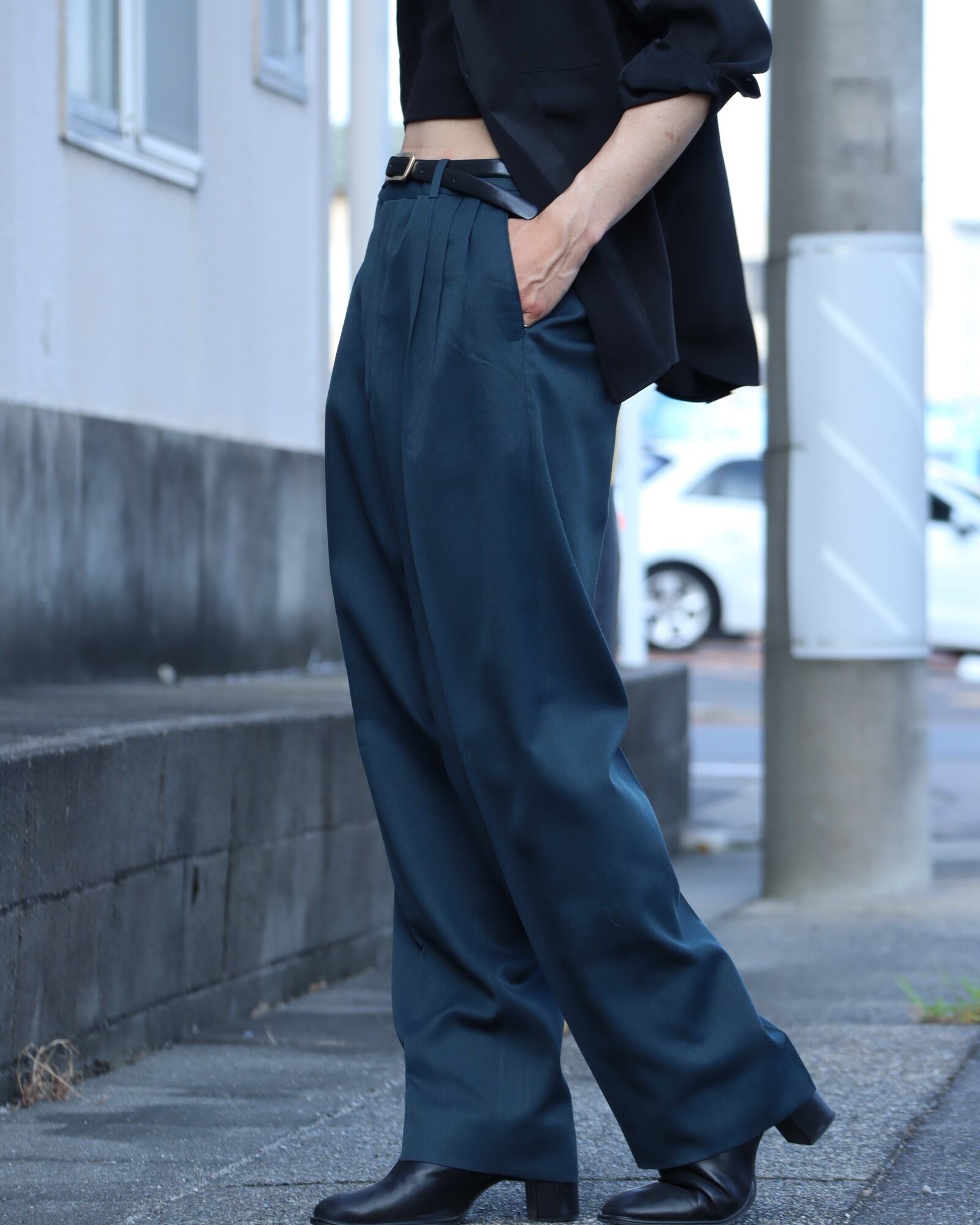 ▼Item / 3tuck wide-straight slacks deep blue-green