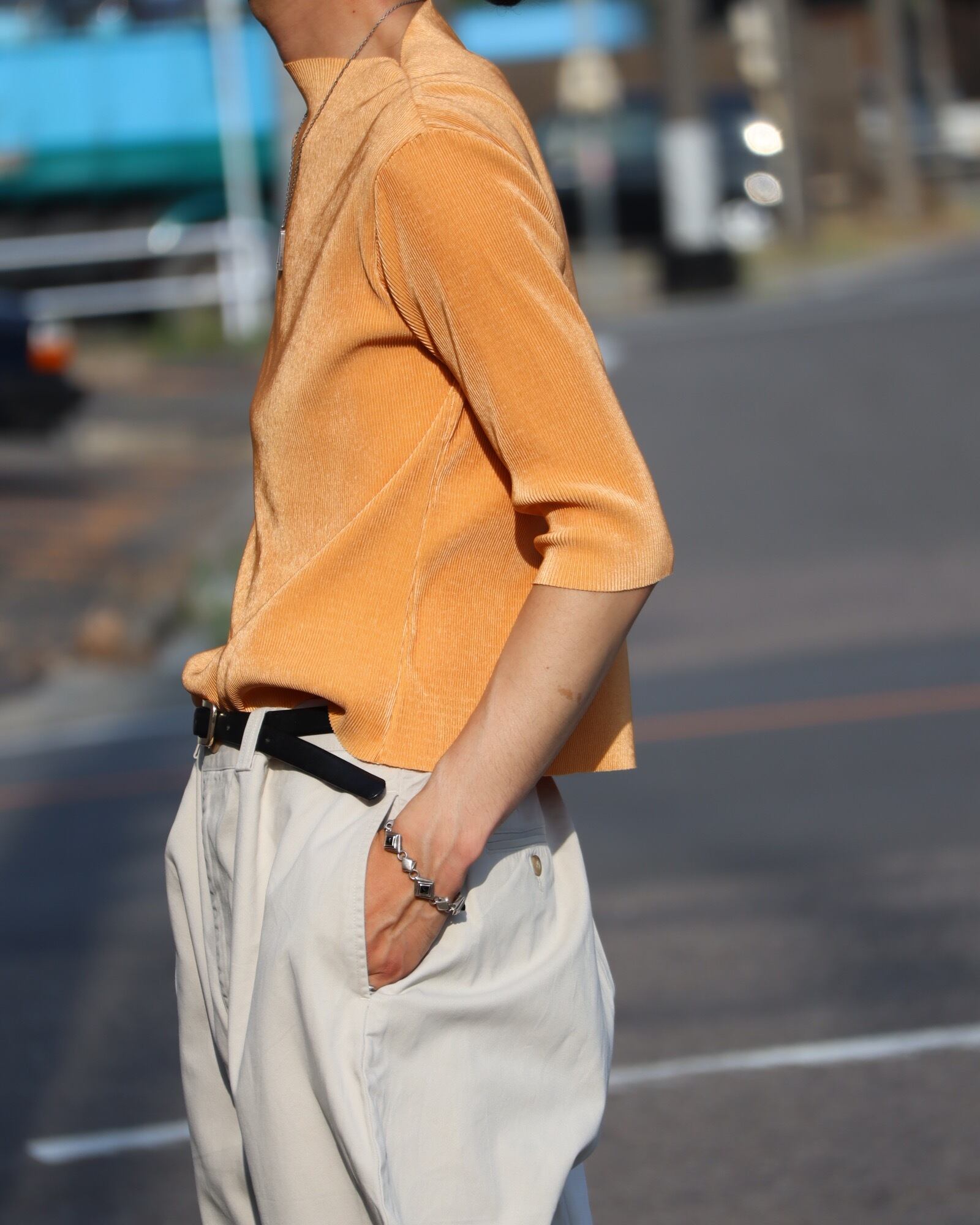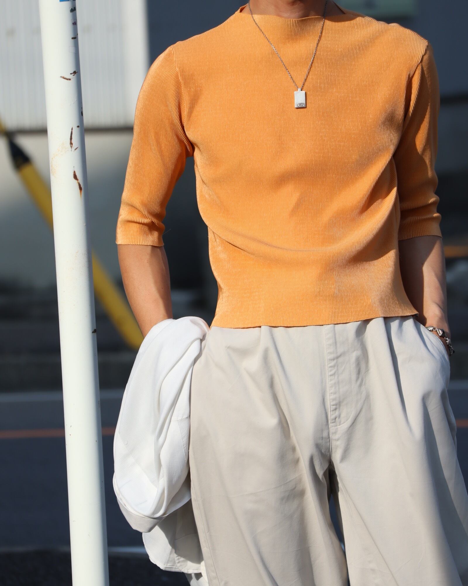 ▽Detail / リブプリーツ、ボトルスラッシュドネック