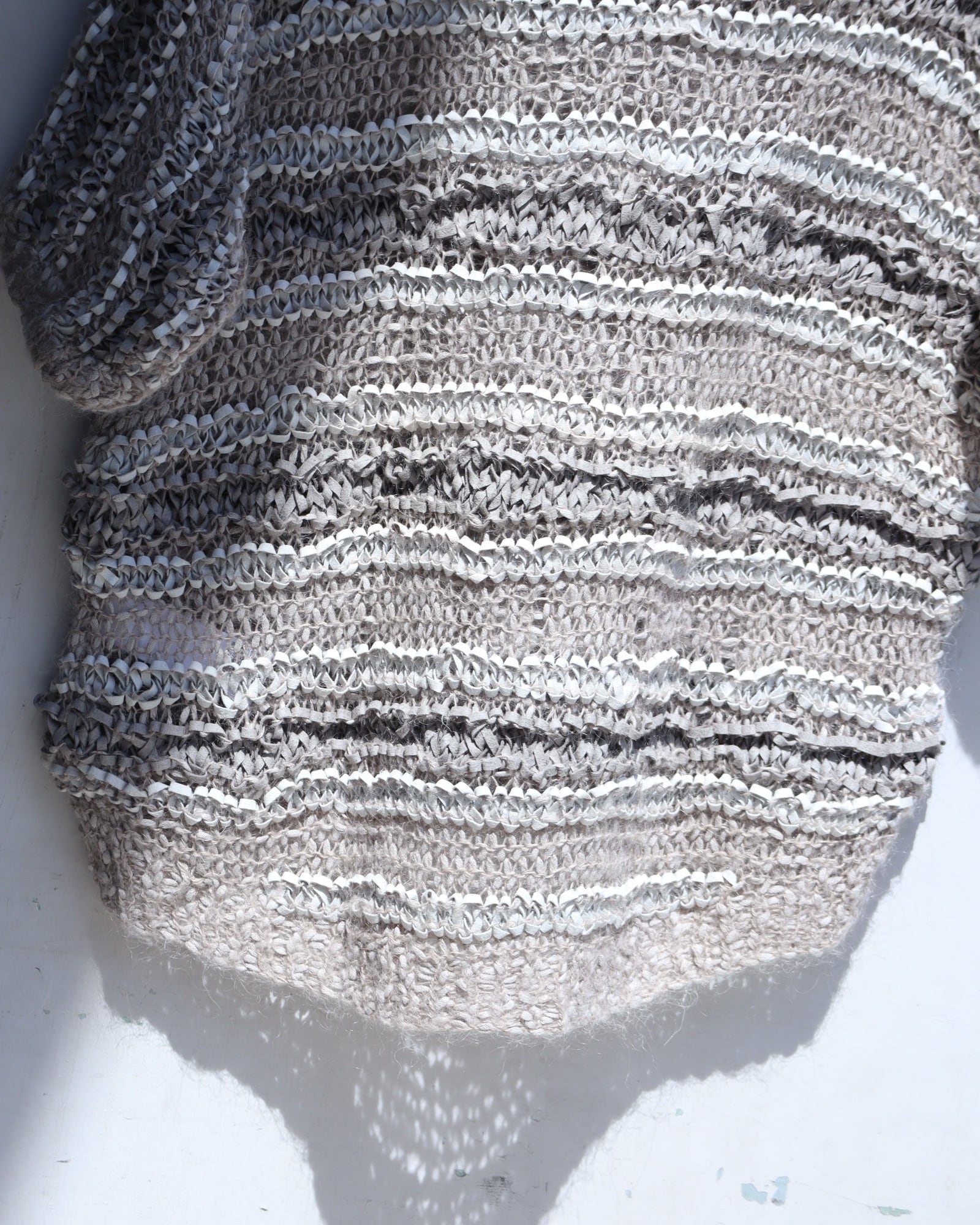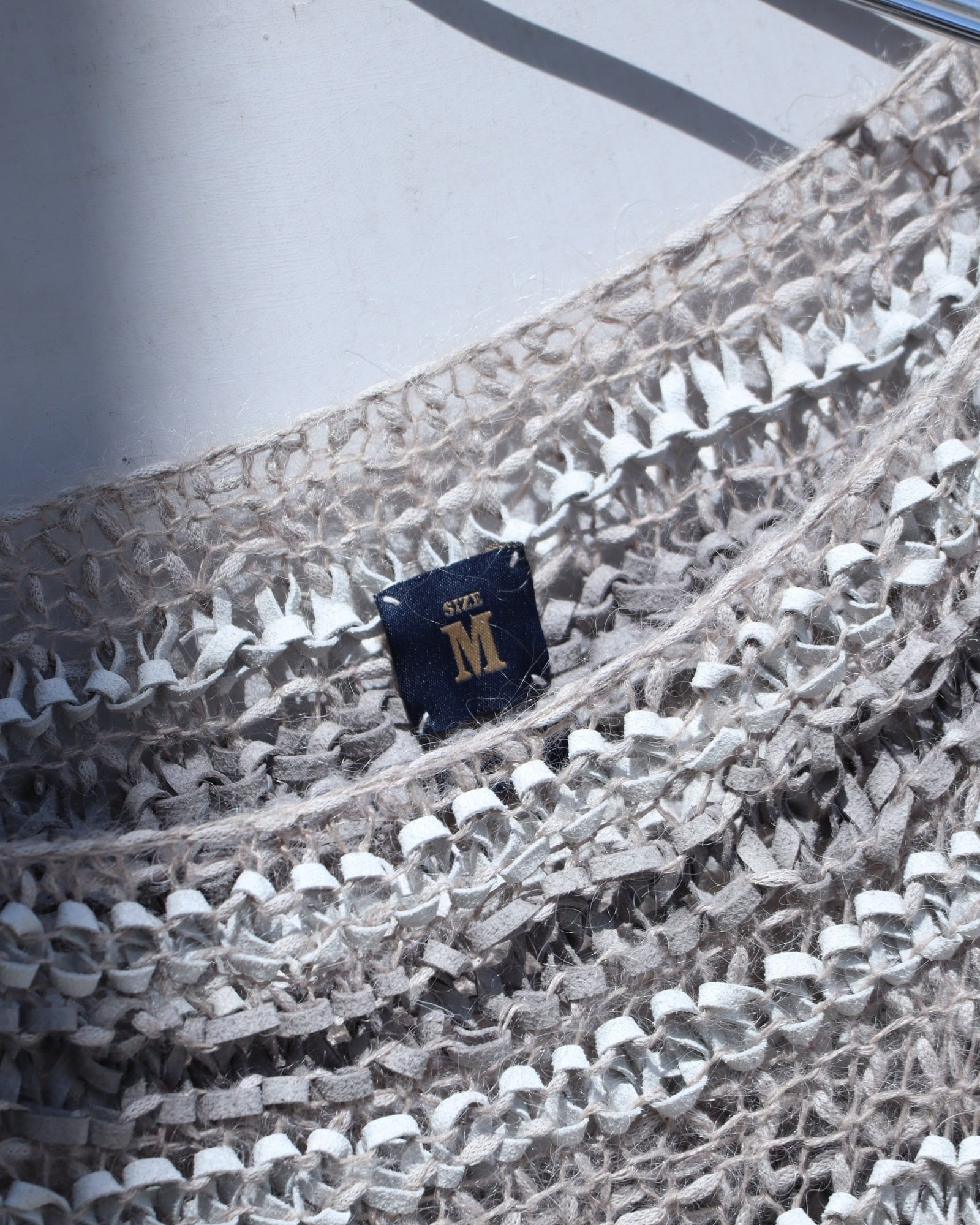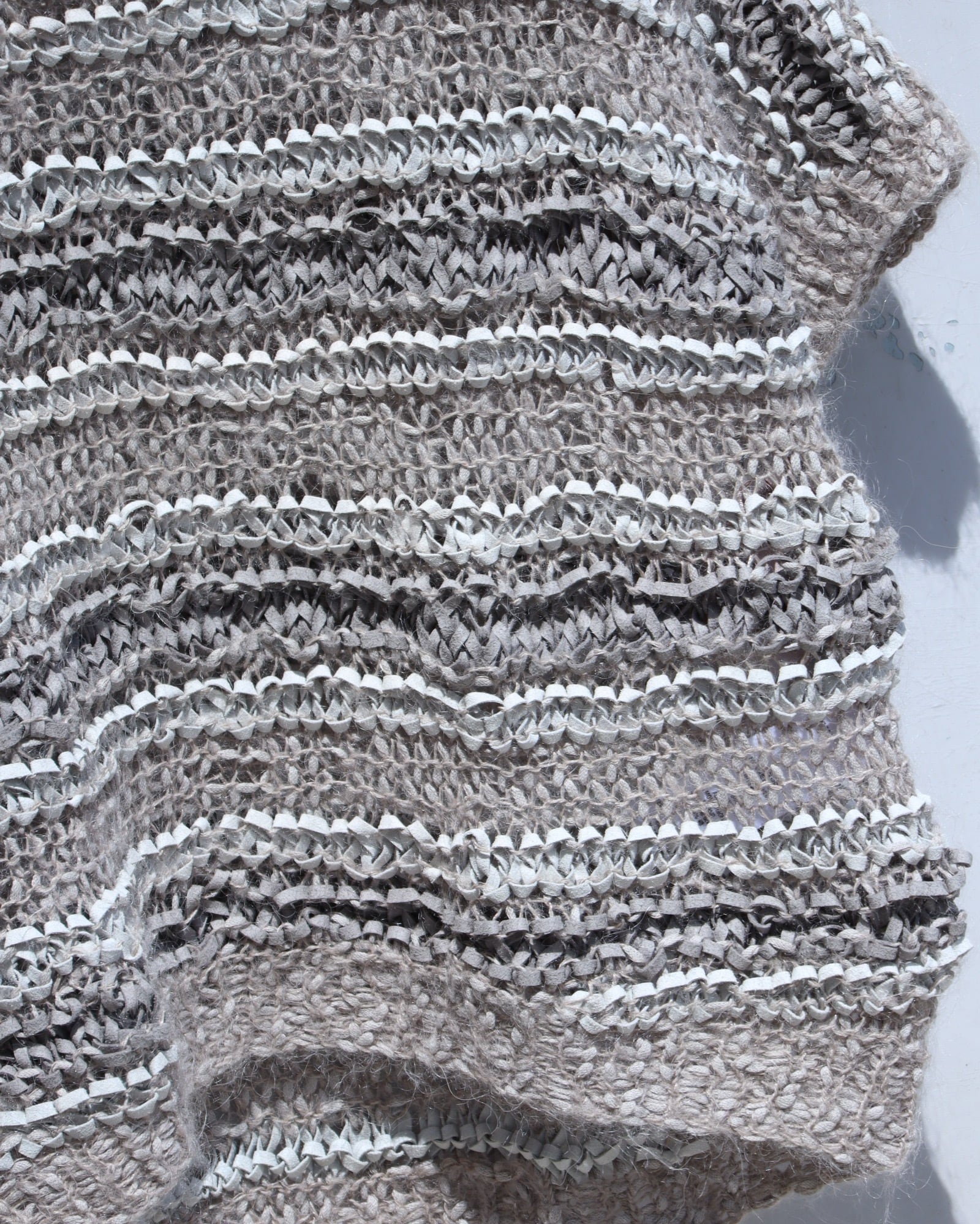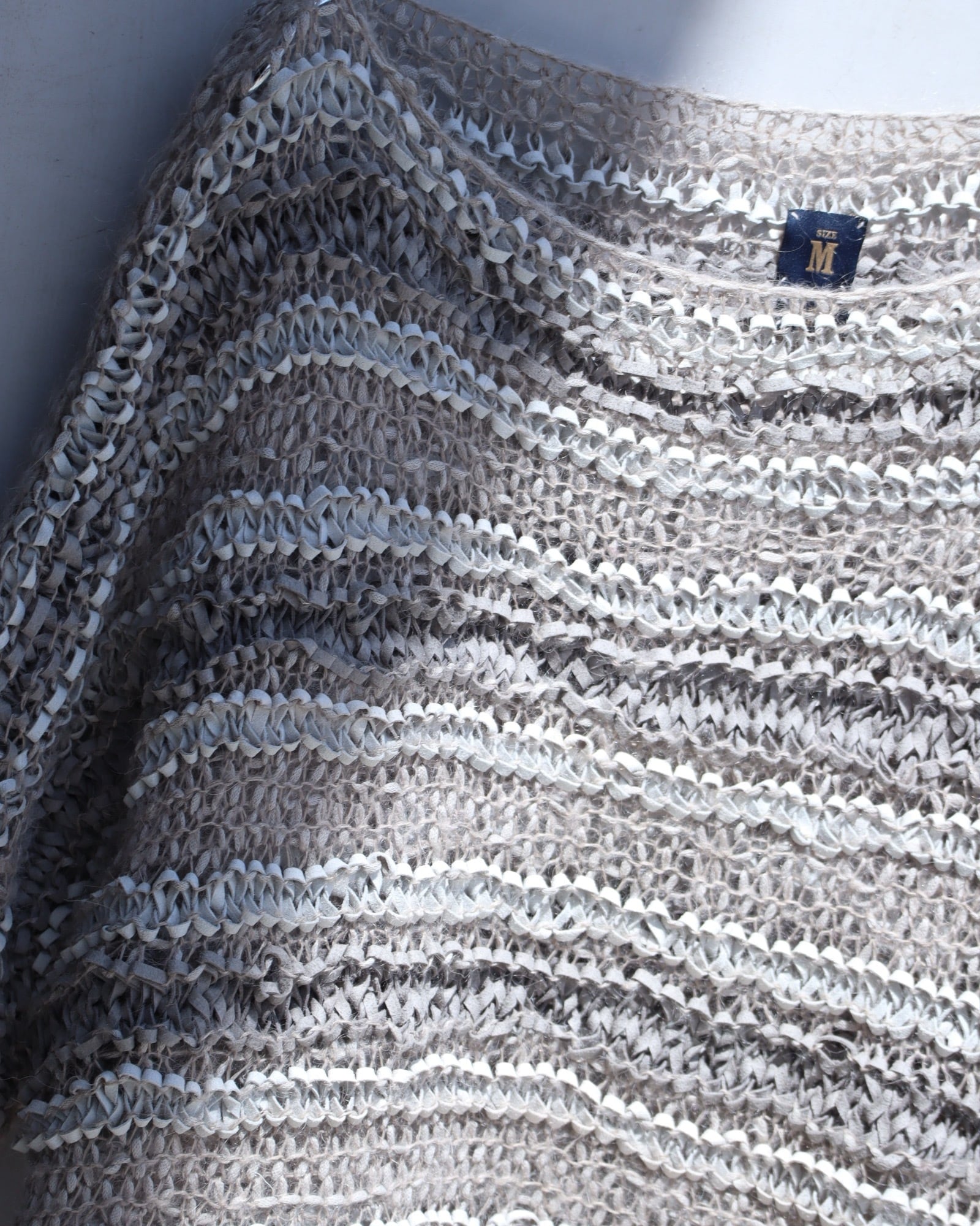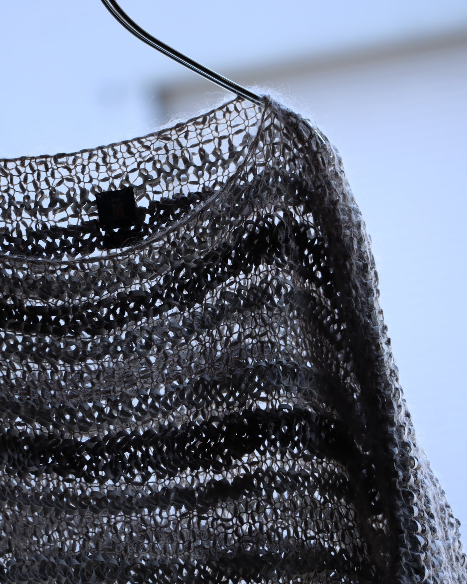 ▼Item / suede leather × mohair mesh nuance color mokemoke knit top
