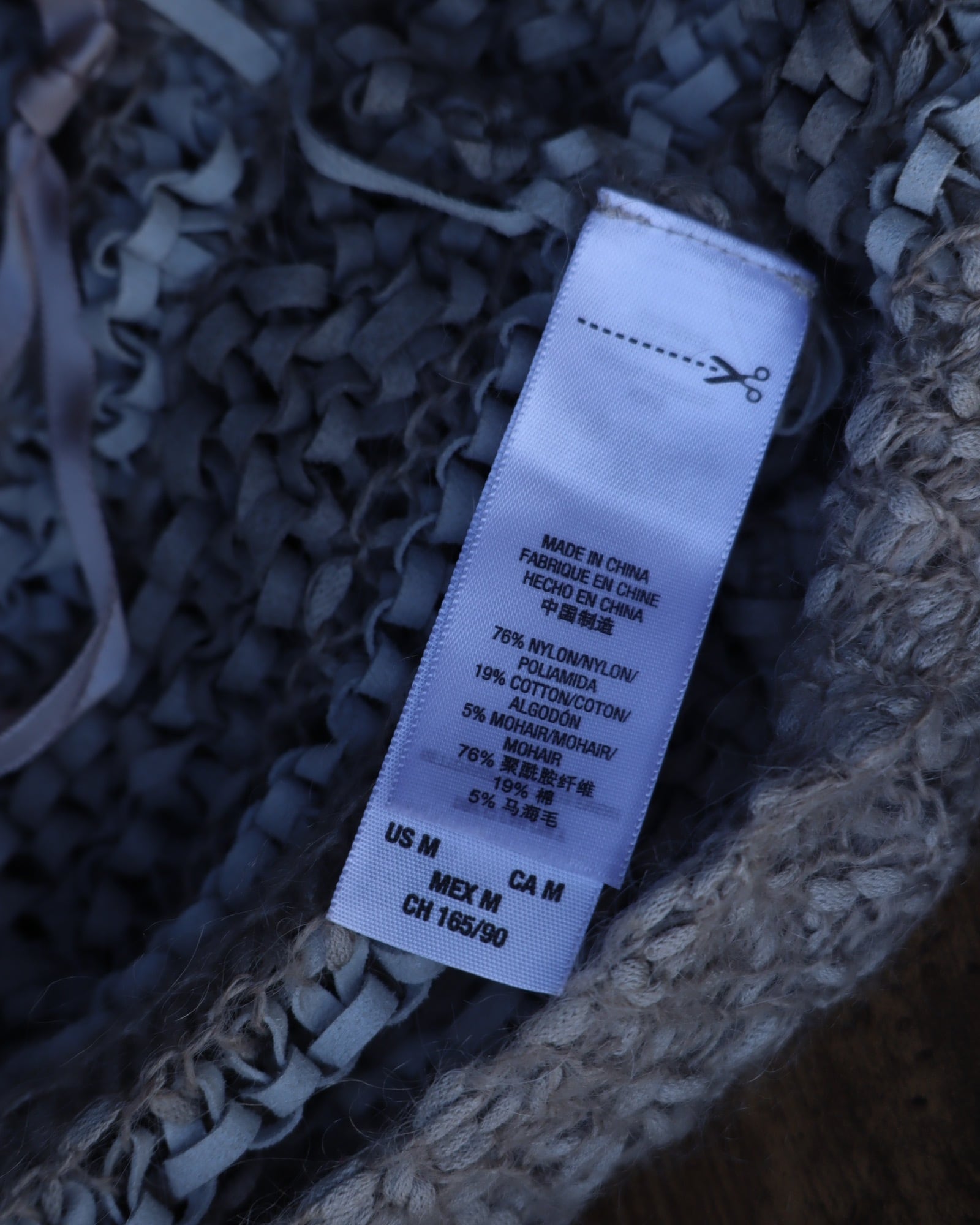 76% nylon 19% cotton 5% mohair