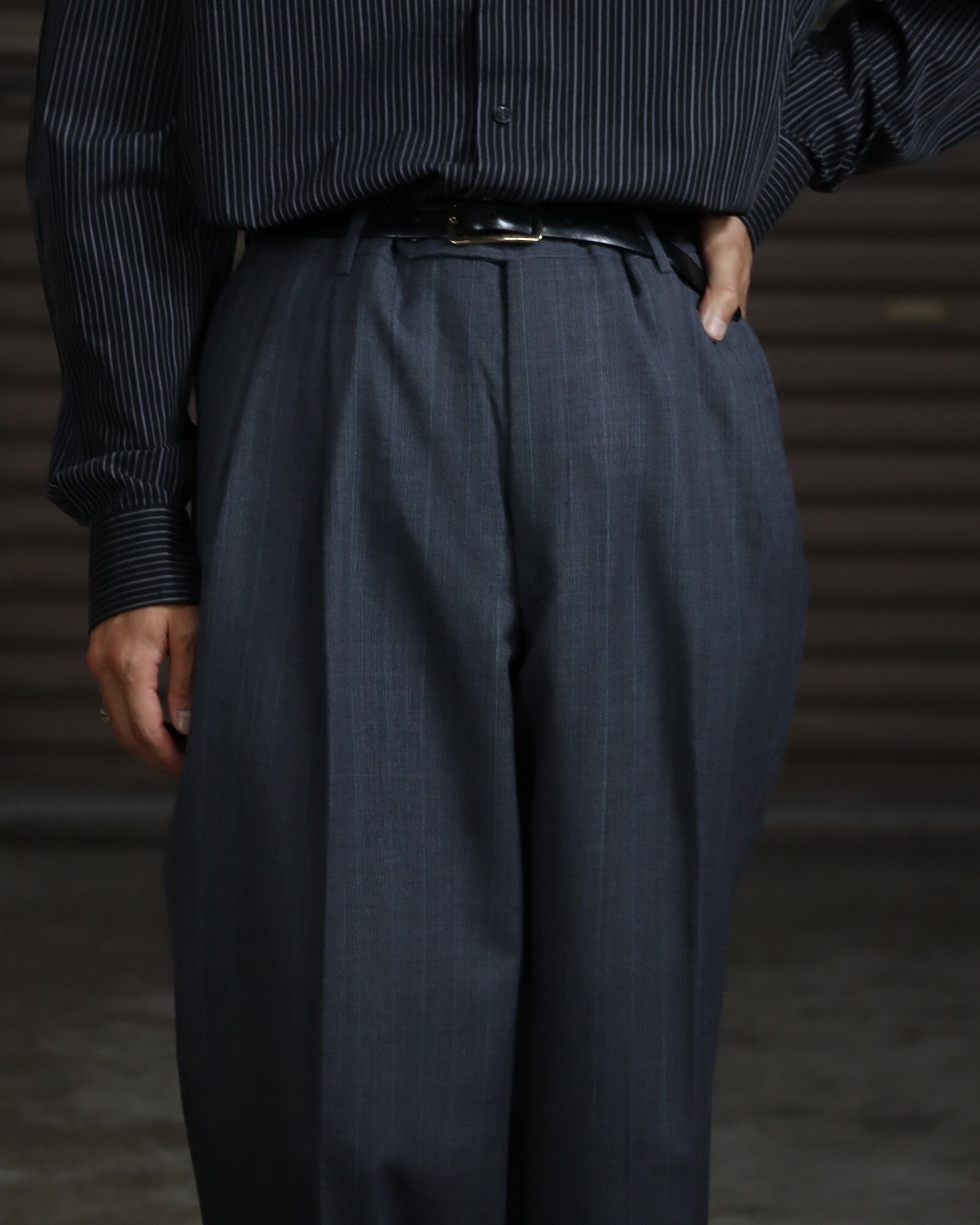 windowpane check 2tuck wide-straight slacks