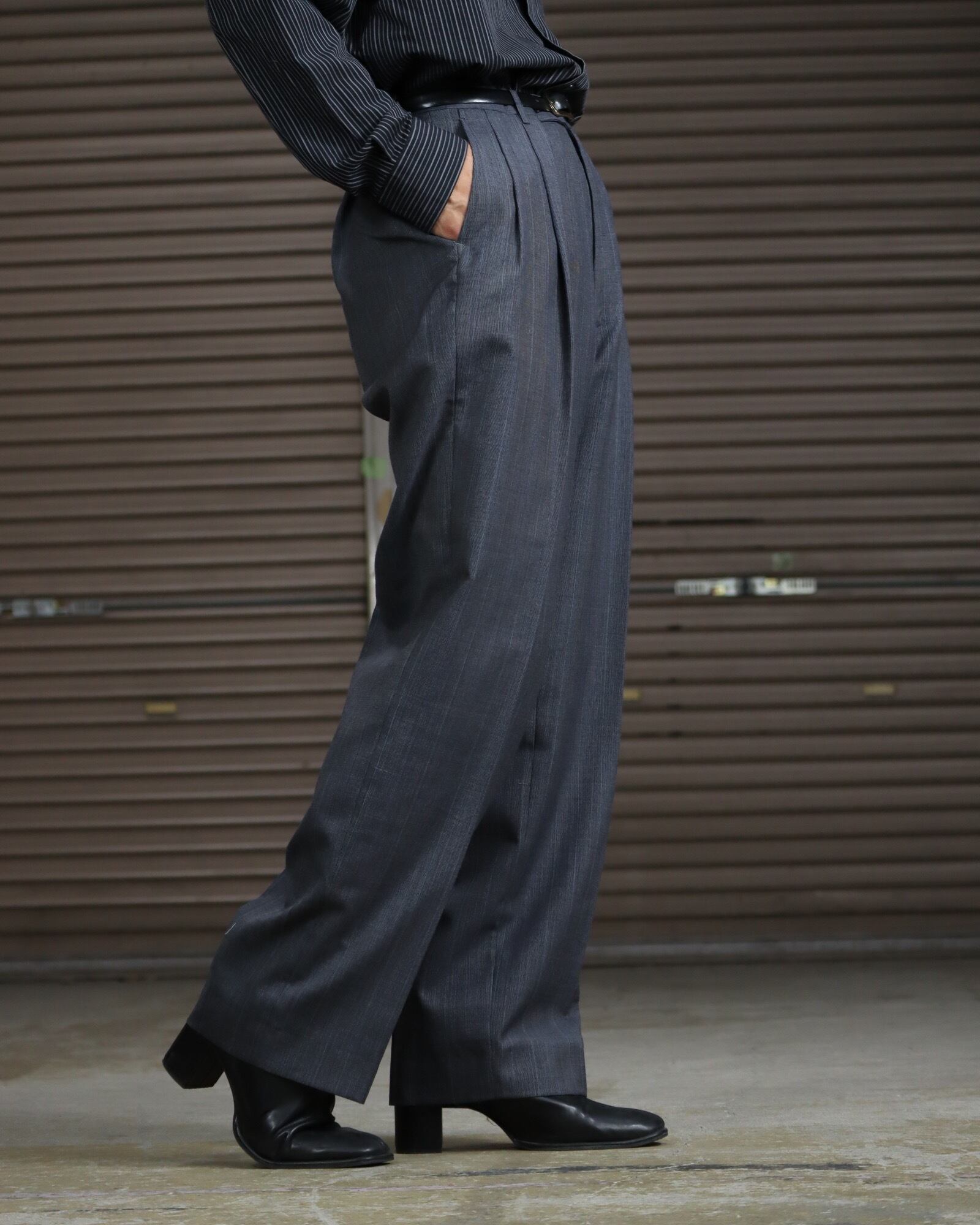 ▼Item / windowpane check 2tuck wide-straight slacks