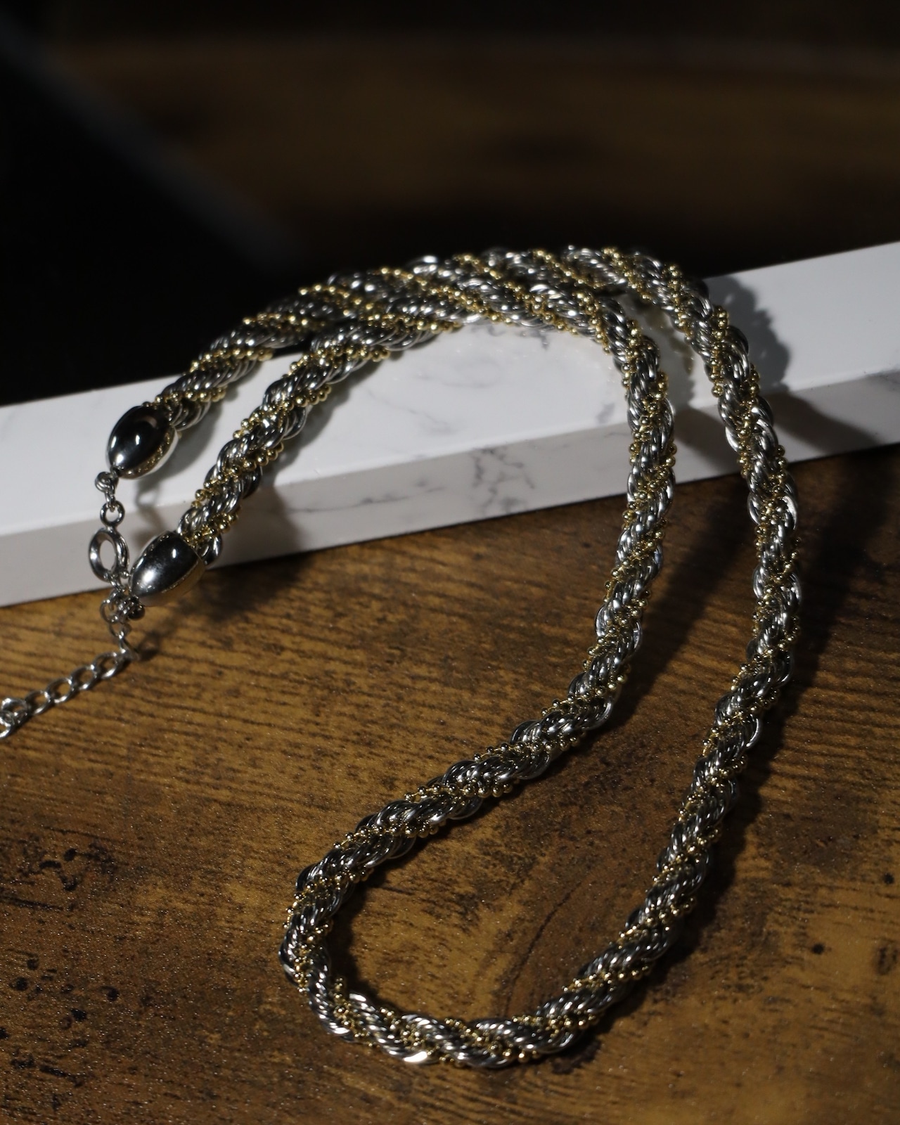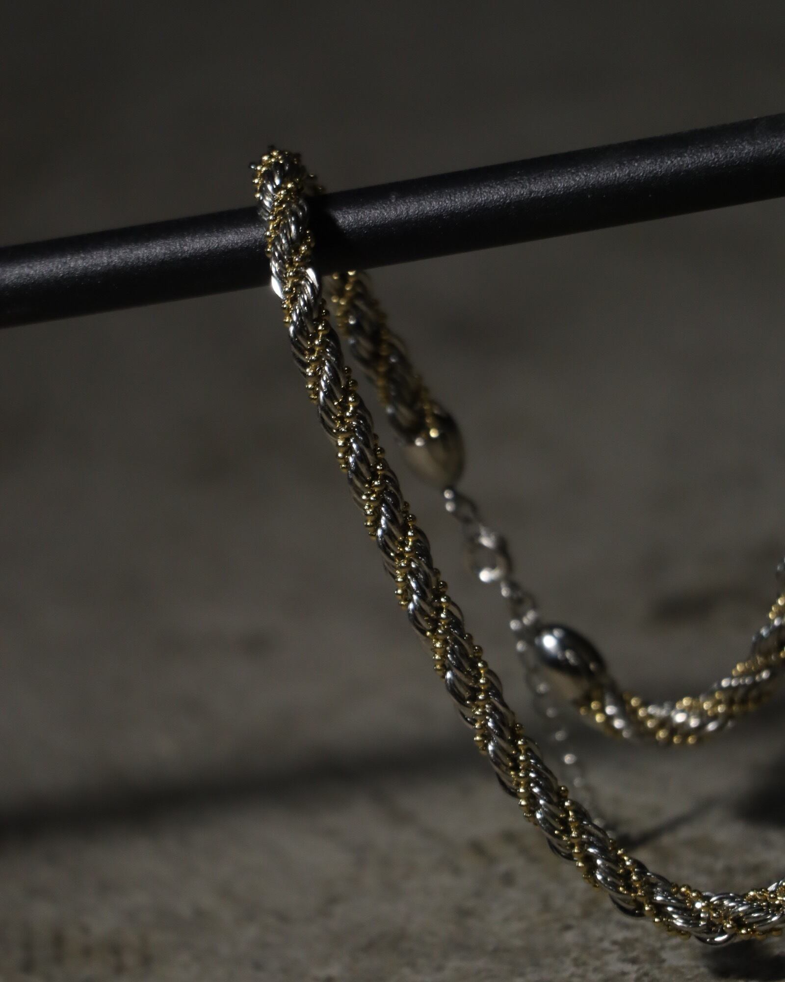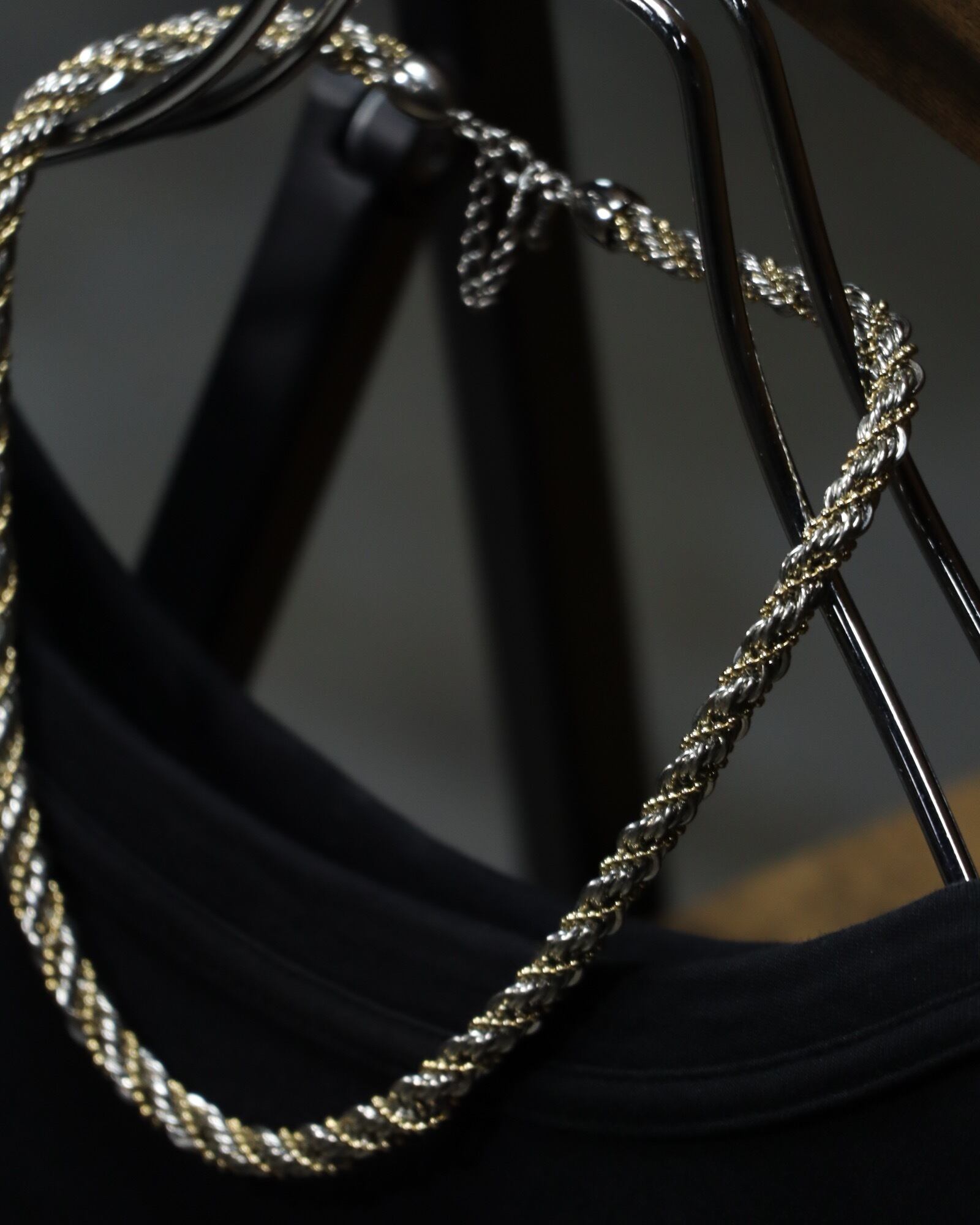 ▼Item / combi screw chain vintage chunky necklace silver×gold