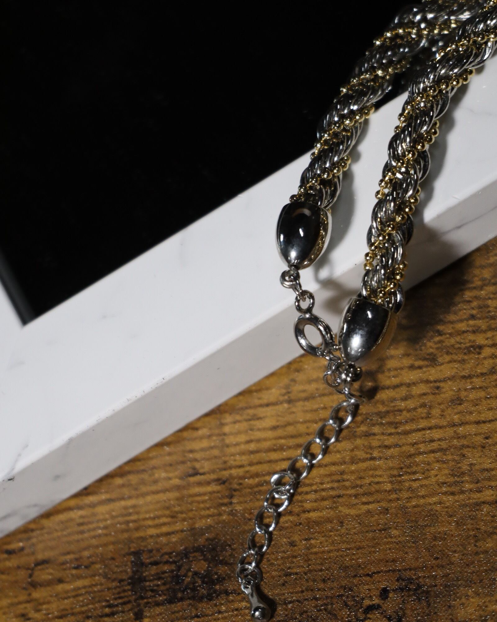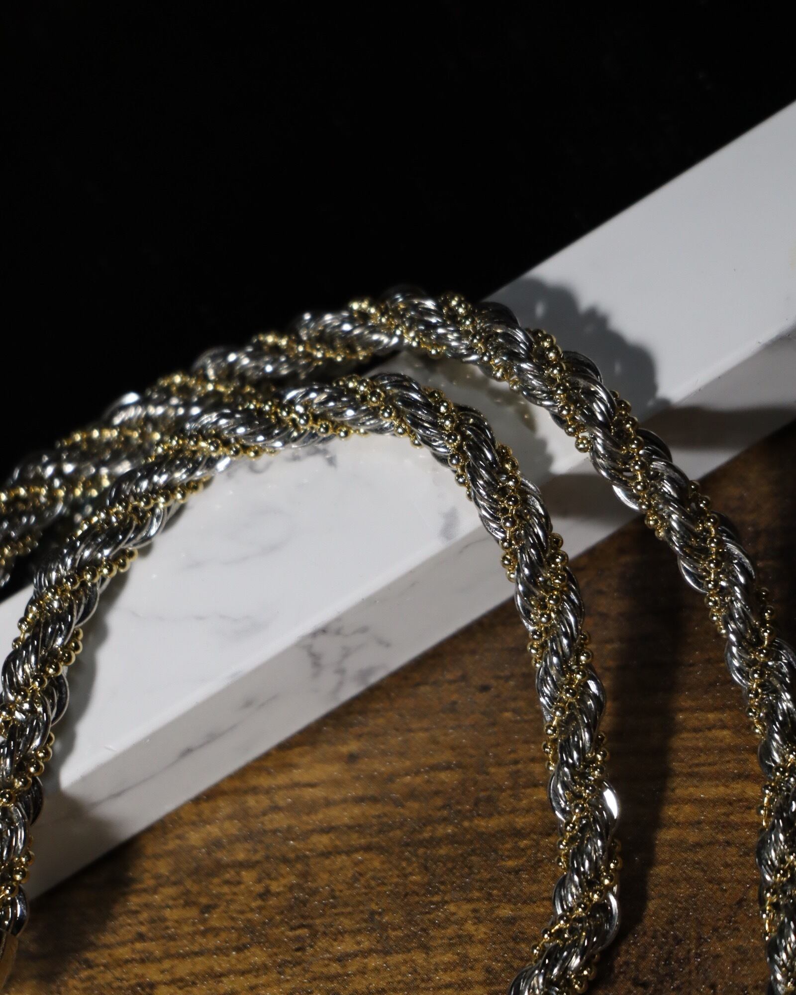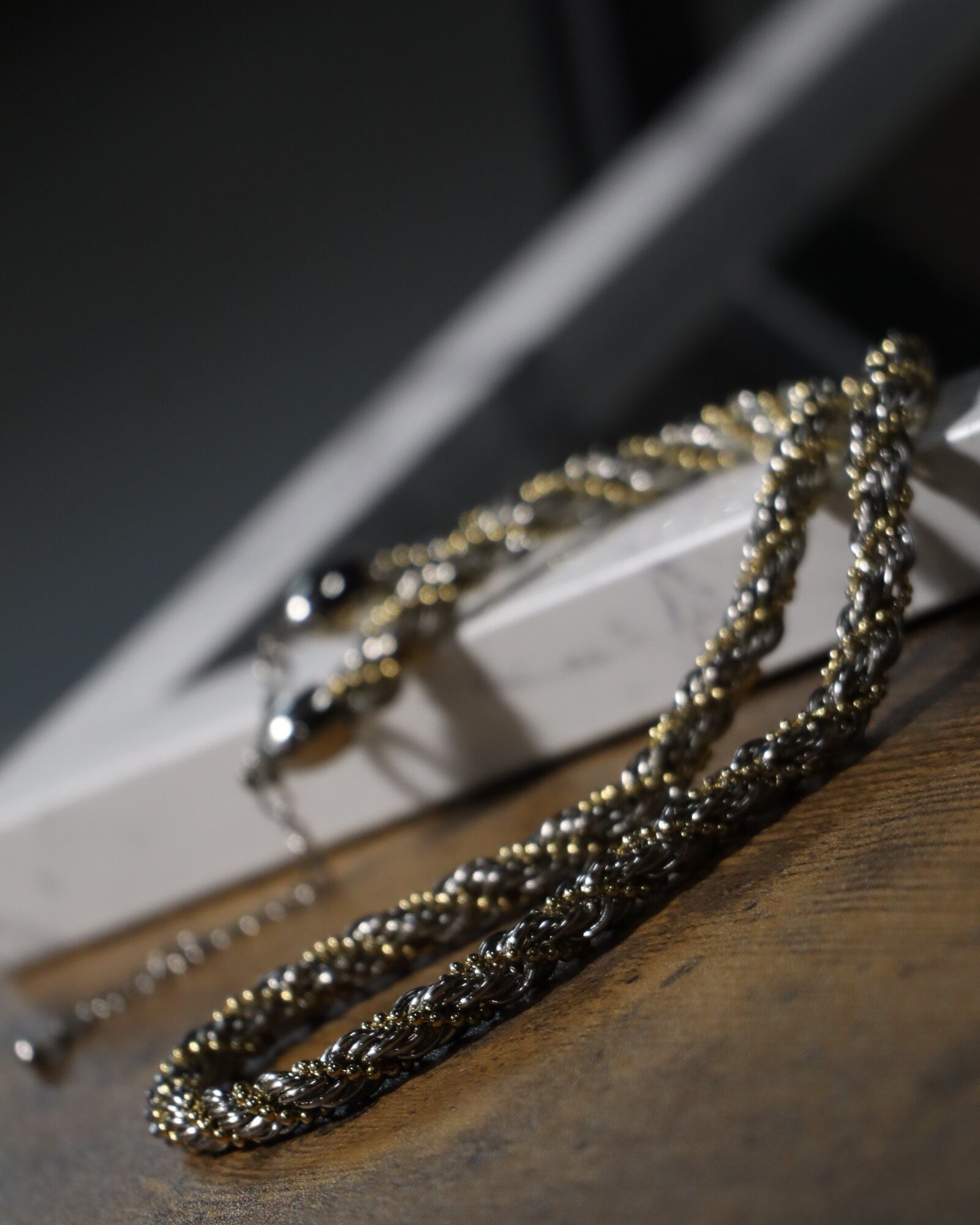 ▼Item / combi screw chain vintage chunky necklace silver×gold