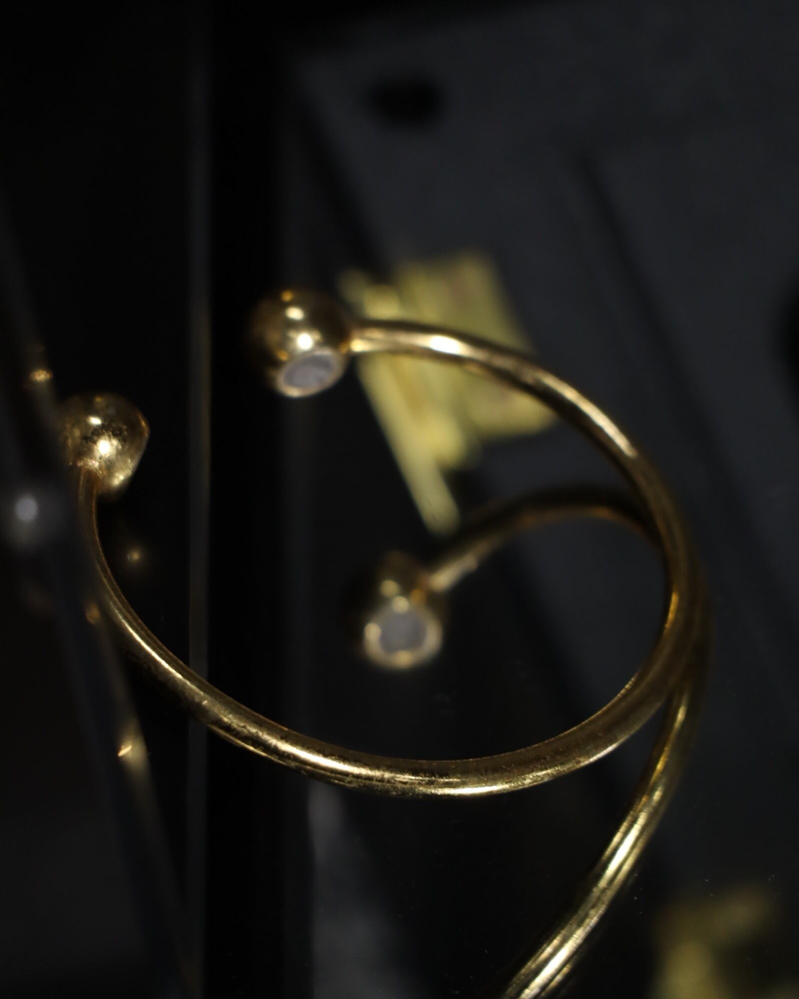 ▼Size / 内周 約15.0㎝(開口部除く) / 開口部 約1.7㎝ / 幅 約3-10㎜ / 重量 約23g