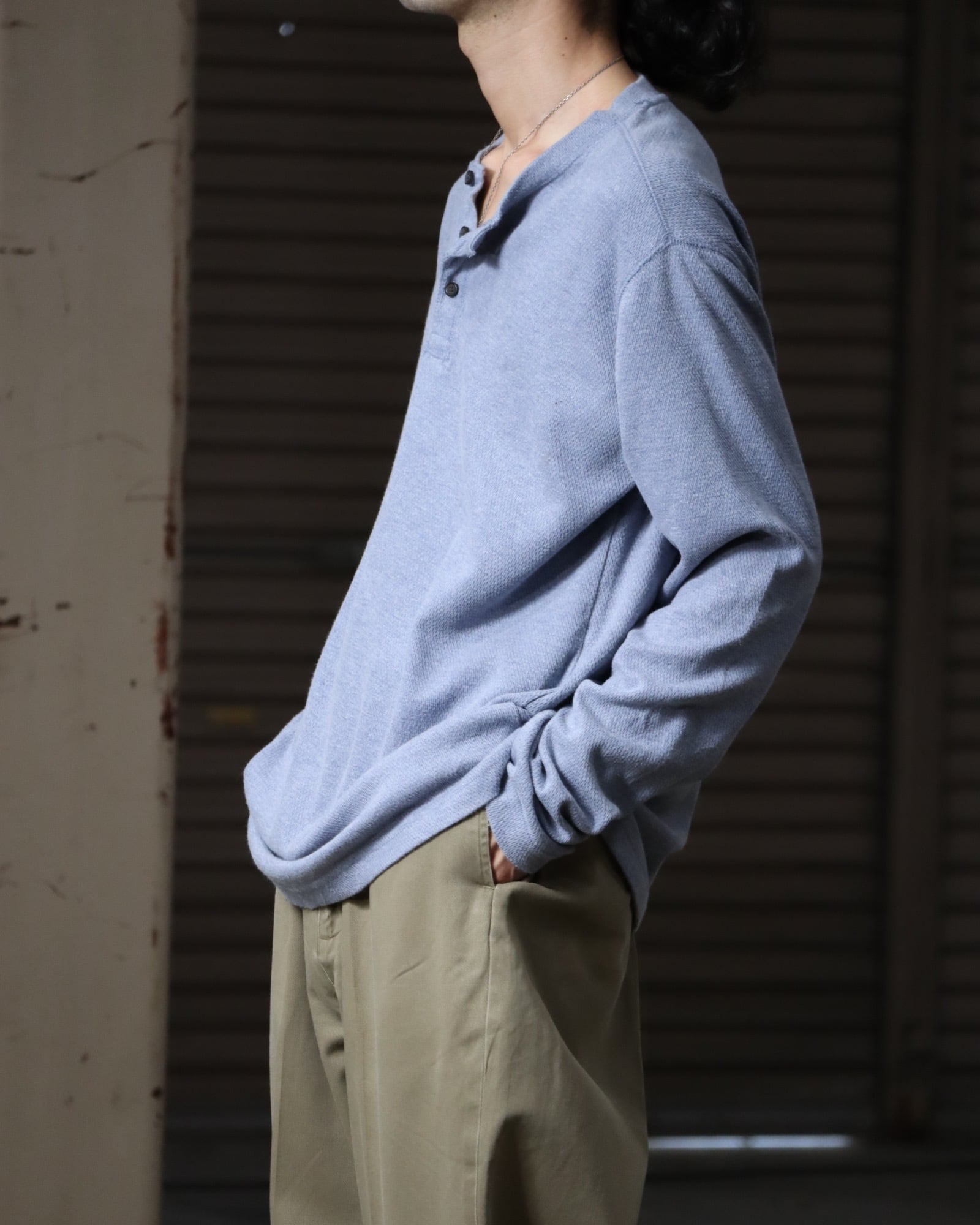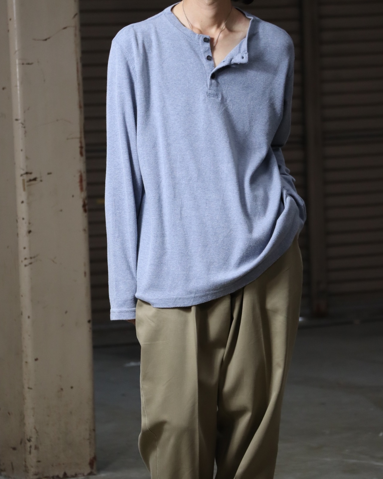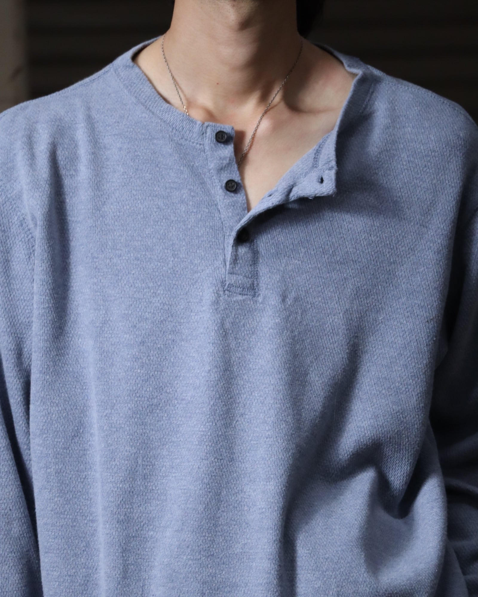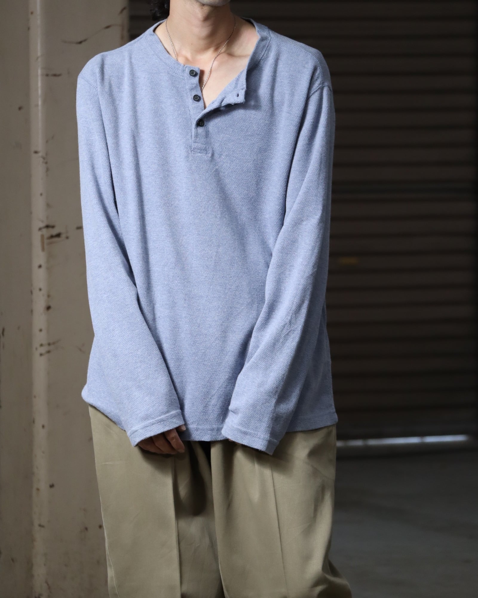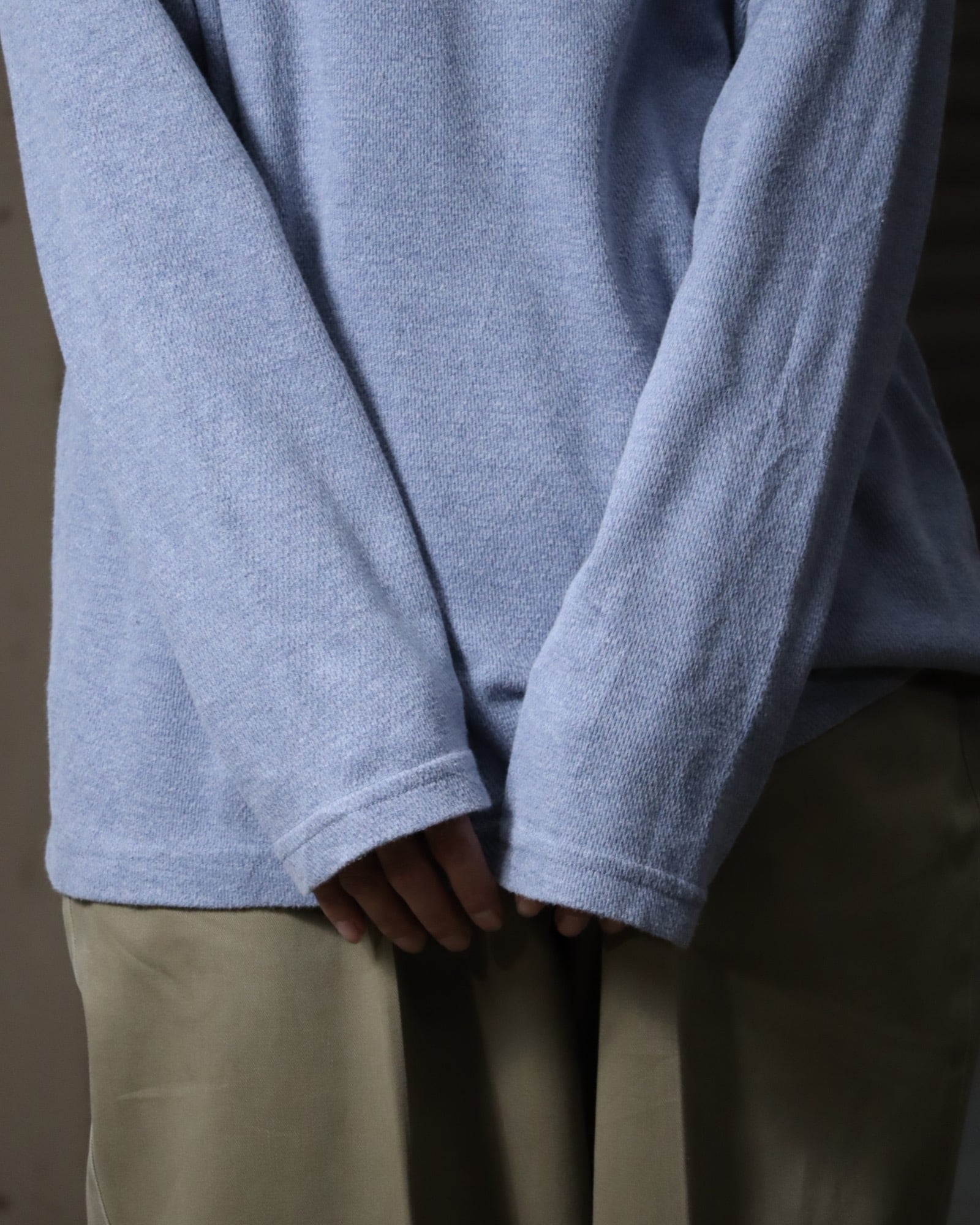 ▼Item / henry-neck oversized l/s thermal top pale blue