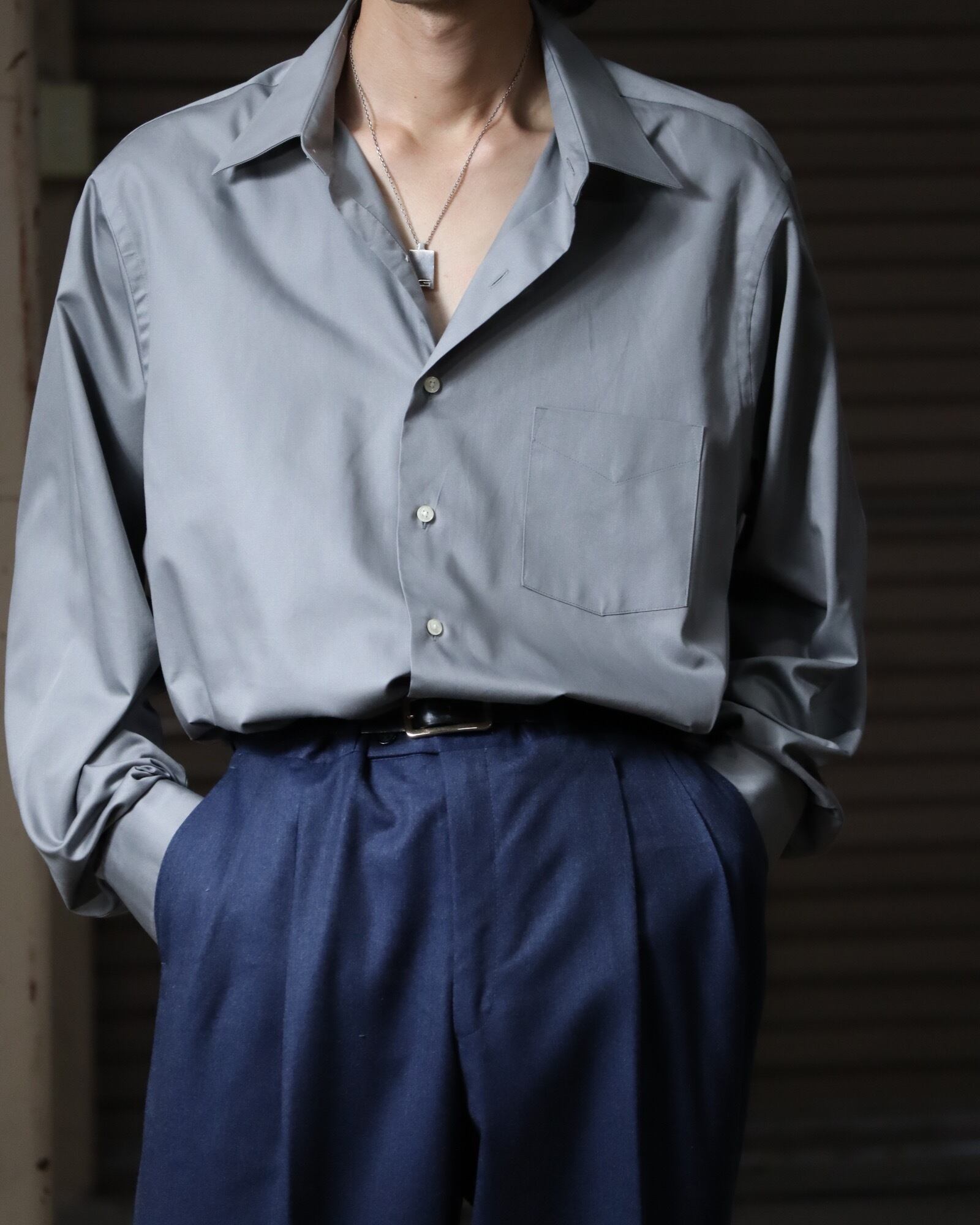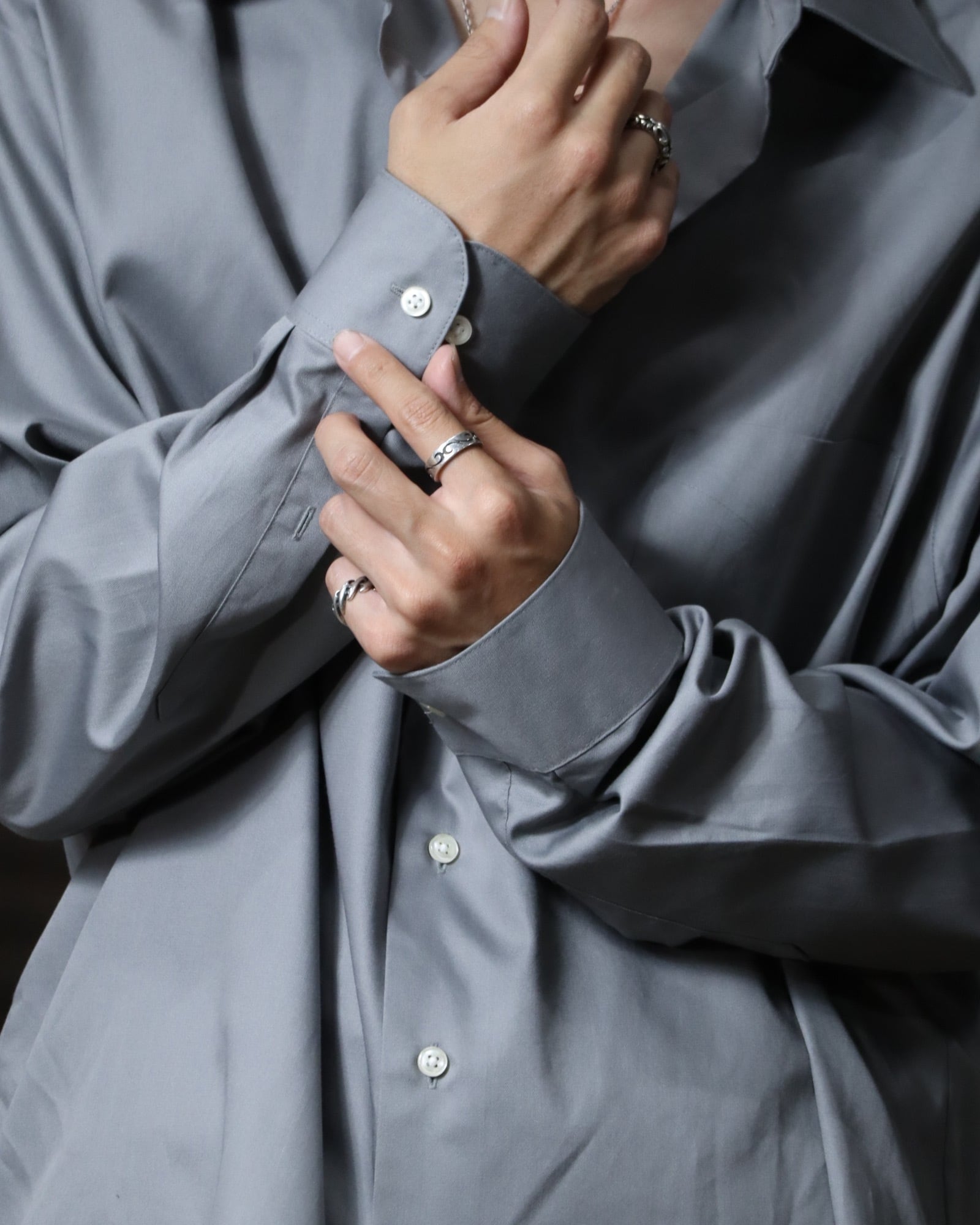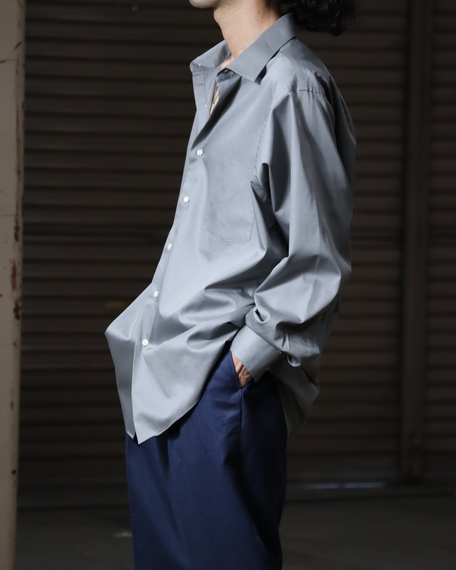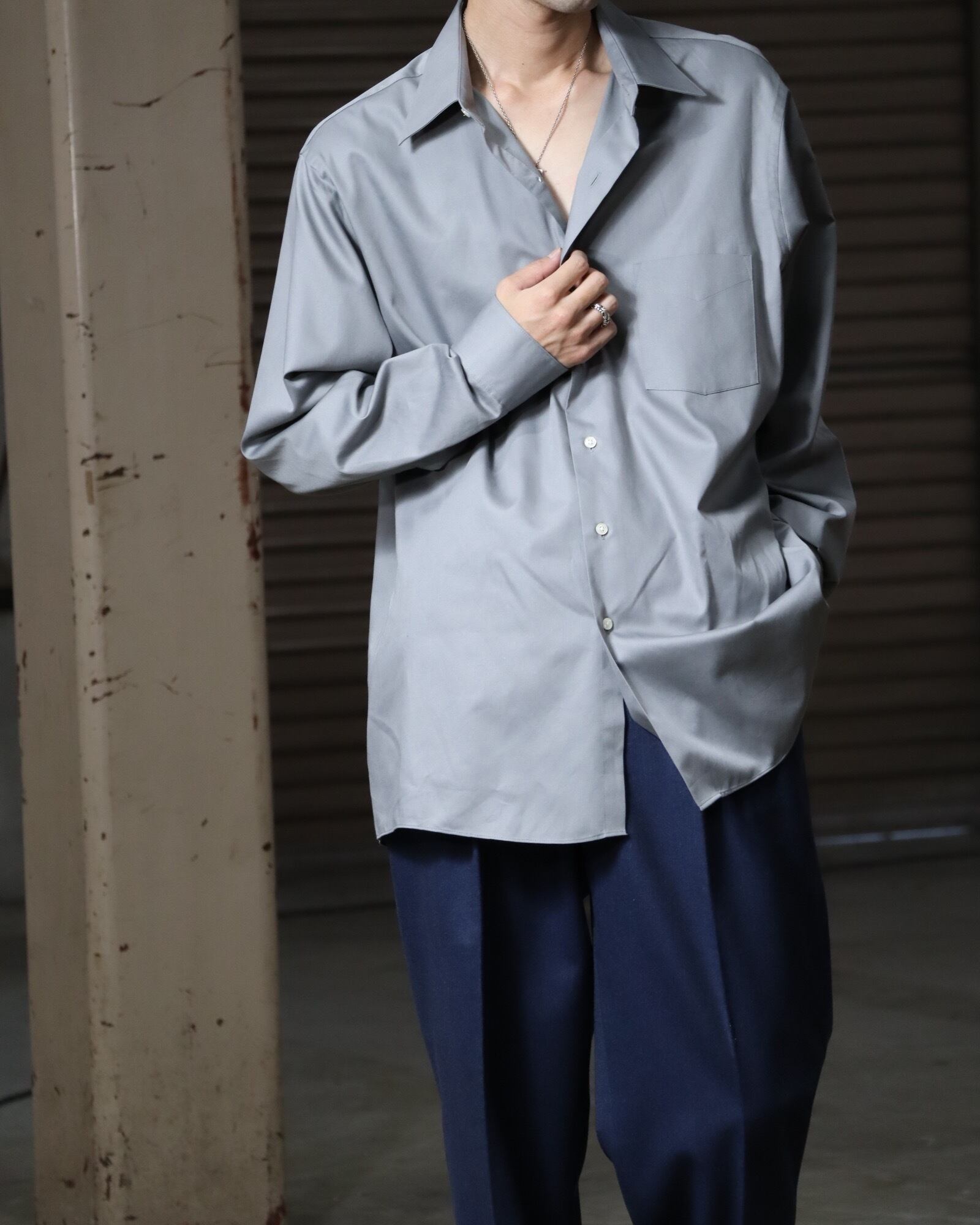 ▼Item / 1990s cotton satin oversized l/s shirt silver color