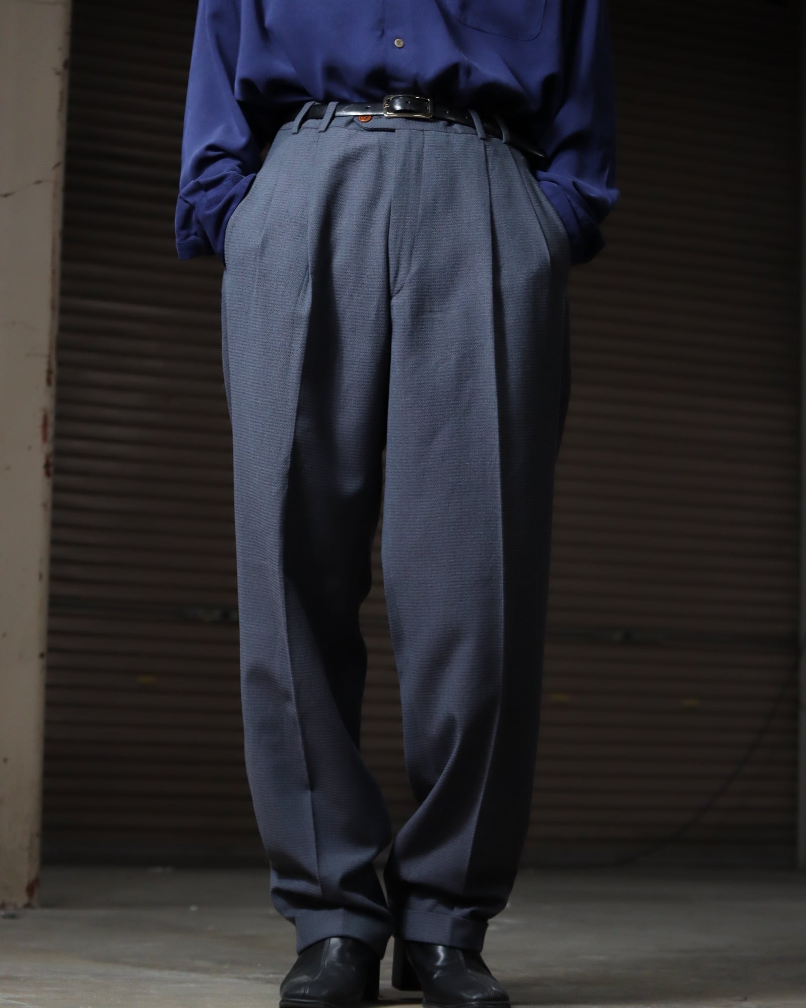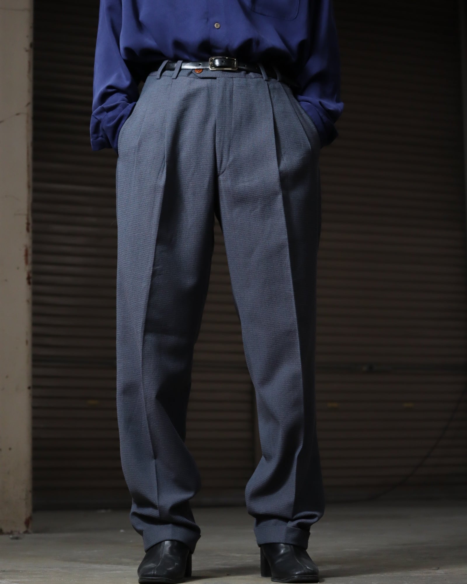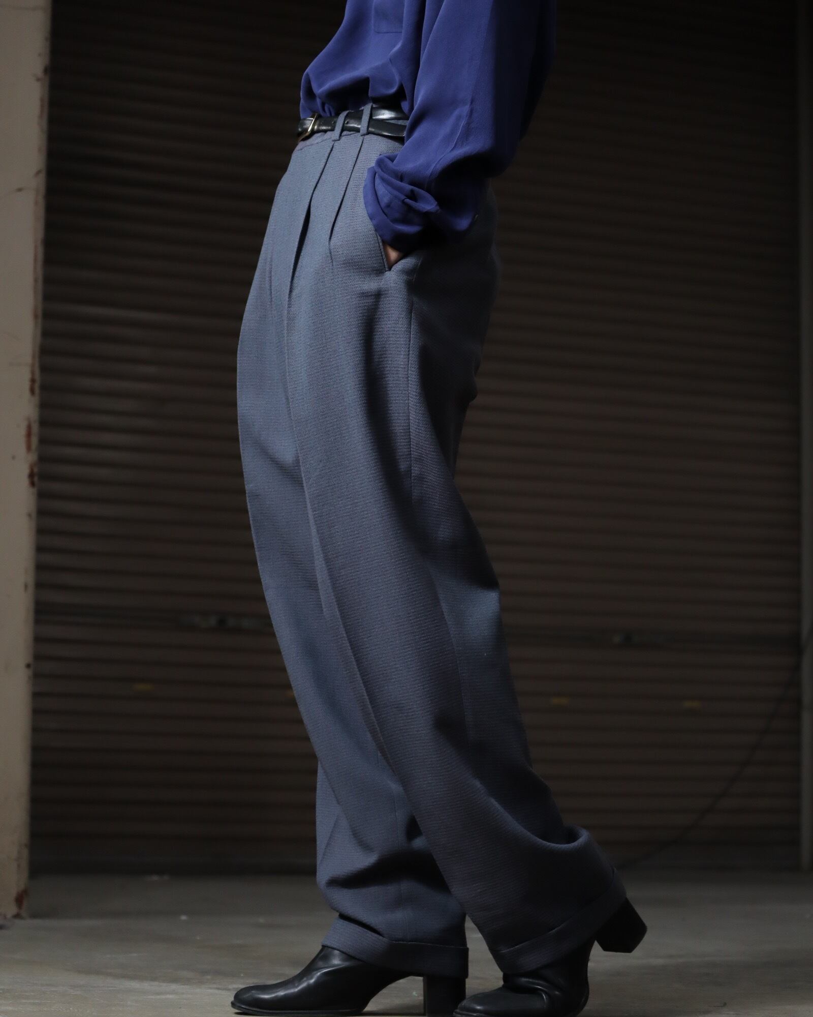 ▼Item / Euro, art pique wool blend 2tuck slacks made in Italy