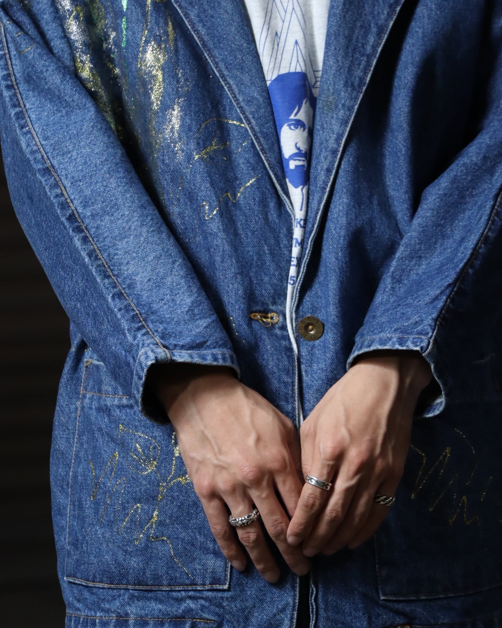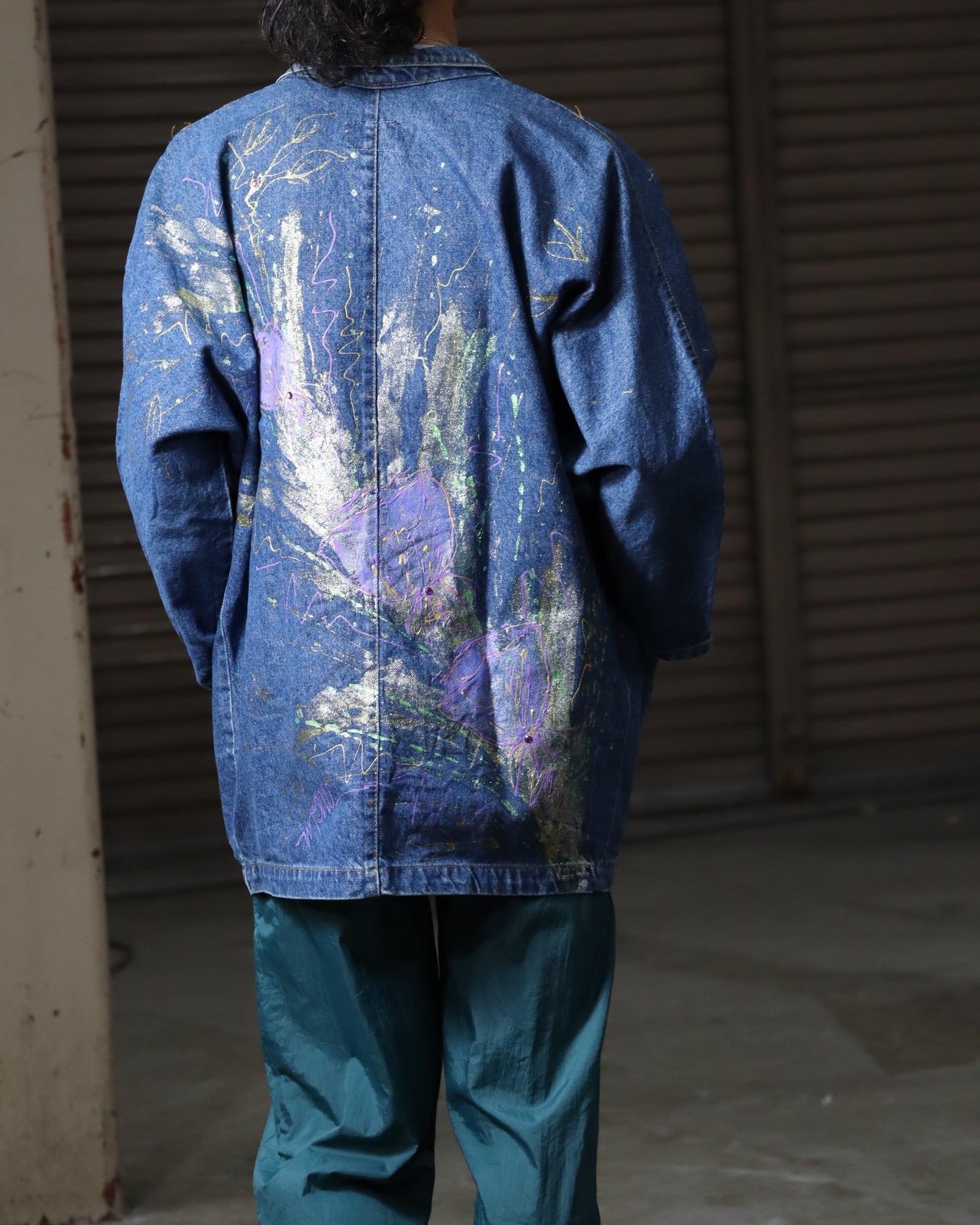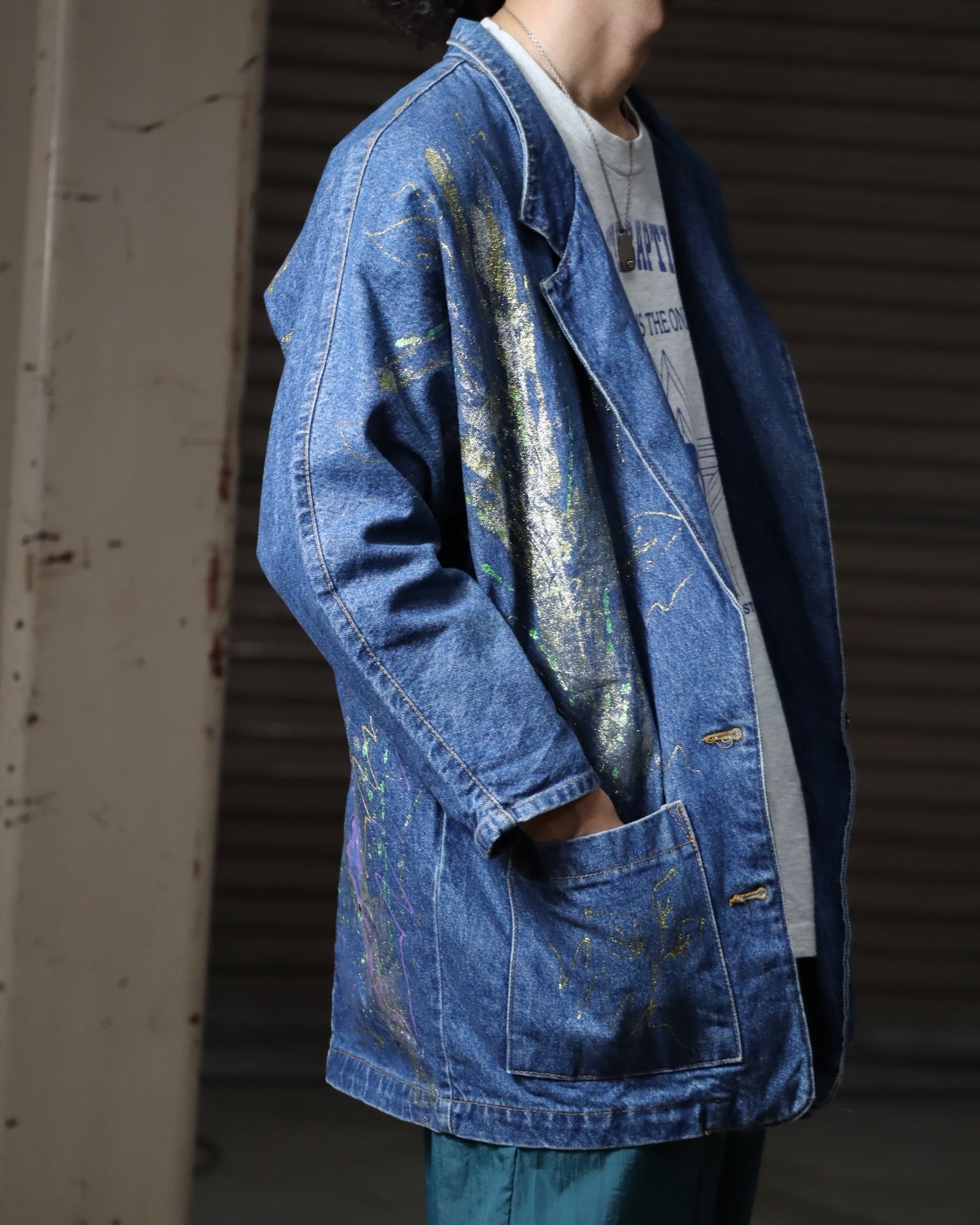 ▼Item / lame paint dolman sleeve denim coverall jacket