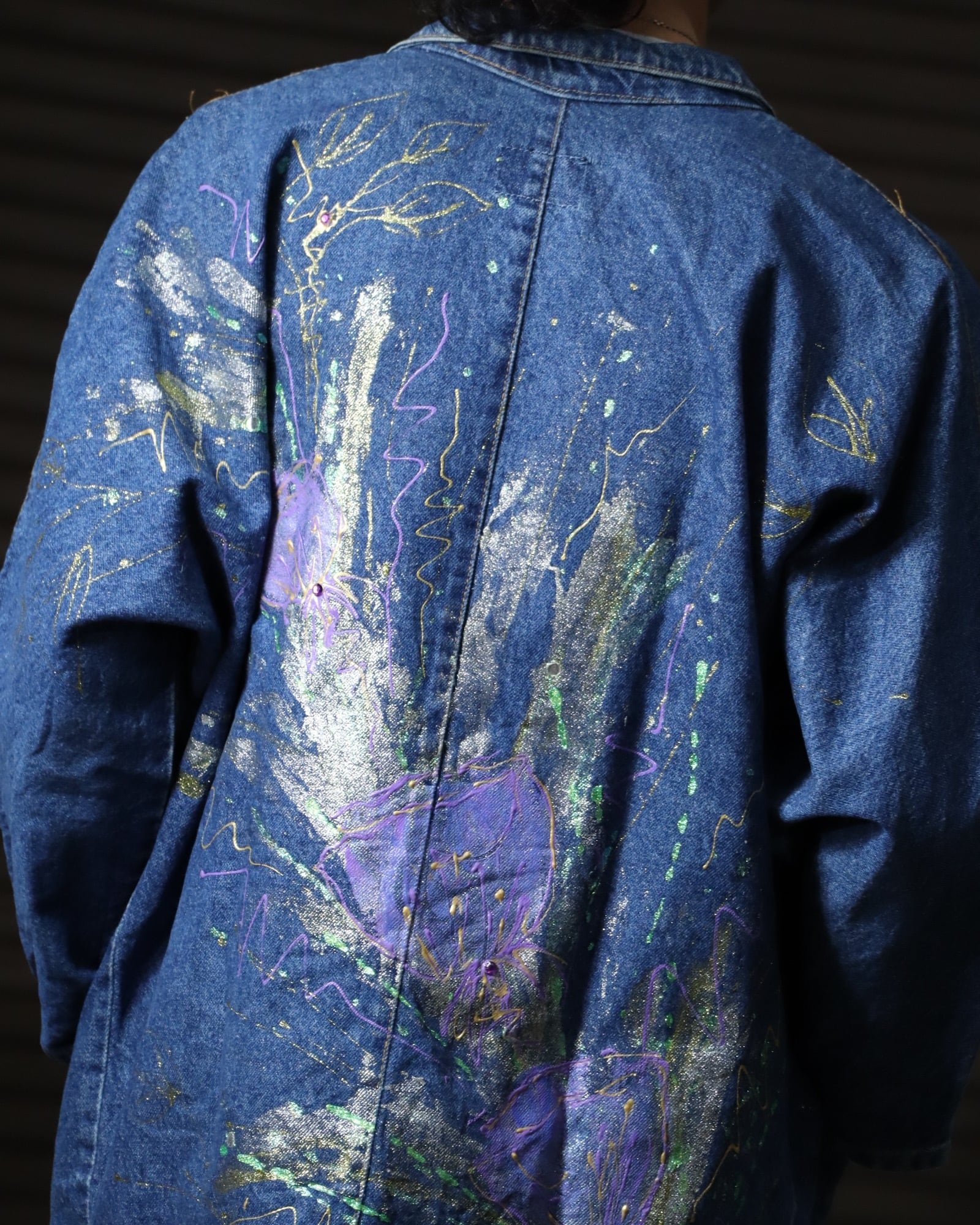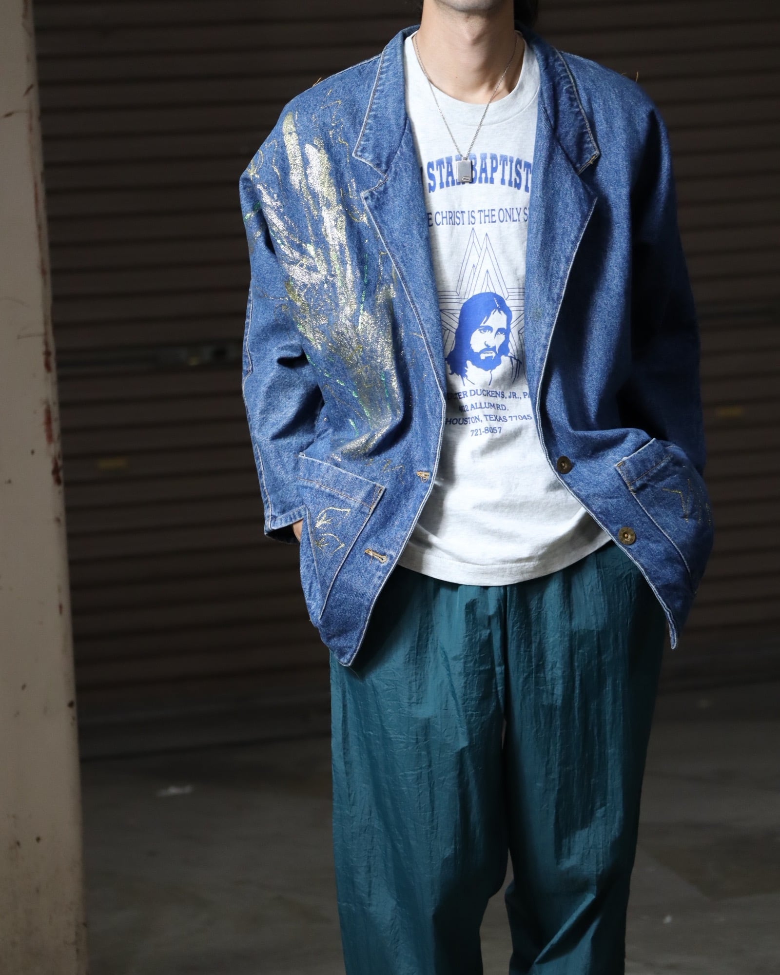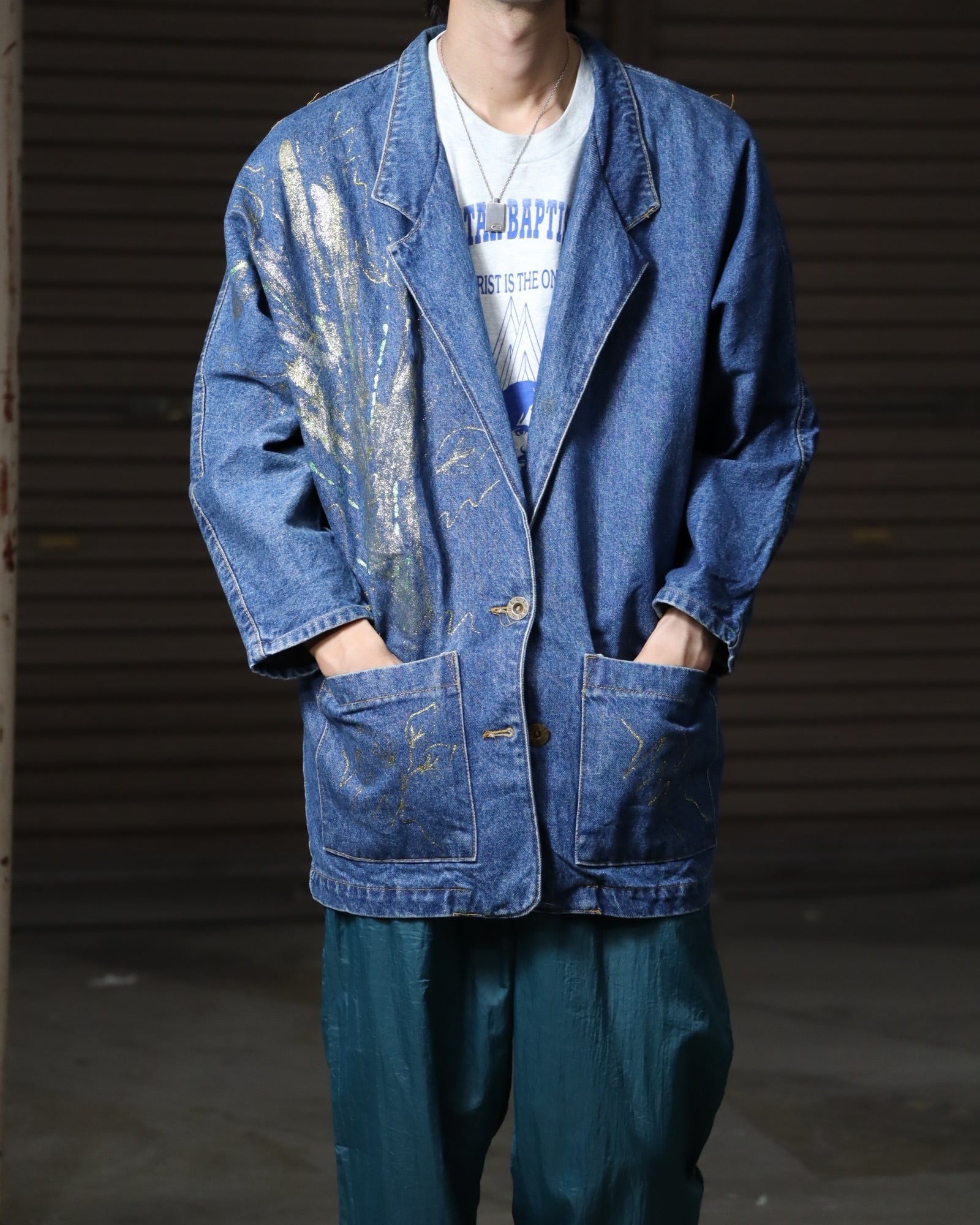 ▼Item / lame paint dolman sleeve denim coverall jacket