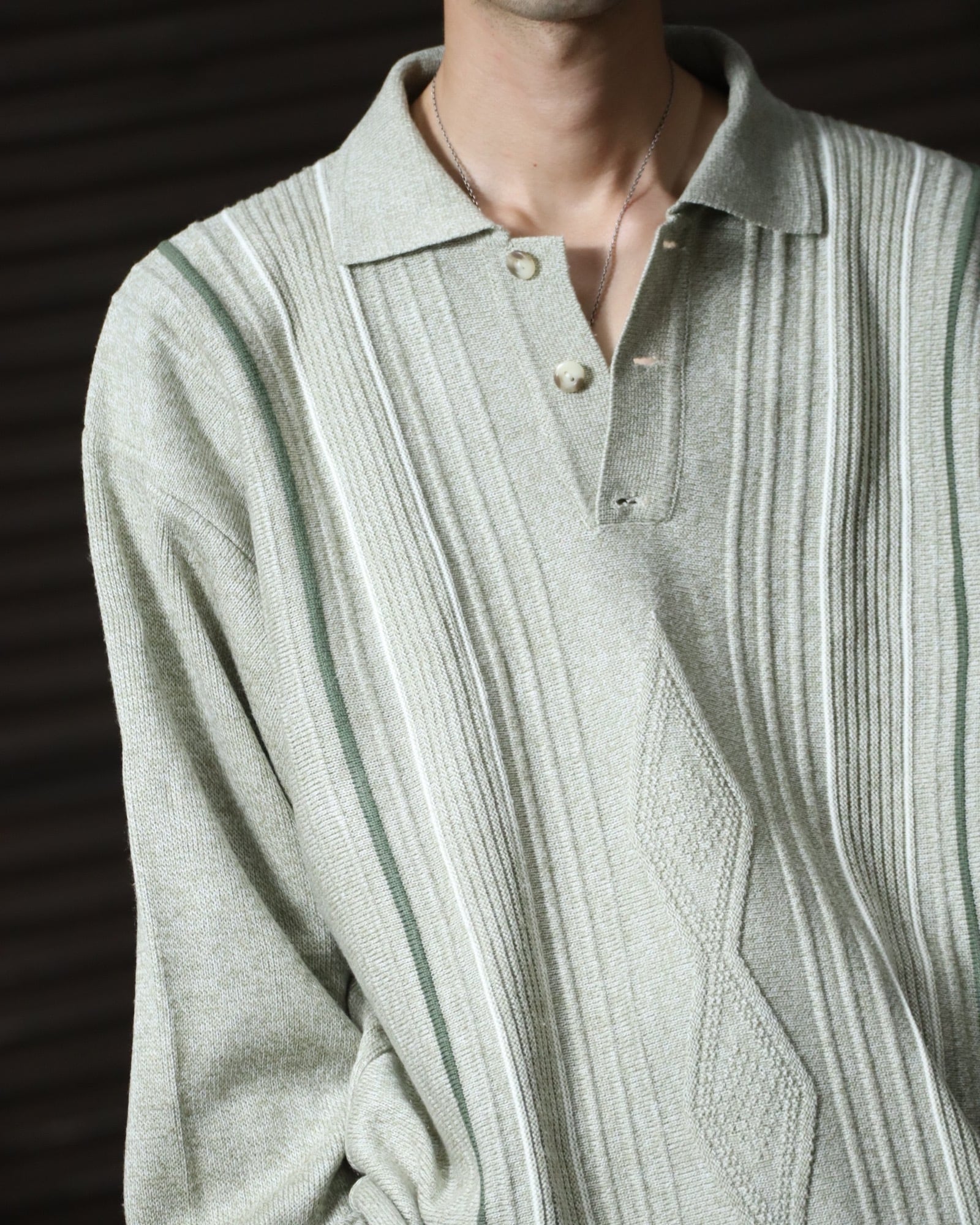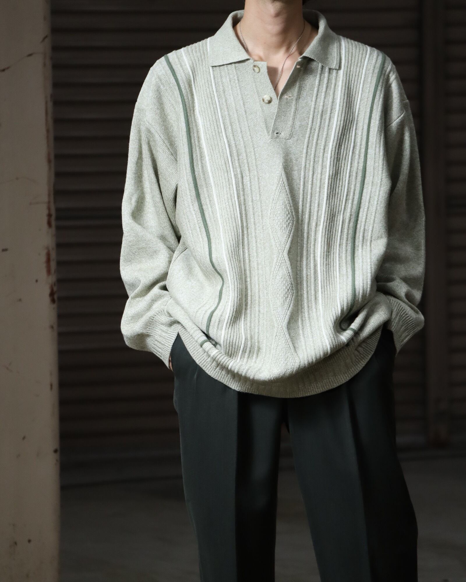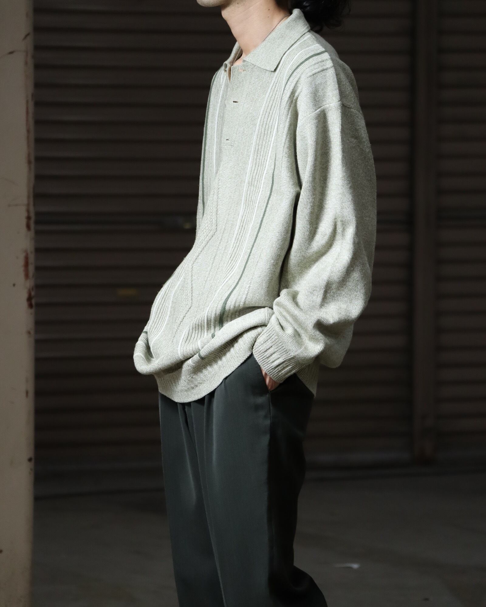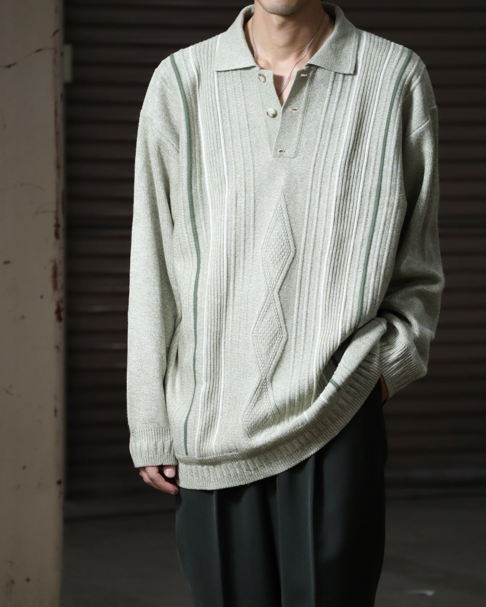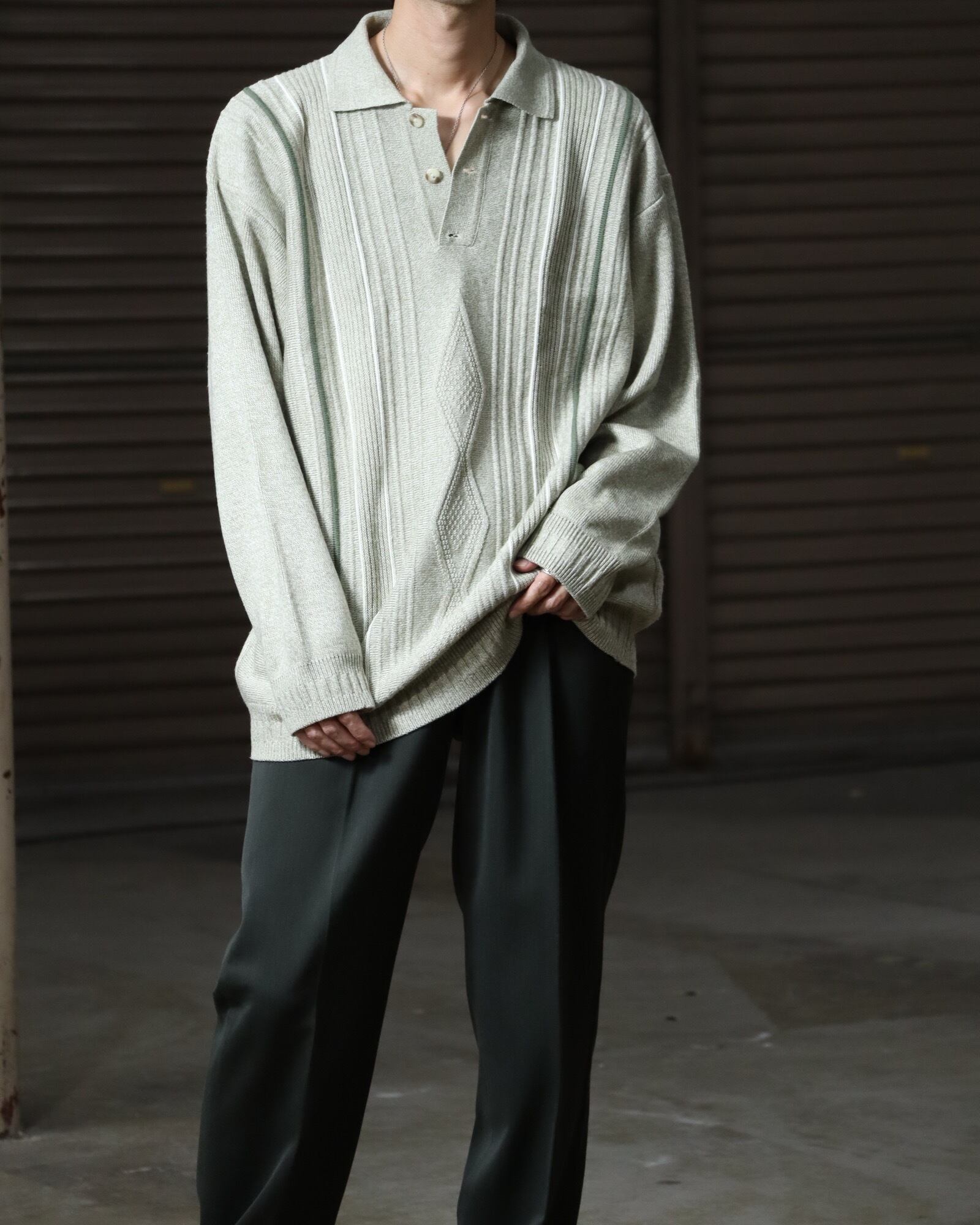▼Item / 3D jacquard design oversized knit polo pale khaki