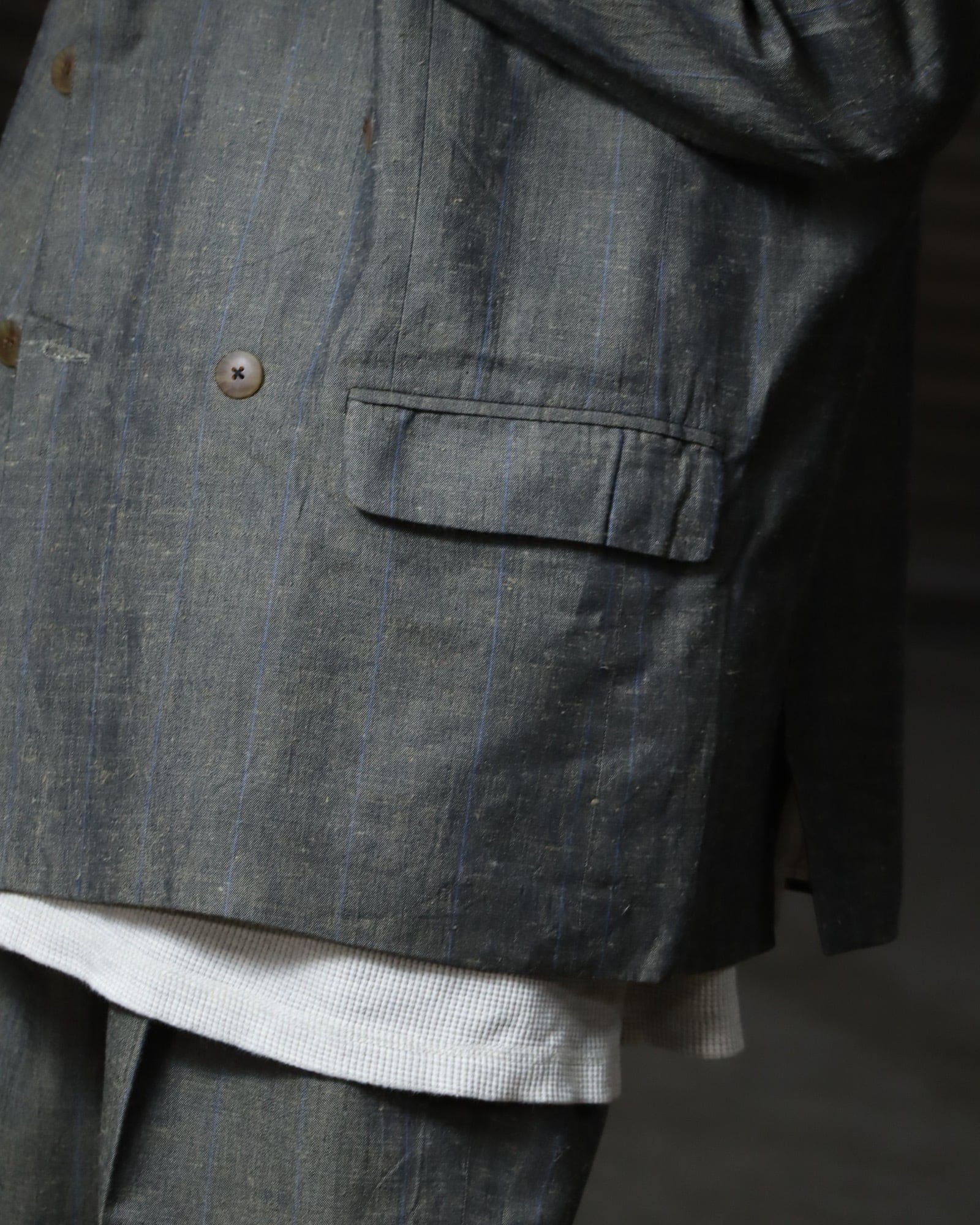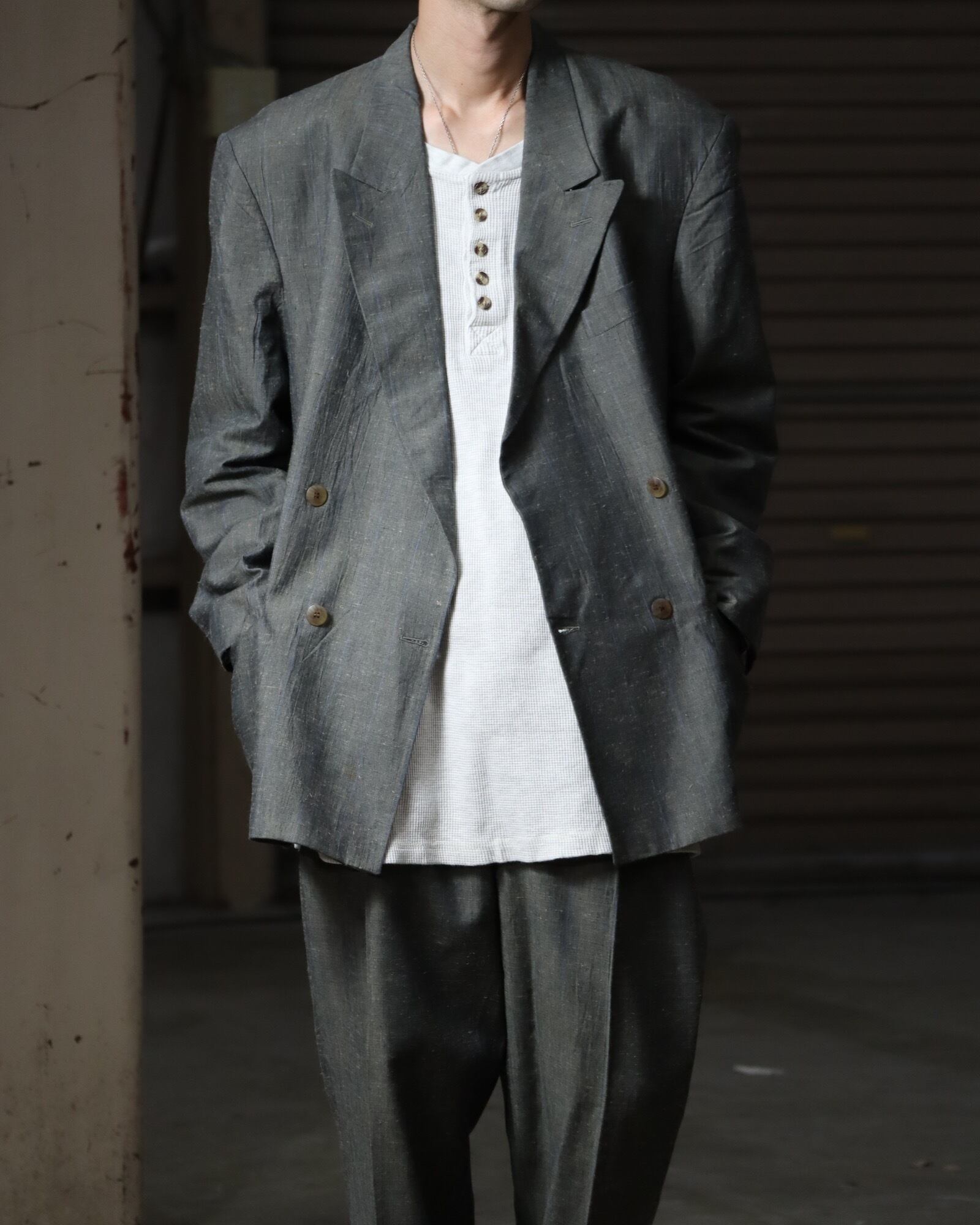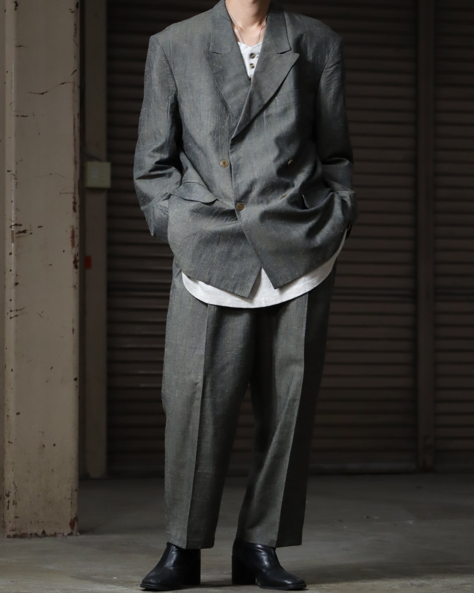 2piece set up double breasted × 2tuck slacks linen blend, nep