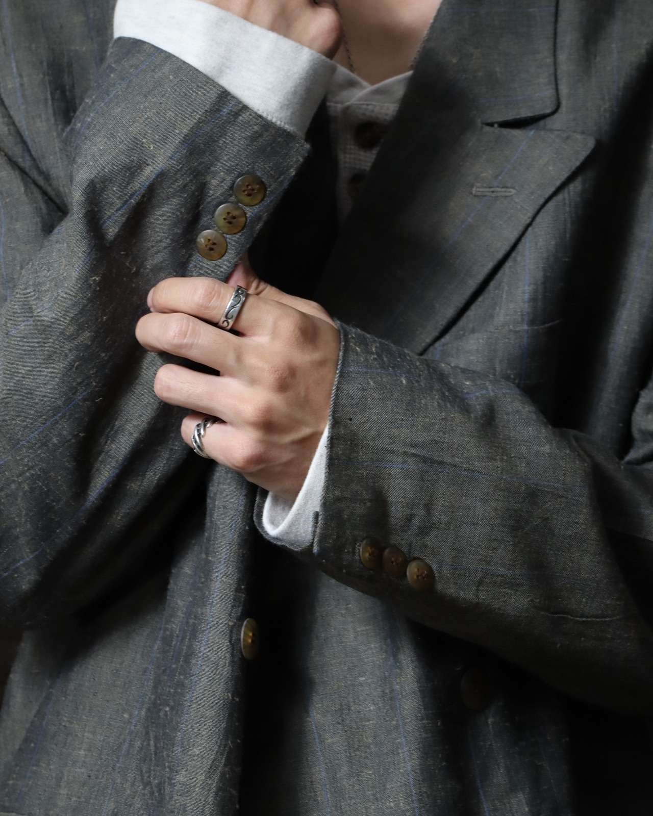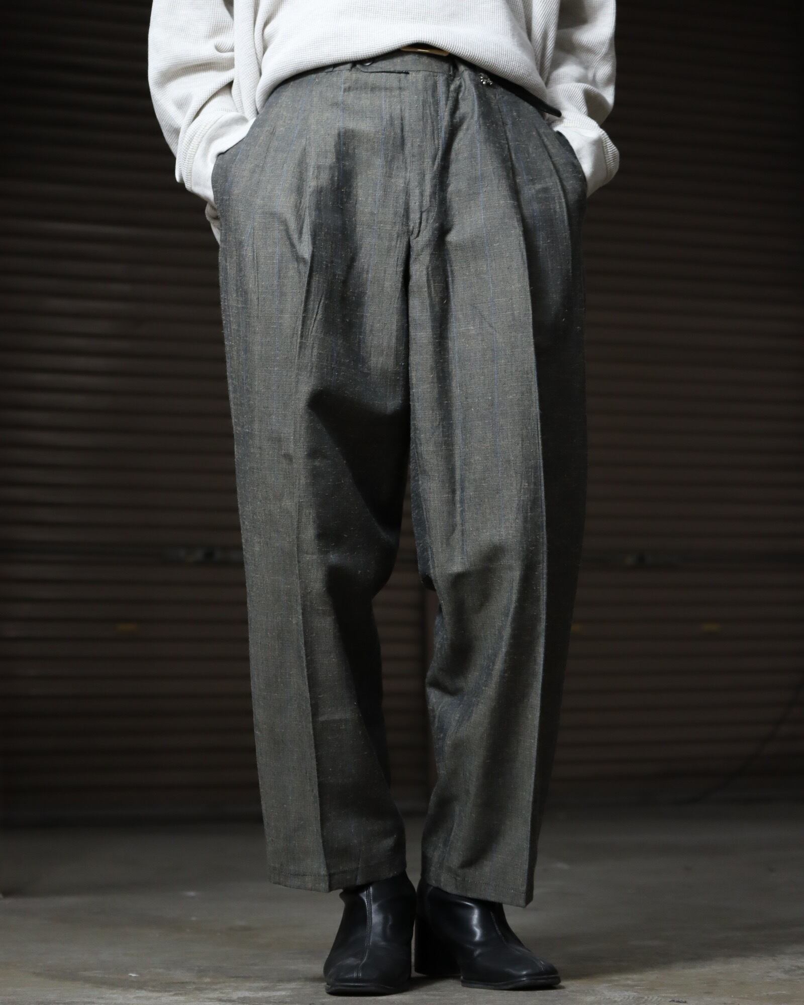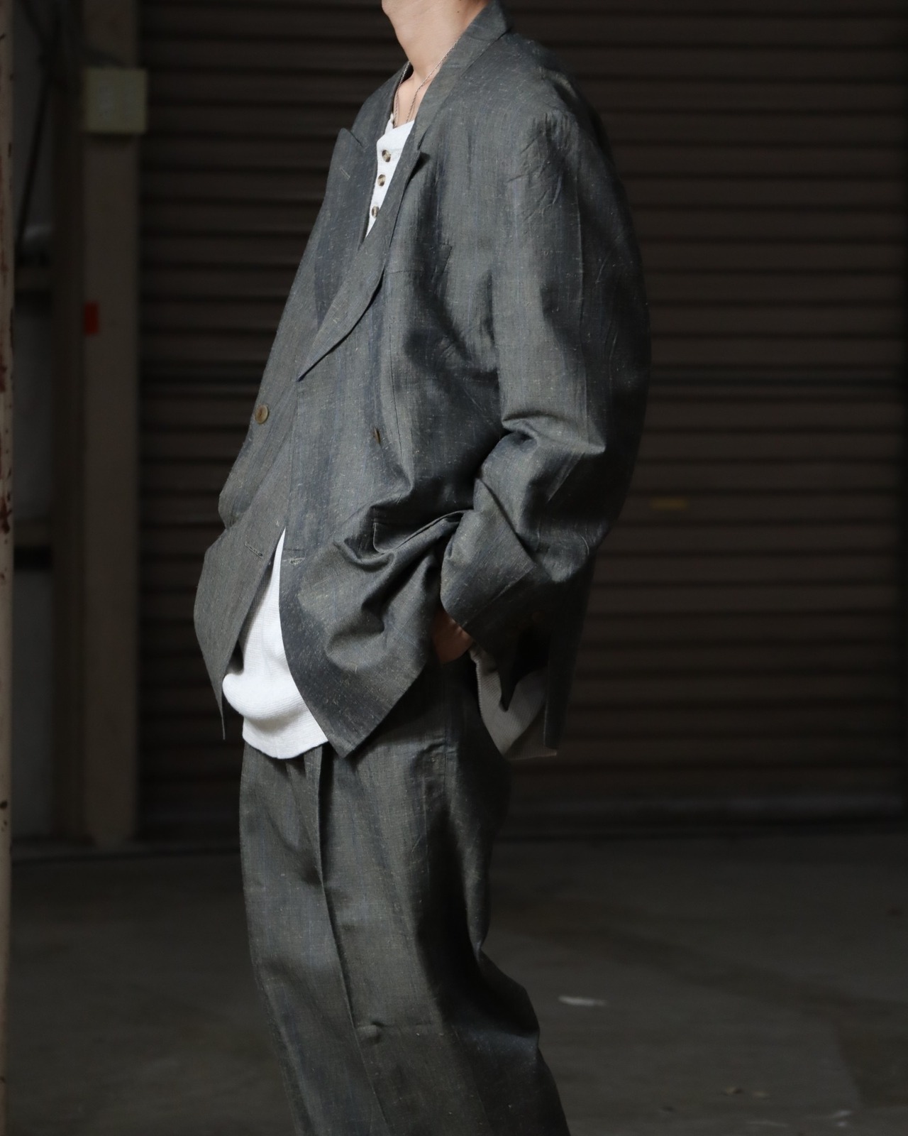 2piece set up double breasted × 2tuck slacks linen blend, nep
