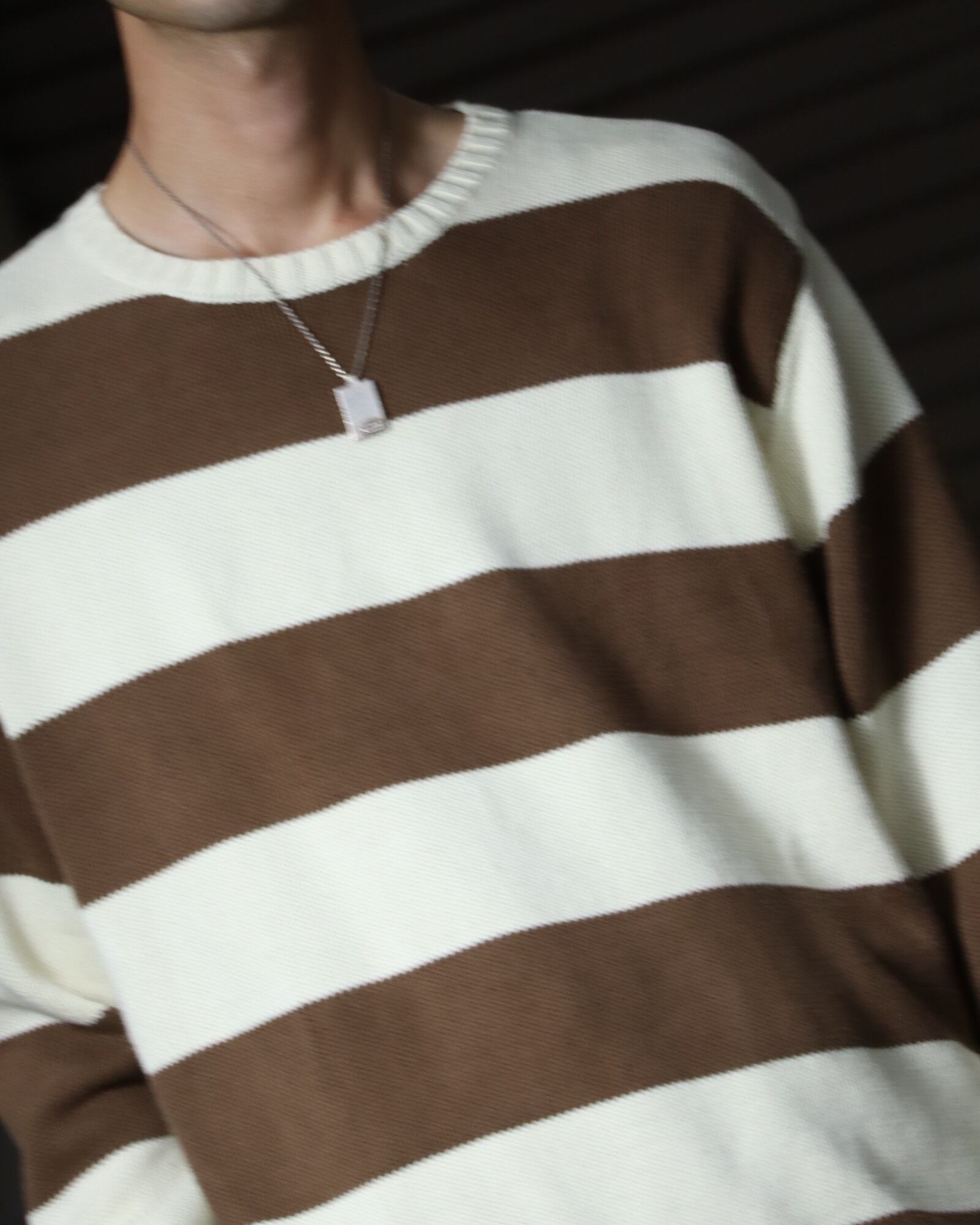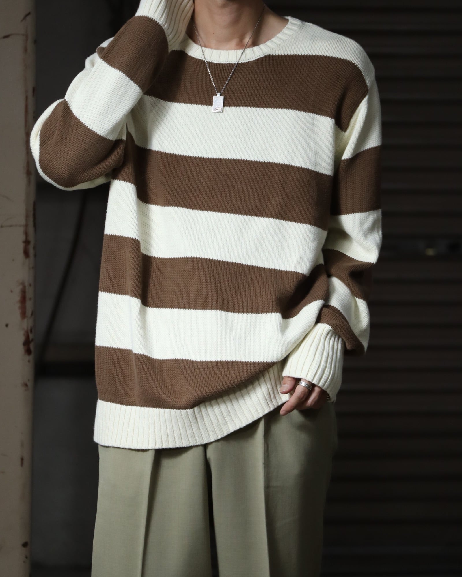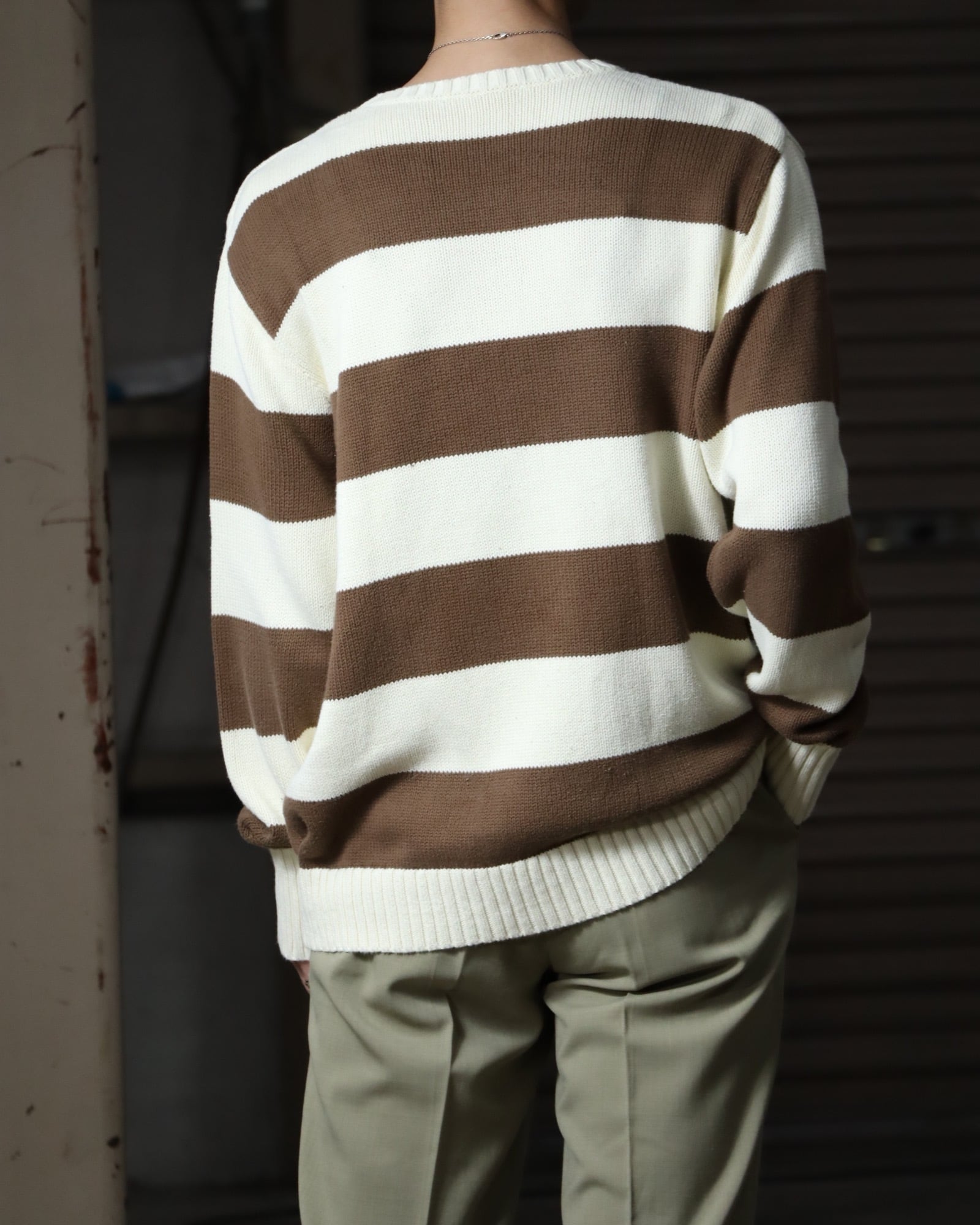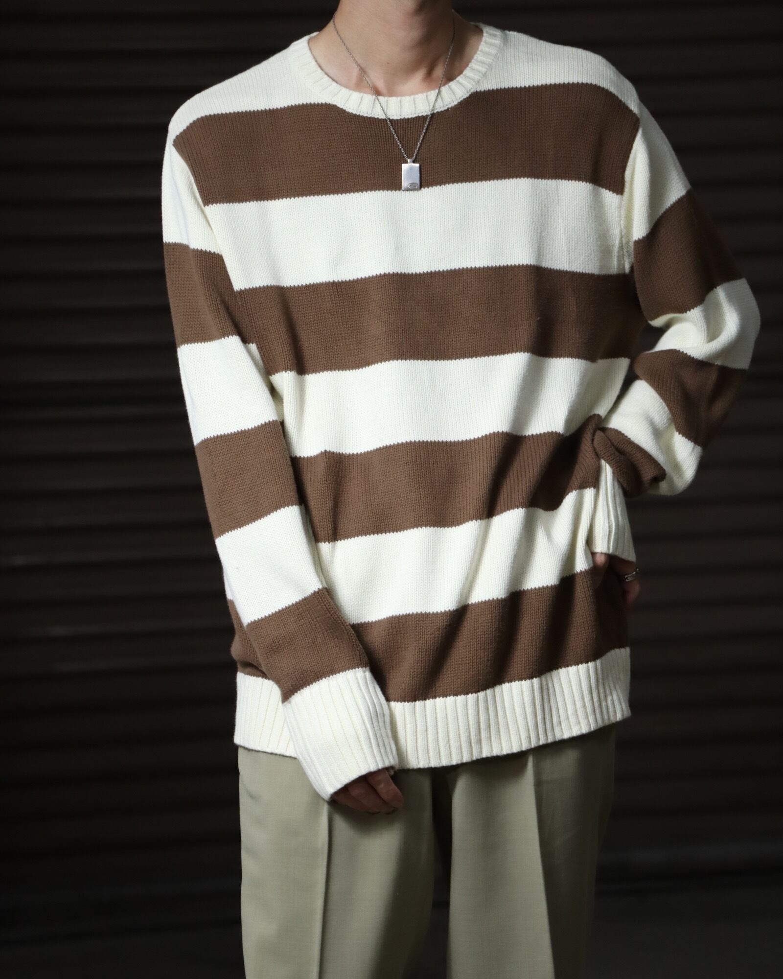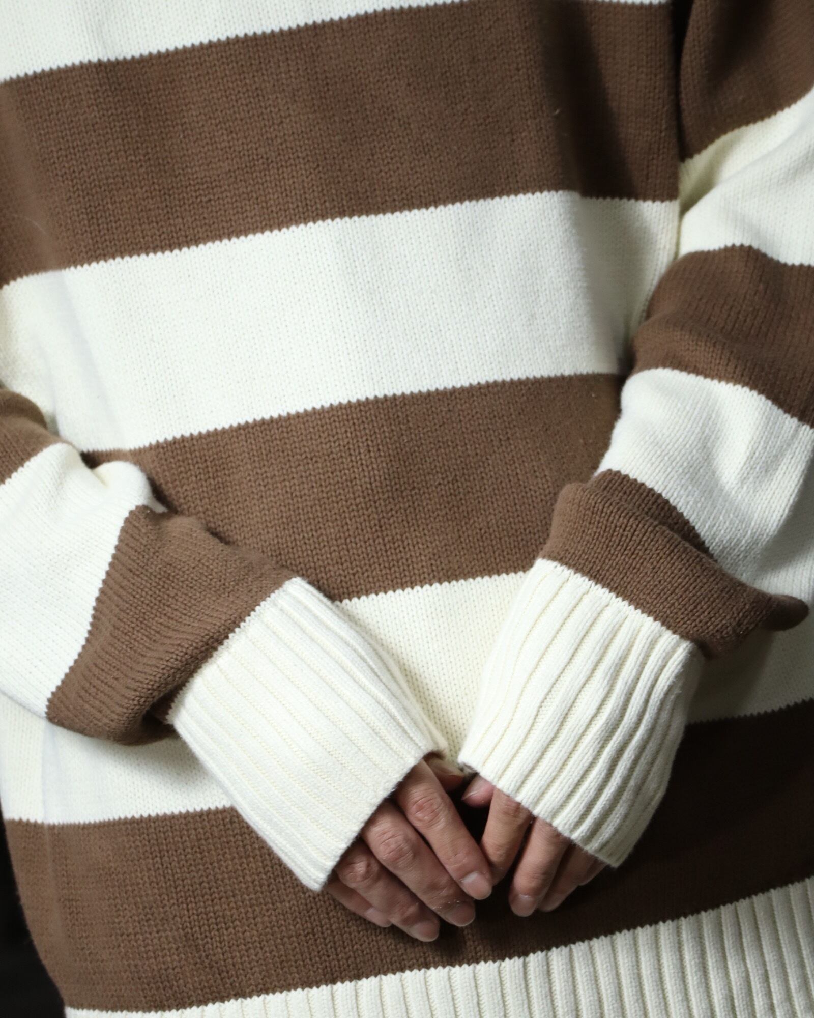 ▼Item / bicolor thick stripes chunky cotton knit sweater